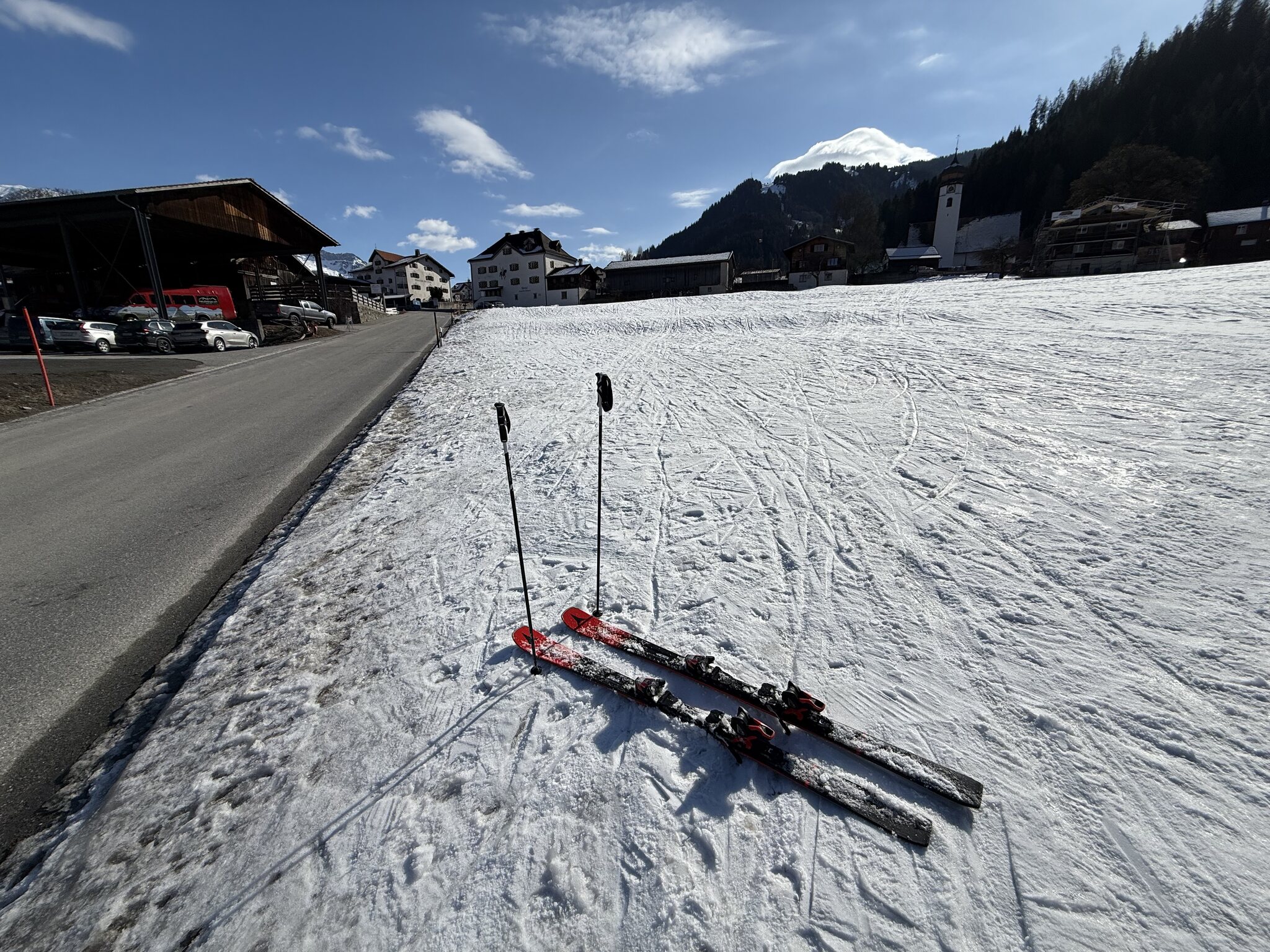 Mit dem Start der Rangverkündigung um 14:15 war das Skigebiet leer, wir haben dann noch eine Fahrt über die Rennpiste gemacht. Weiterhin gut zu fahren mit leichtem Sulz.