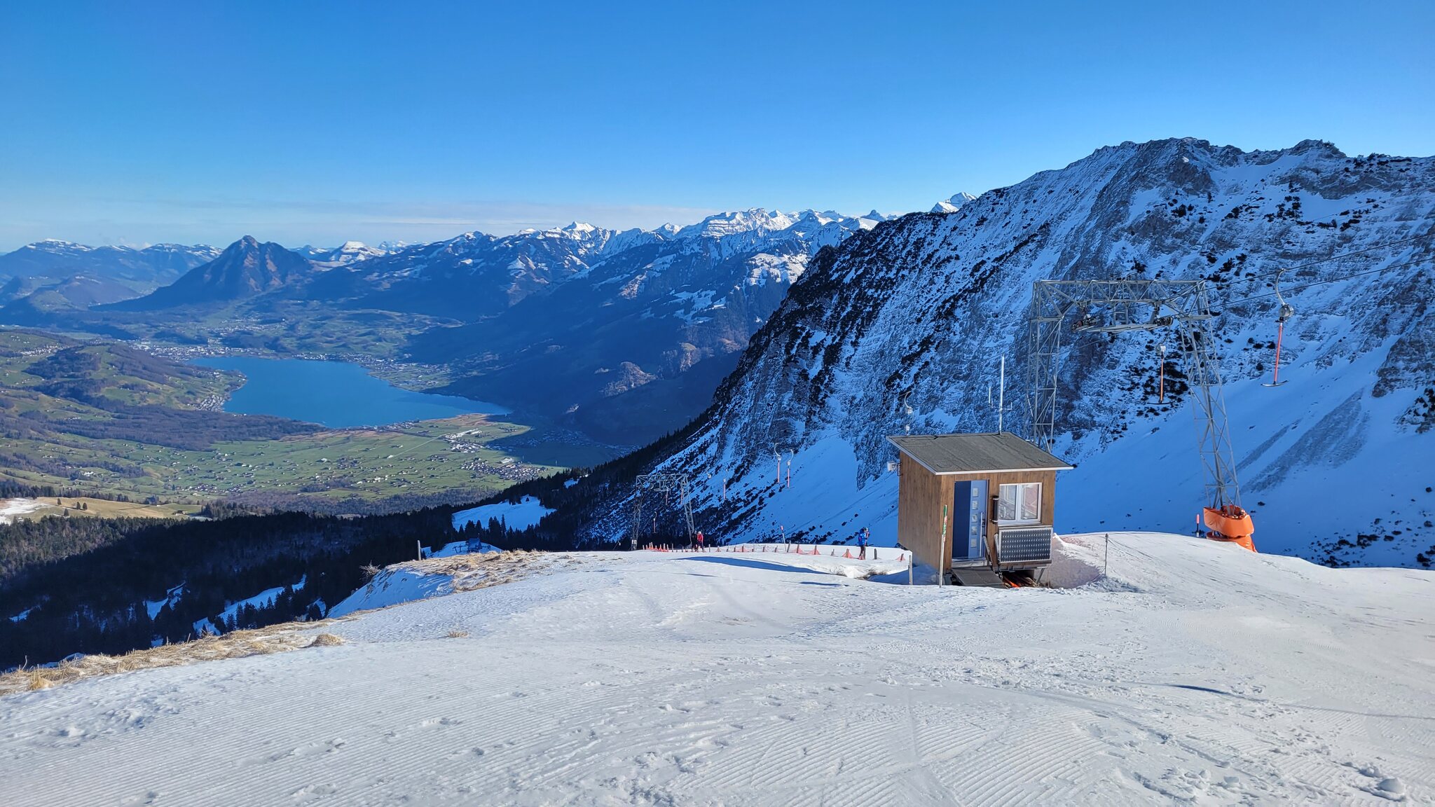 Heute bin ich auf der Mörlialp. Gehört zu der Kategorie Skigebiete, an denen ich bisher immer vorbeigefahren bin. Hier im Sommer über die Panoramastrasse von Giswil nach Sörenberg über den Glaubenbüelenpass, der im Winter gesperrt ist. Bis zur Mörlialp ist die Strasse von Giswil her aber geräumt. Die Vormittagskarte kostet 33 CHF. Das Wetter ist hier im Gegensatz zum Bündnerland sonnig, das Gebiet liegt aber noch im Schatten. Nur der obere SL ist oben sonnig, mit einem sehr schönen Panorama auf den Sarnersee.