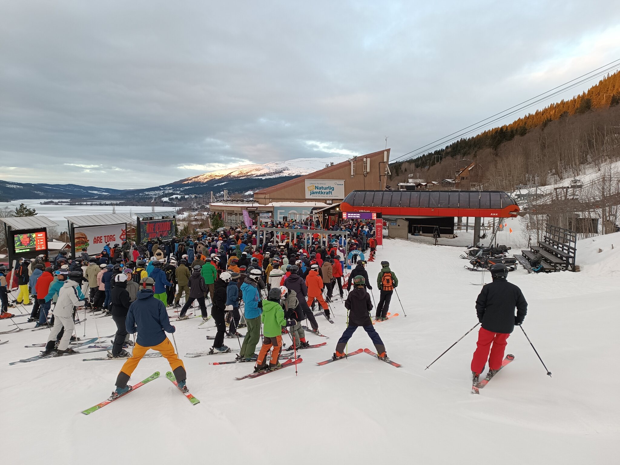 Für mich war es das erste mal Abend- bzw. Nachtski, daher dazu unten mal ein paar Eindrücke... leider ist die Foto-Qualität nicht allzu berauschend geworden. Dennoch hat uns die Stimmung bisher super gefallen. Völlig entspanntes Anstehen, die Leute und Bahnangestellten super entspannt, nett und hilfsbereit. Interessanterweise wenige internationale Touristen, habe nur selten Englisch gehört, stattdessen mehrheitlich Schwedisch. Etwas gewöhnungsbedürftig sind übrigens die spärlichen Pistenmarkierungen und Beschilderungen für Pistensperrungen... v.a. für Neulinge und bei schlechter Sicht nicht ganz einfach zu sehen.
