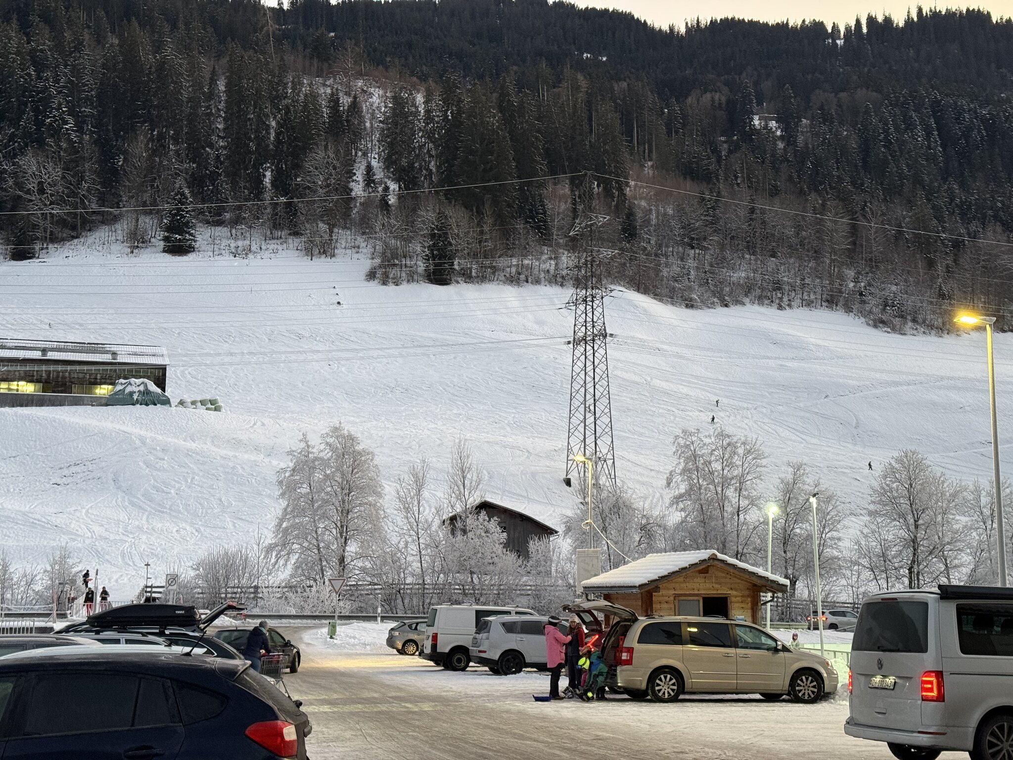 War genau vor dem Gate als der Zipper schlapp machte. Hunderte sind zum Groubenalp-Sessel hoch gelaufen oder haben die Talabfahrt zum Wolfgang unter die Skier genommen (das muss wohl zu einigen Tragödien geführt haben