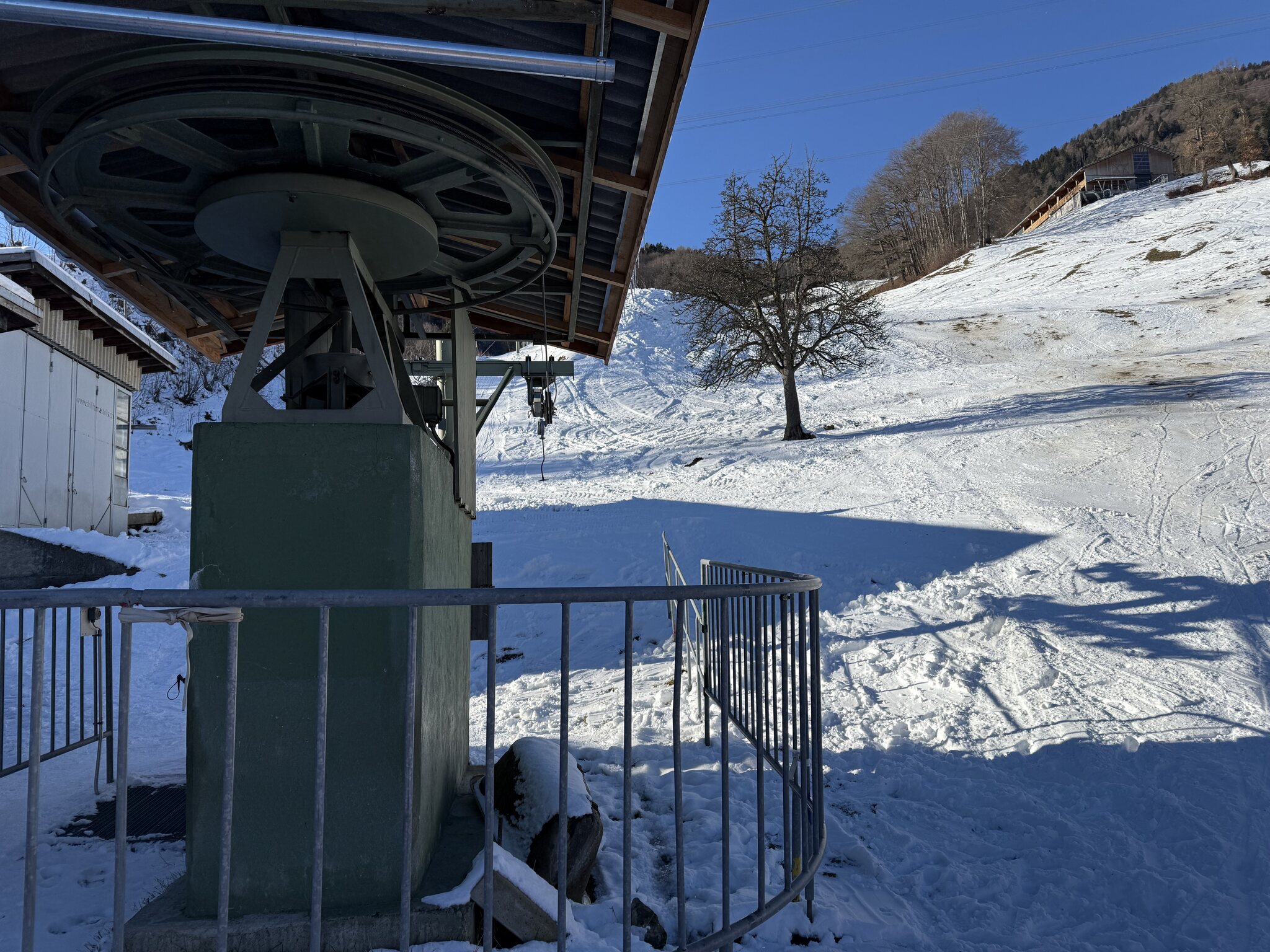 Der Skilift, der am Anfang ein Tellerlift war, dann zum Bügel umgebaut wurde, und nun wieder zum Tellerlift umgebaut wurde.