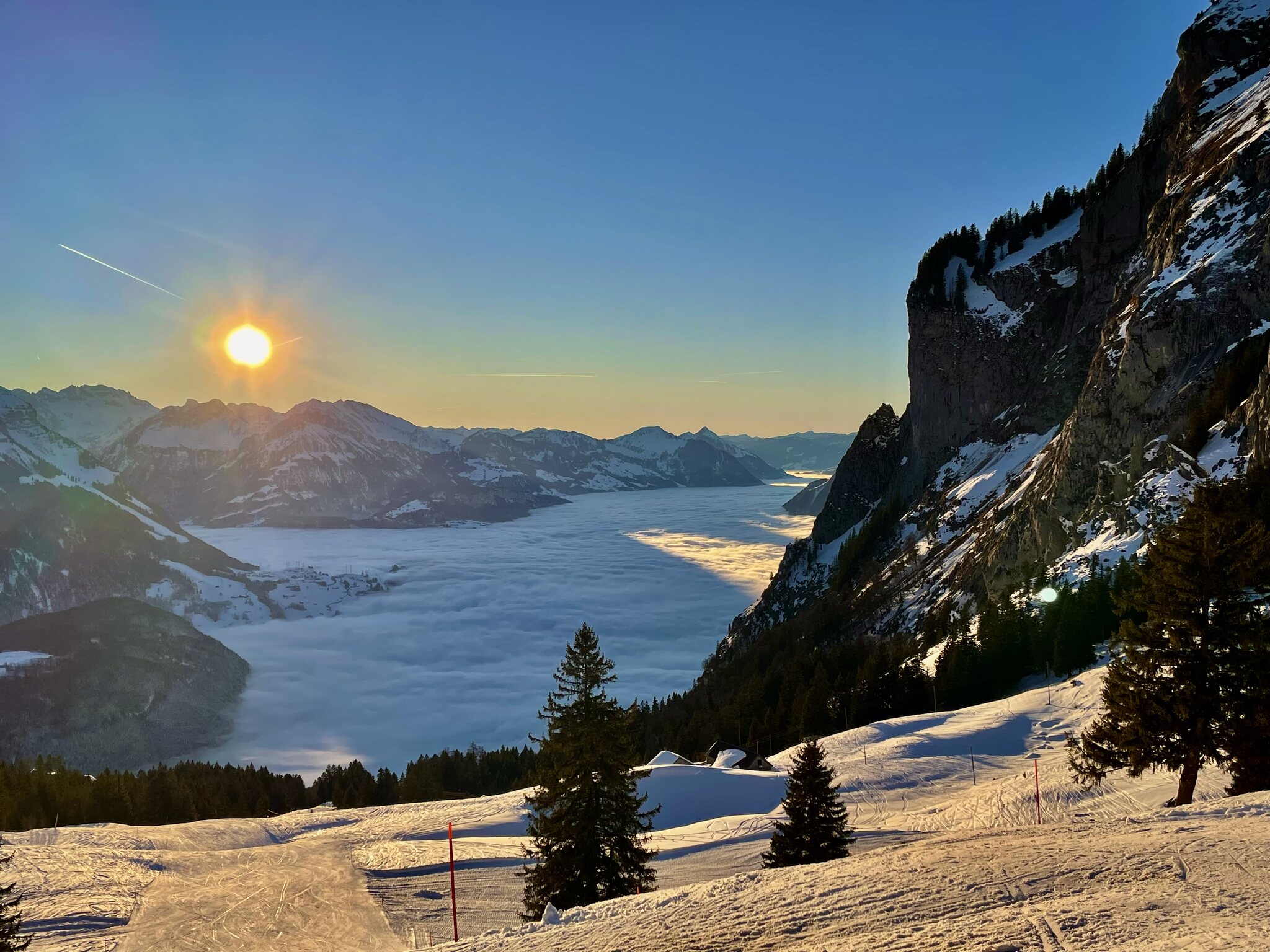 Alles außer der Talabfahrt nach Rickenbach offen, sogar die Skisafari von/nach Hoch Ybrig (Variante Illgau geschlossen)! Trotzdem keiner da? Wundert mich bei dieser Community
