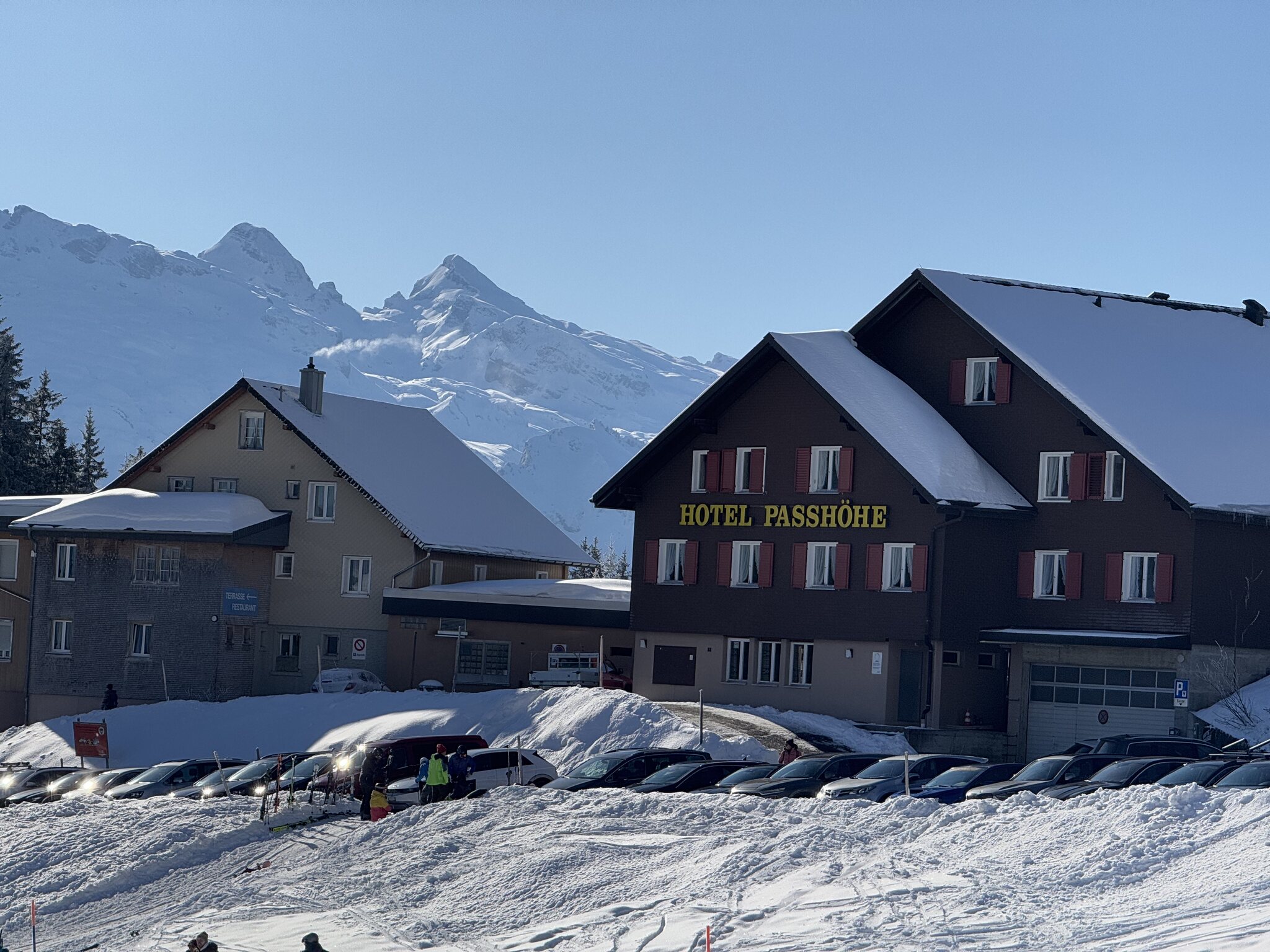 Handgruobi Parking war um 10:30 bereits voll, oberhalb gab aber noch einige wenige Plätze, und auch auf der Passhöhe sah es voll aus. Parking bei Handgruobi ist einerseits sehr praktisch, die Anfahrt bei Gegenverkehr und schmaler Strasse etwas weniger. Schade hat es bei der Gondelbahn bei Rickenbach nicht mehr Parkplätze für Spätankommende wie mich