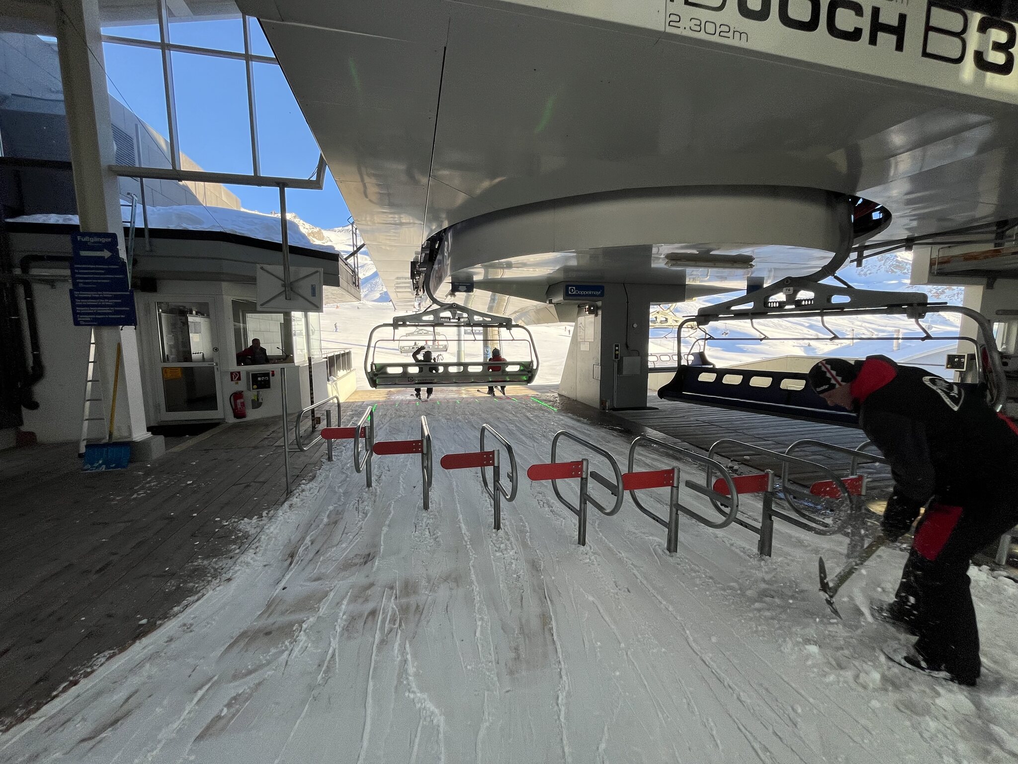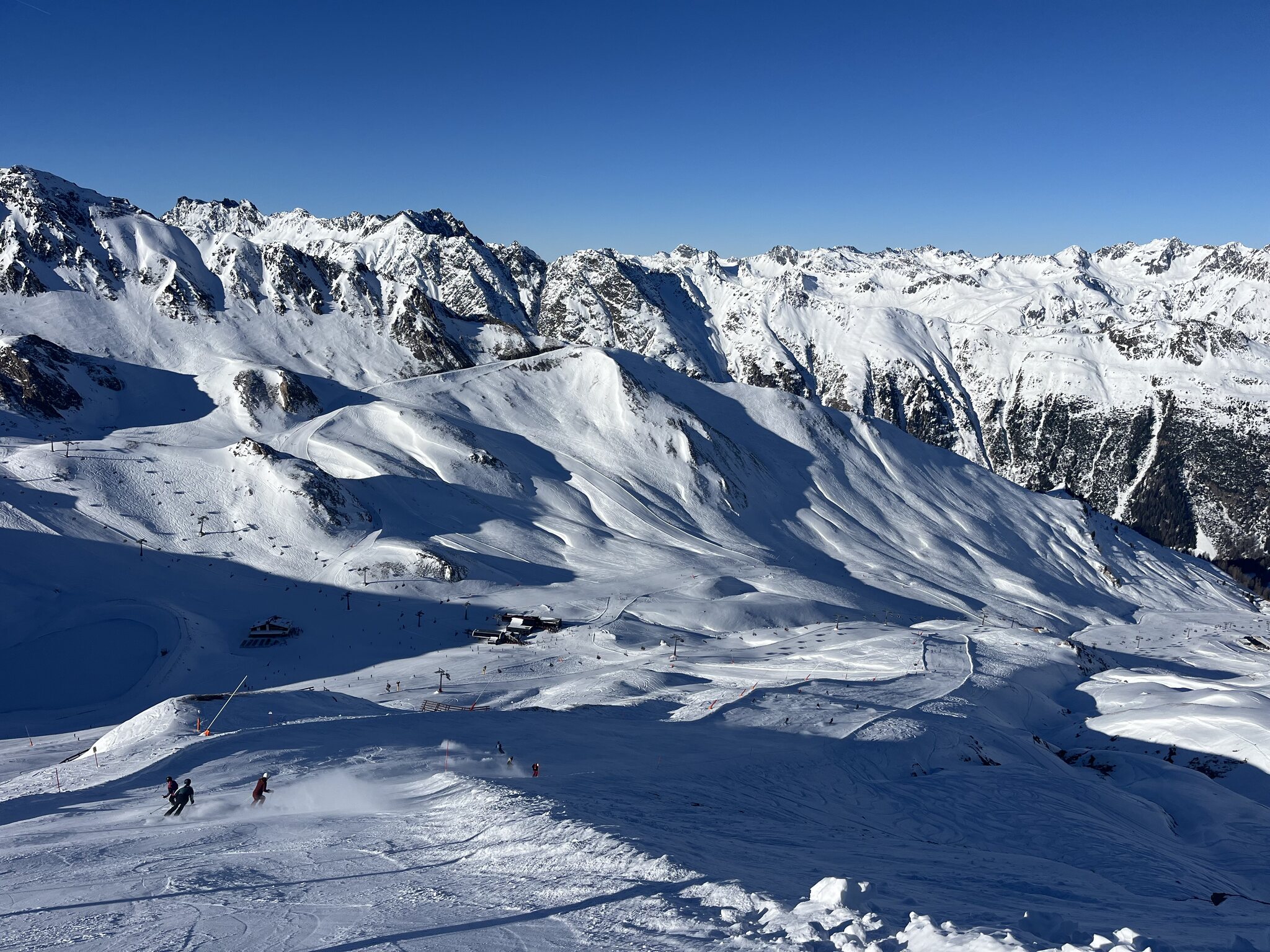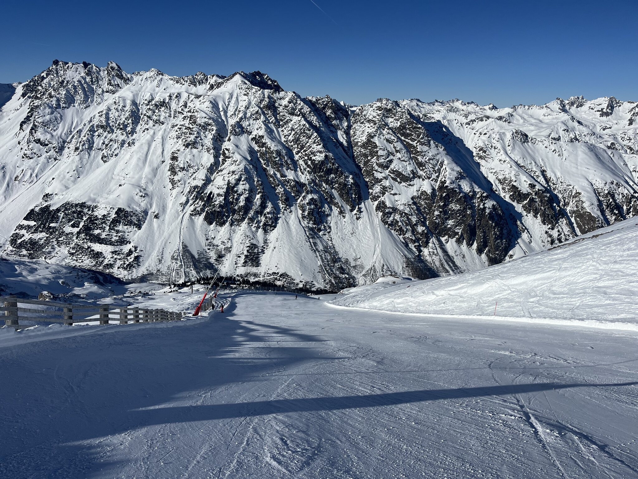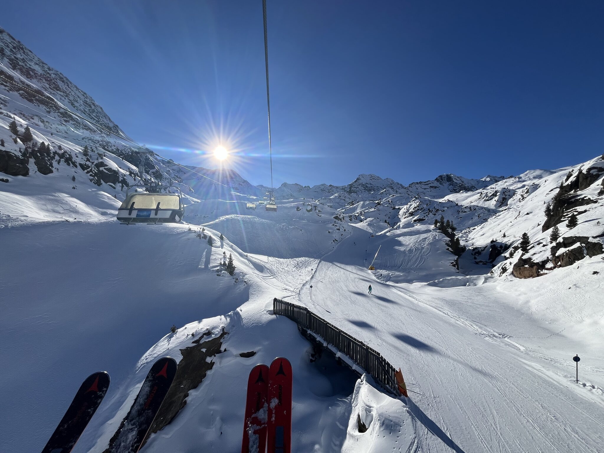 Vorweg: Ich bin total perplex, wie verhältnismässig wenig los hier ist. Ich hatte mich auf Menschenmassen eingestellt, aber es ist völlig human. Kaum Wartezeiten, immer wieder leere Pisten(abschnitte), tolle Verhältnisse!
