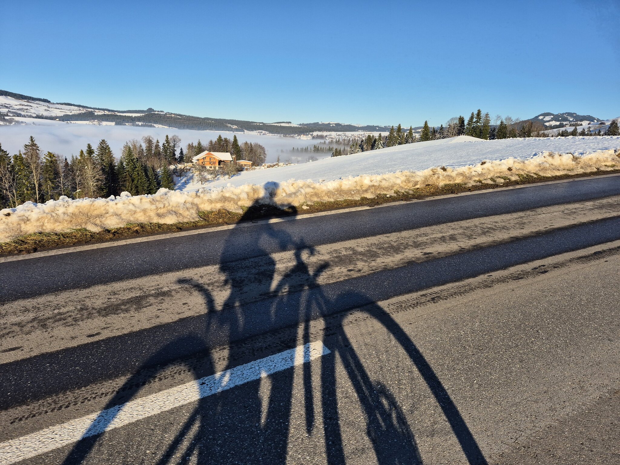 Die Westausrichtung hilft hier aktuell um besser mit dem verfügbaren Schnee durchzukommen. Am Nachmittag wurde es im Schatten bis 8 Grad warm.