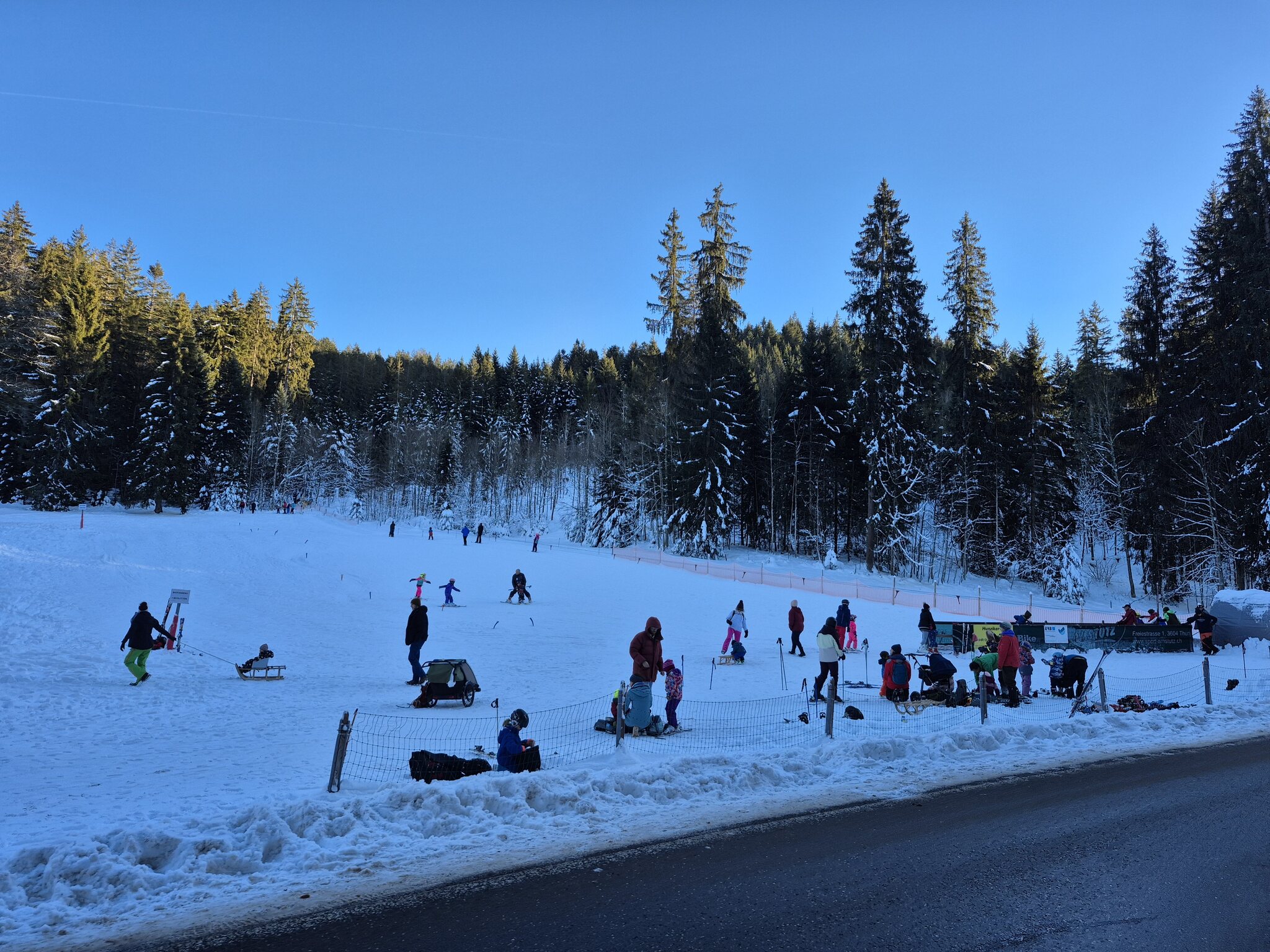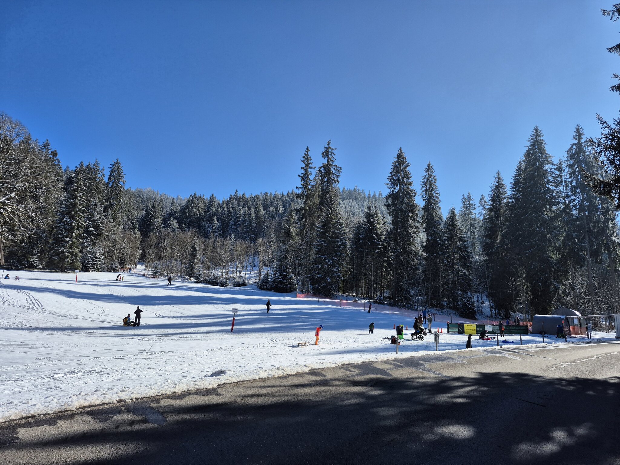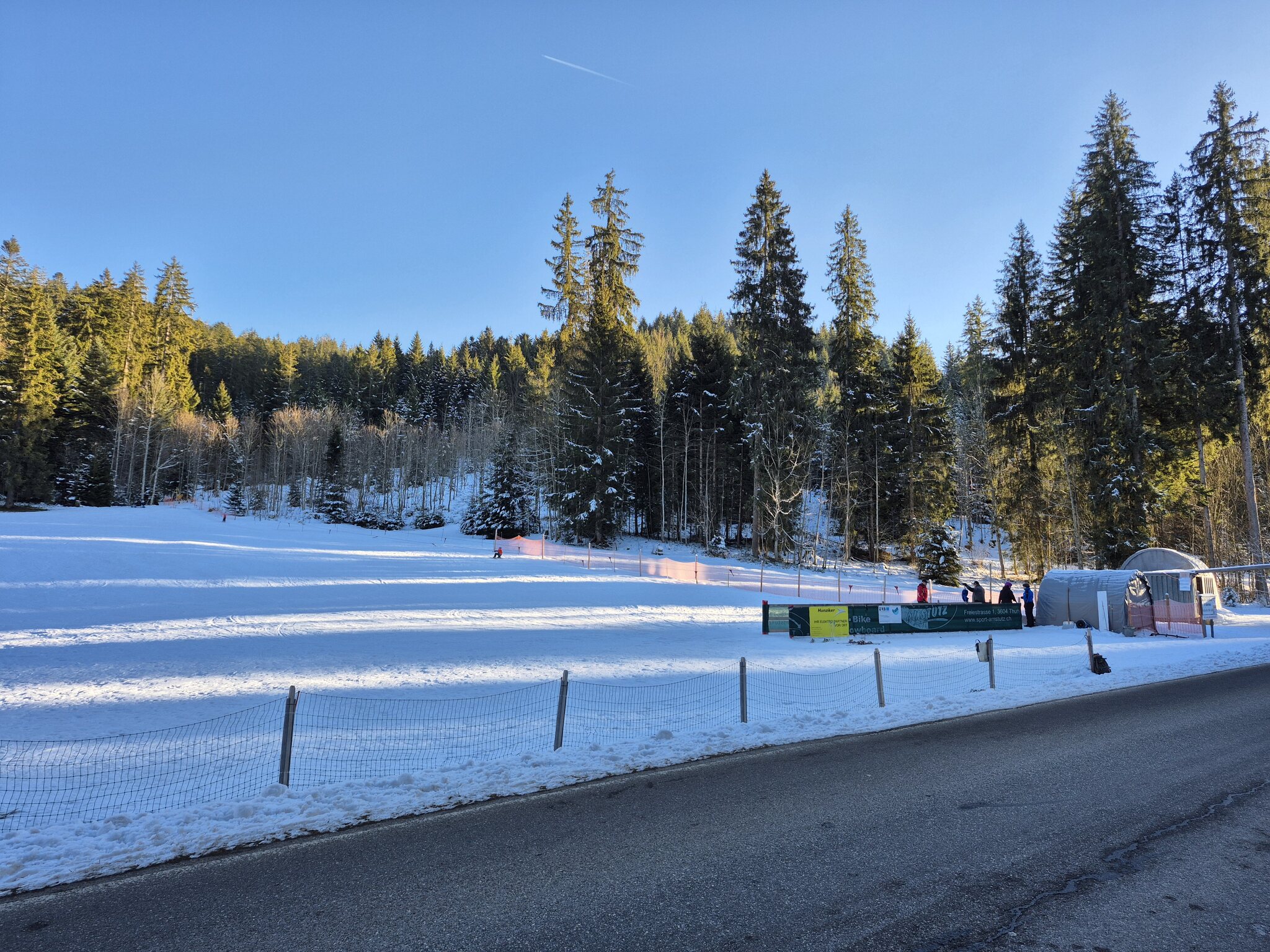 Das Bergrestaurant war geschlossen, öffnet aber morgen wieder. Der Sessellift und der Schlepplift sind geöffnet, und alle Pisten des Schlepplifts sind offen und frisch präpariert. Sehr gute Skibedingungen und schöne Umgebung. Die Talabfahrten sind geschlossen, aber sehr gut zum Freeriden geeignet. Die Schlittelpisteist ist geöffnet.