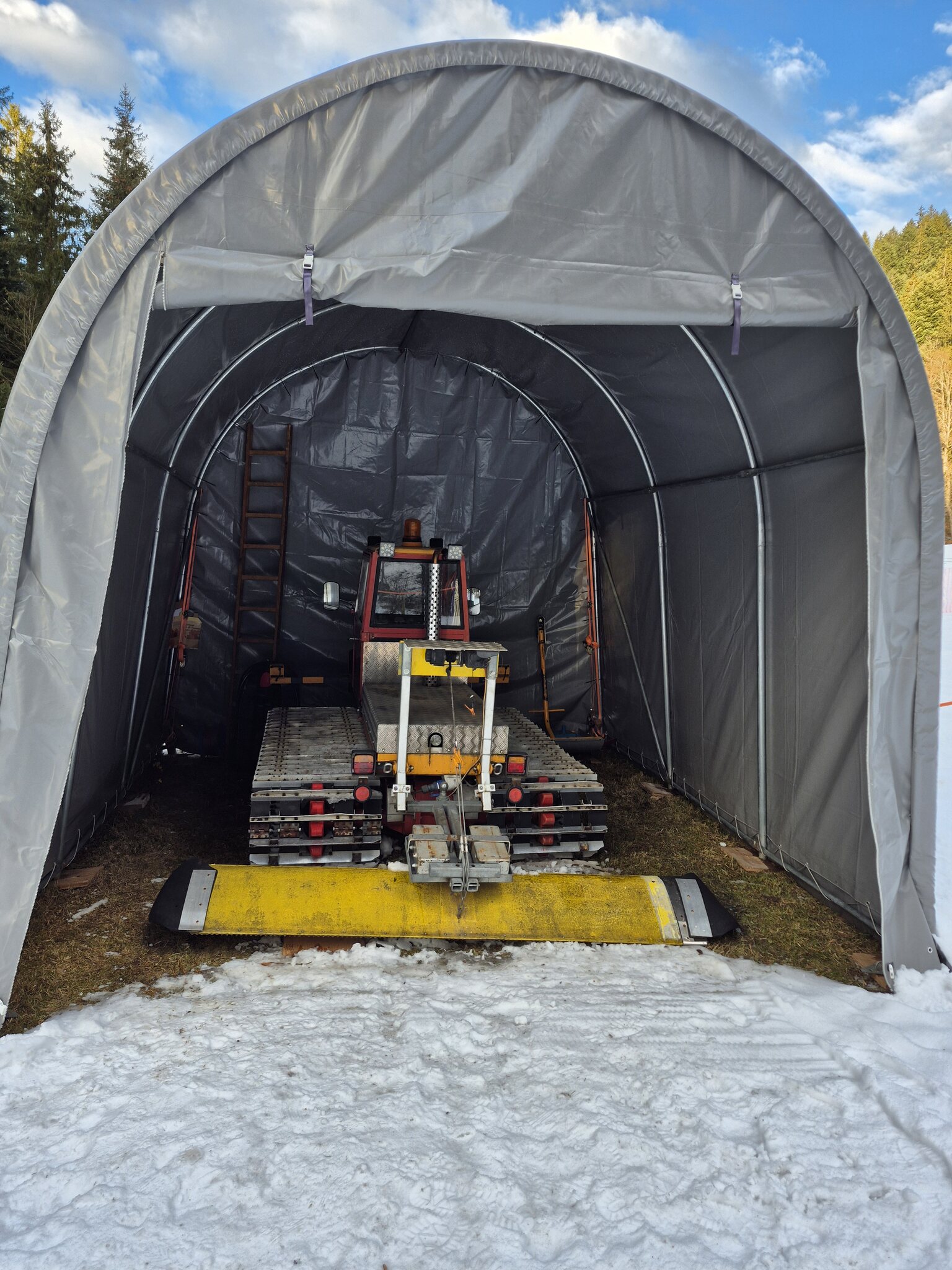 Am Sonntag blieb die Pistenmaschine in der mobilen "Garage".