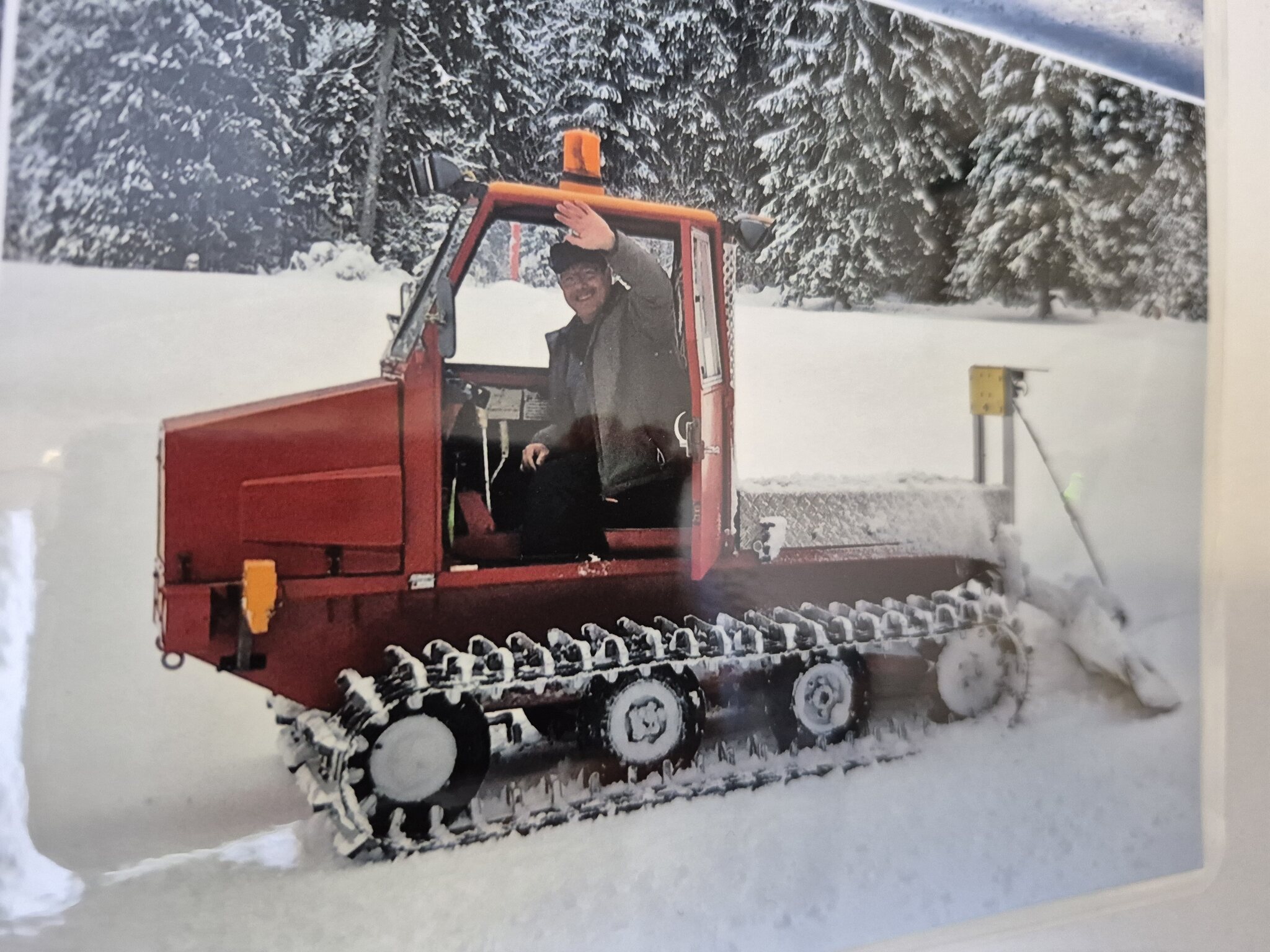 So sieht die Maschine im Einsatz aus. Der Besitzer erzählte, dass die Raupe vorher dem Skilift Schauenburg gehörte.