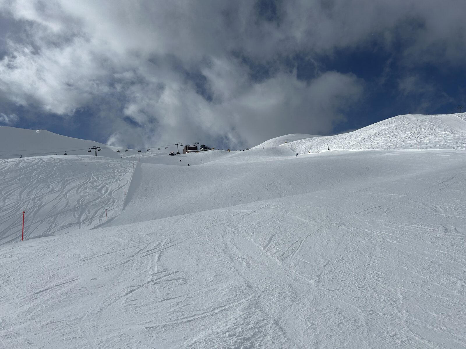 Die meisten Pisten wurden mit der Zeit sehr buckelig, Tiefschnee blieb aber genial. Leider einmal einen Hang mit Steinen erwischt, und noch schlimmer, einen Hang mit Lawinengittern, die zu 95% im Tiefschnee versteckt waren und so nicht sichtbar waren, das kann echt gefährlich werden, wenn man sich nicht auskennt.