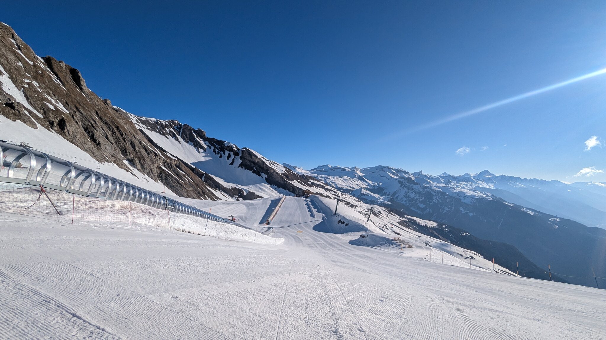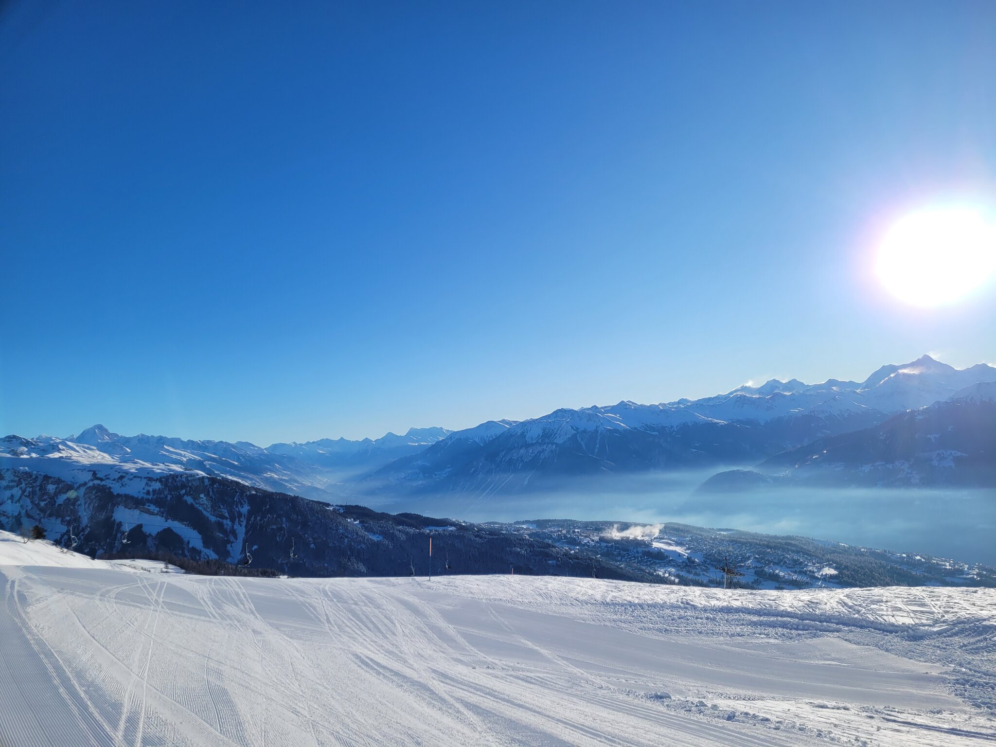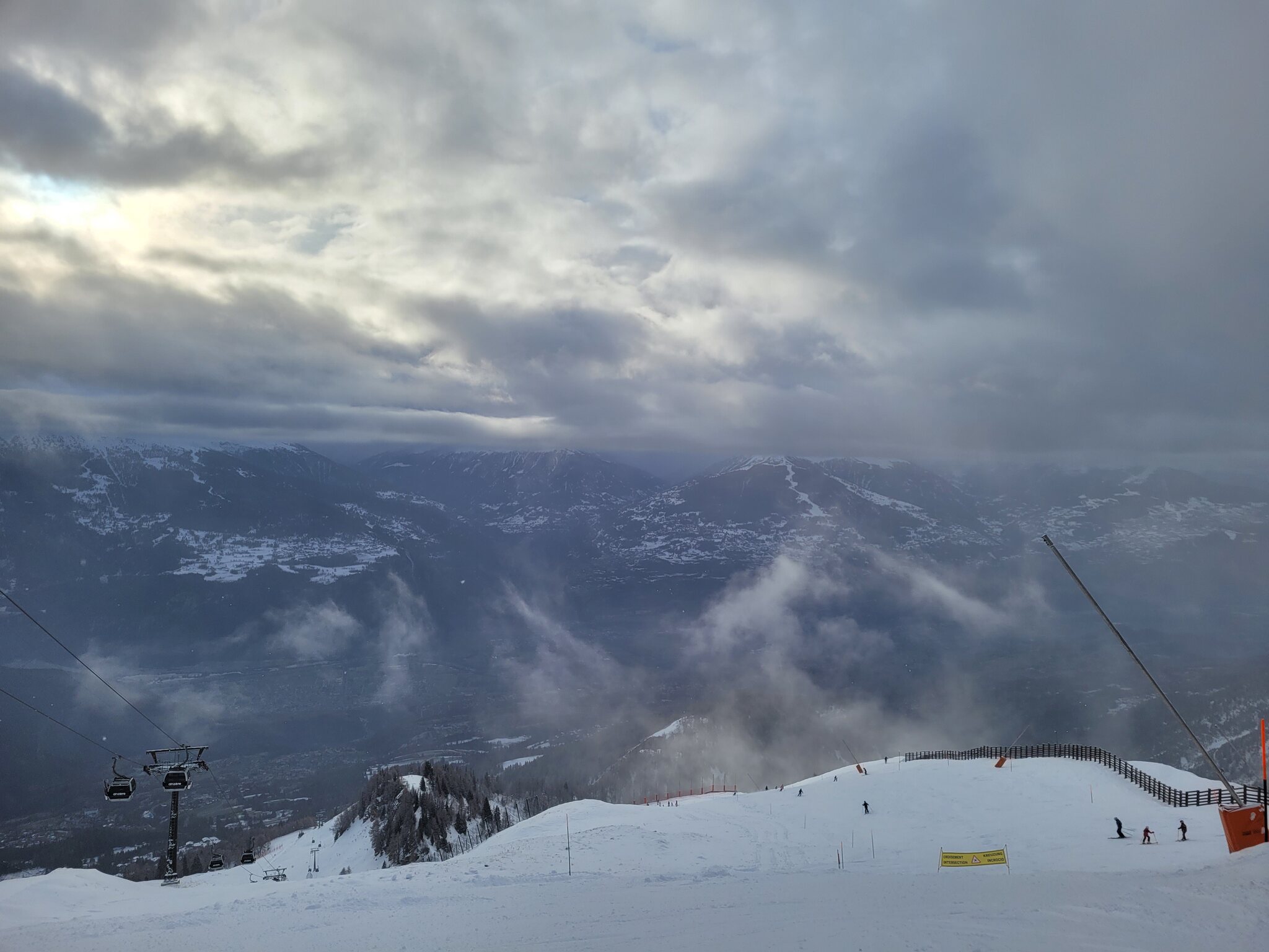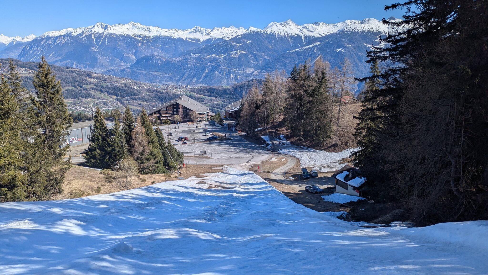Zoom nach Crans Montana. Eigentlich wollte ich heute hier fahren, aber da die Piste vom Gletscher nicht geöffnet ist, mach das keinen Sinn, da so viel Geld zu bezahlen.
