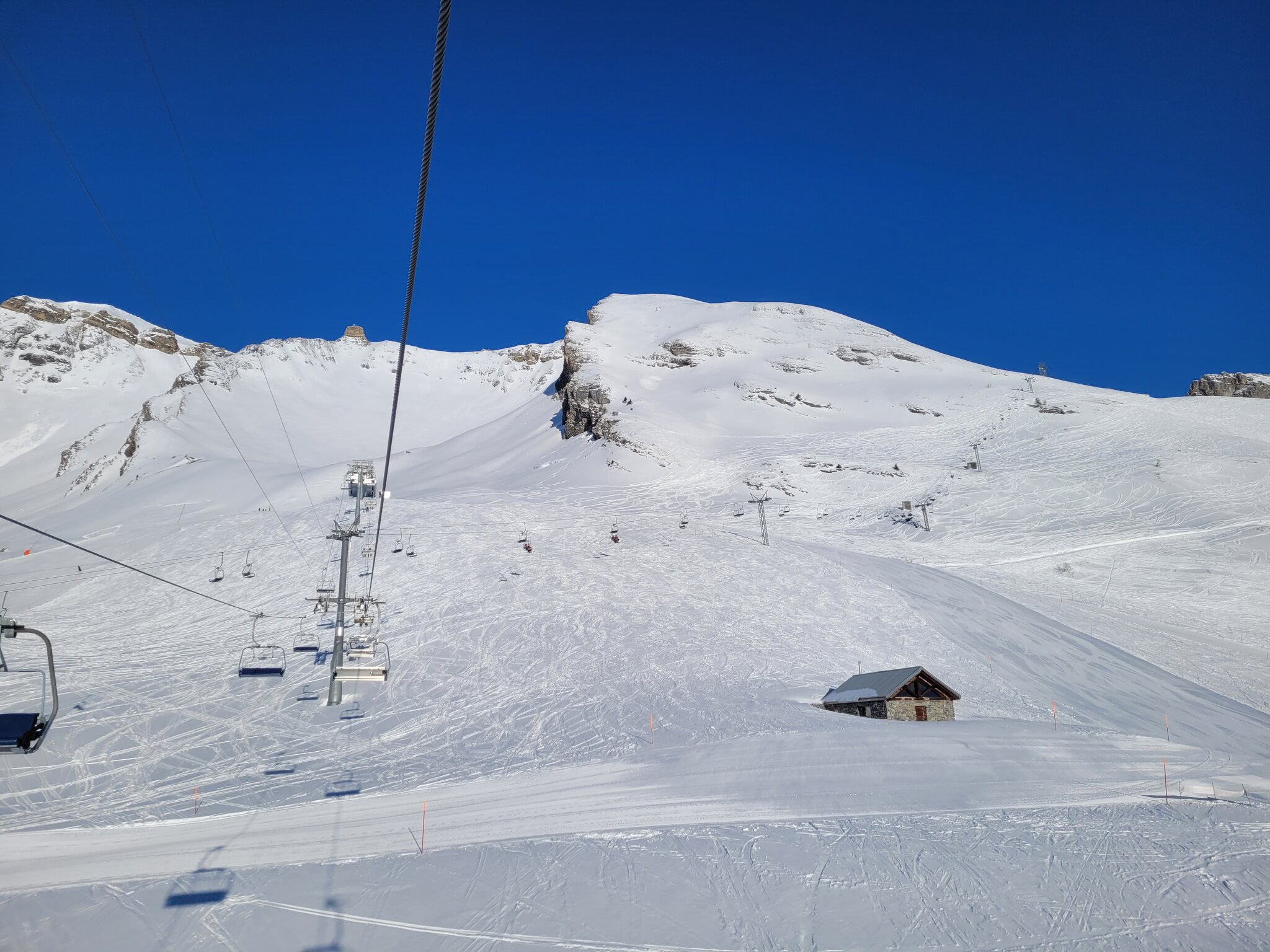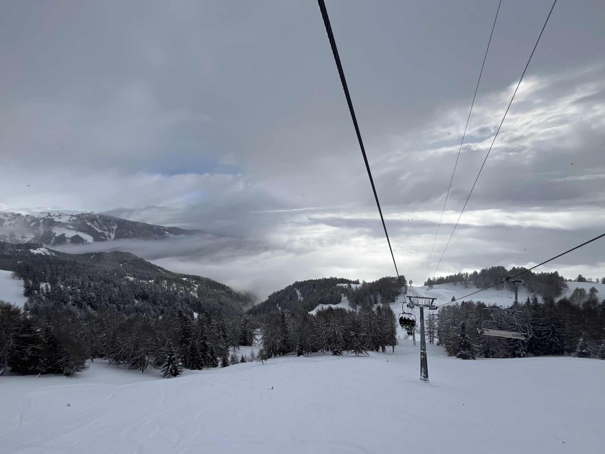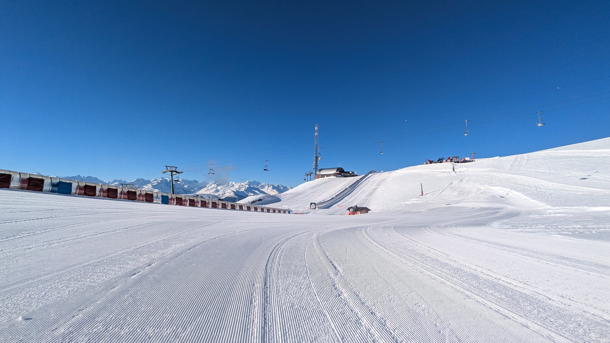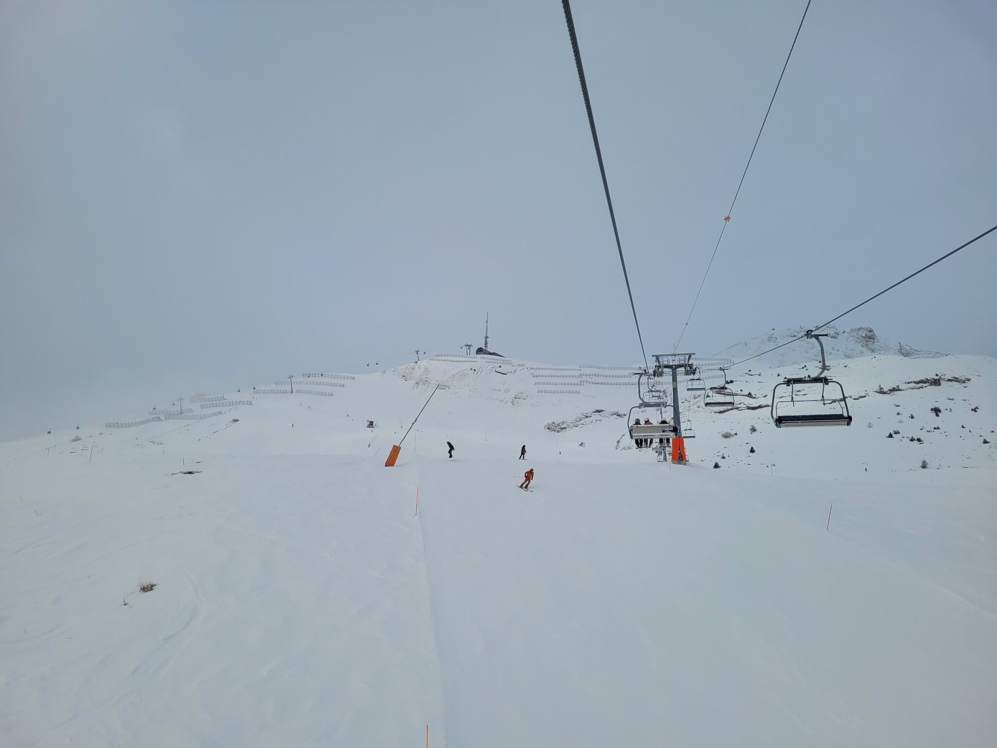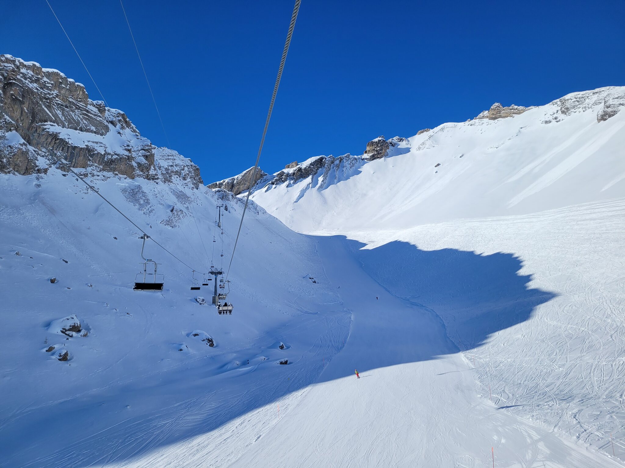 Morgens absolut leer, gefühlt hat man einen privat Skigebiet hier. Und direkt positiv aufgefallen. Die Sesselbahn fährt mit voller Geschwindigkeit, in Österreich würde sie wahrscheinlich nur halb so schnell fahren!