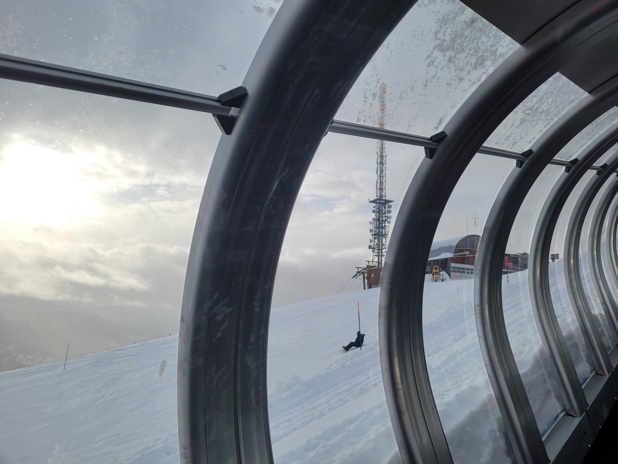 Livebericht im Sessel schreiben ist bei dem Wetter nicht angenehm. Dafür bietet sich die Seilbahn mehr an.