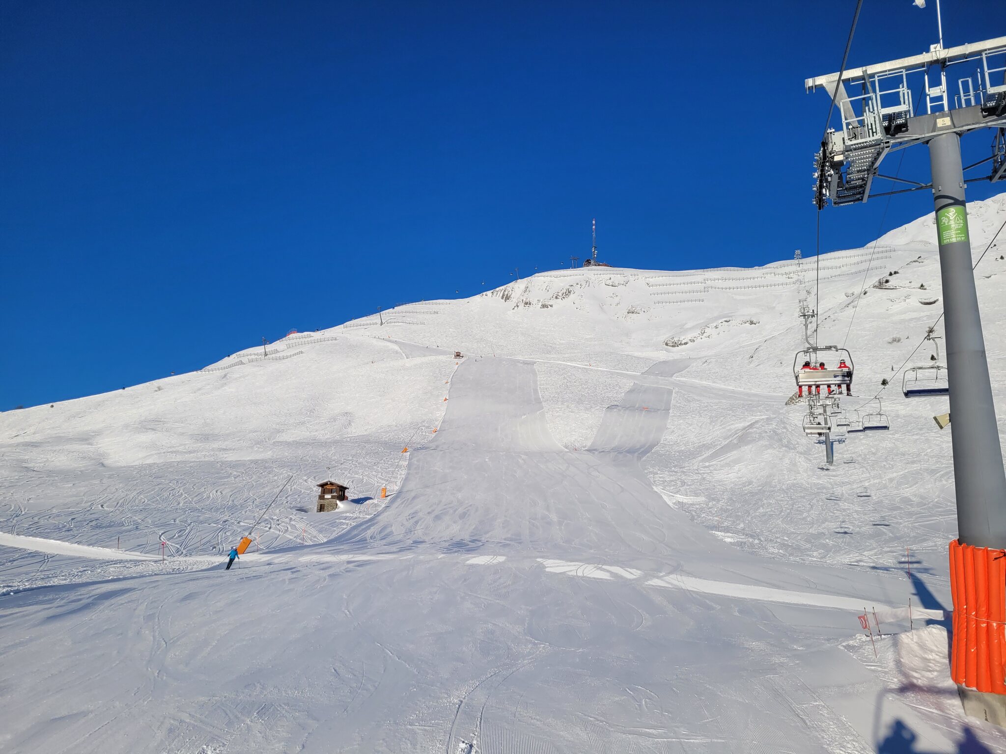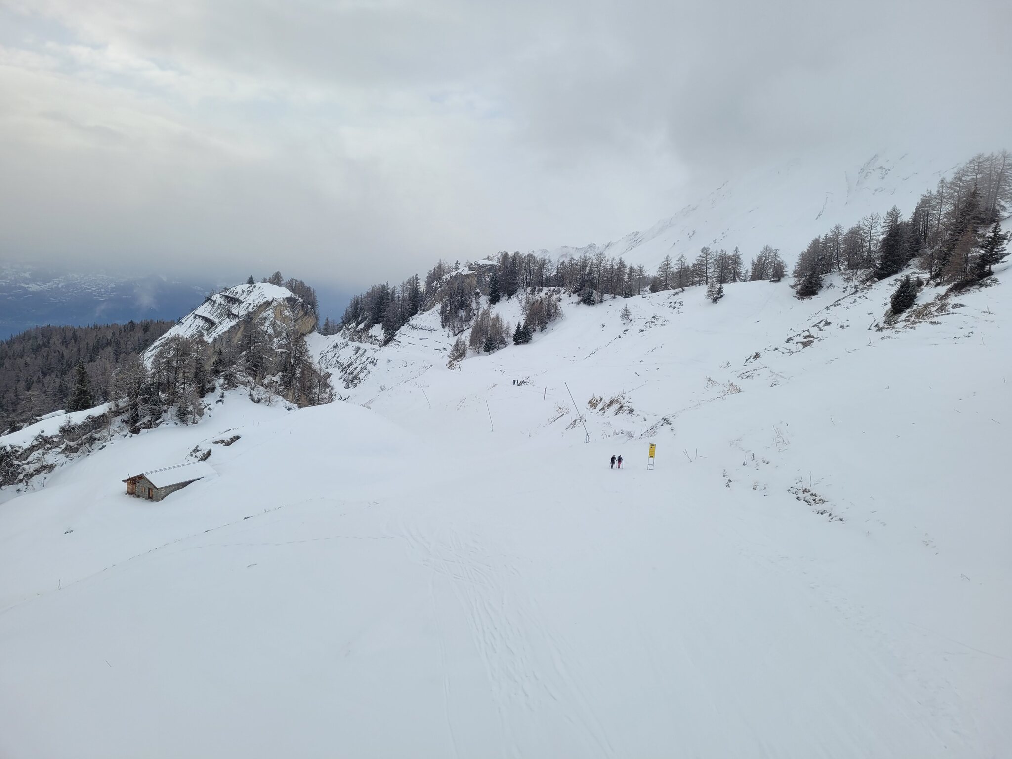 Bin heute in Anzère. Geöffnet sind die Combe und Turin Schlepper, Seilbahn mit Piste bis Mittelstation sowie die beiden Sessel Luys und Bâte. Noch etwas rätselhaft wie letzterer ohne offene Grillesse-Bahn zugänglich sein soll.