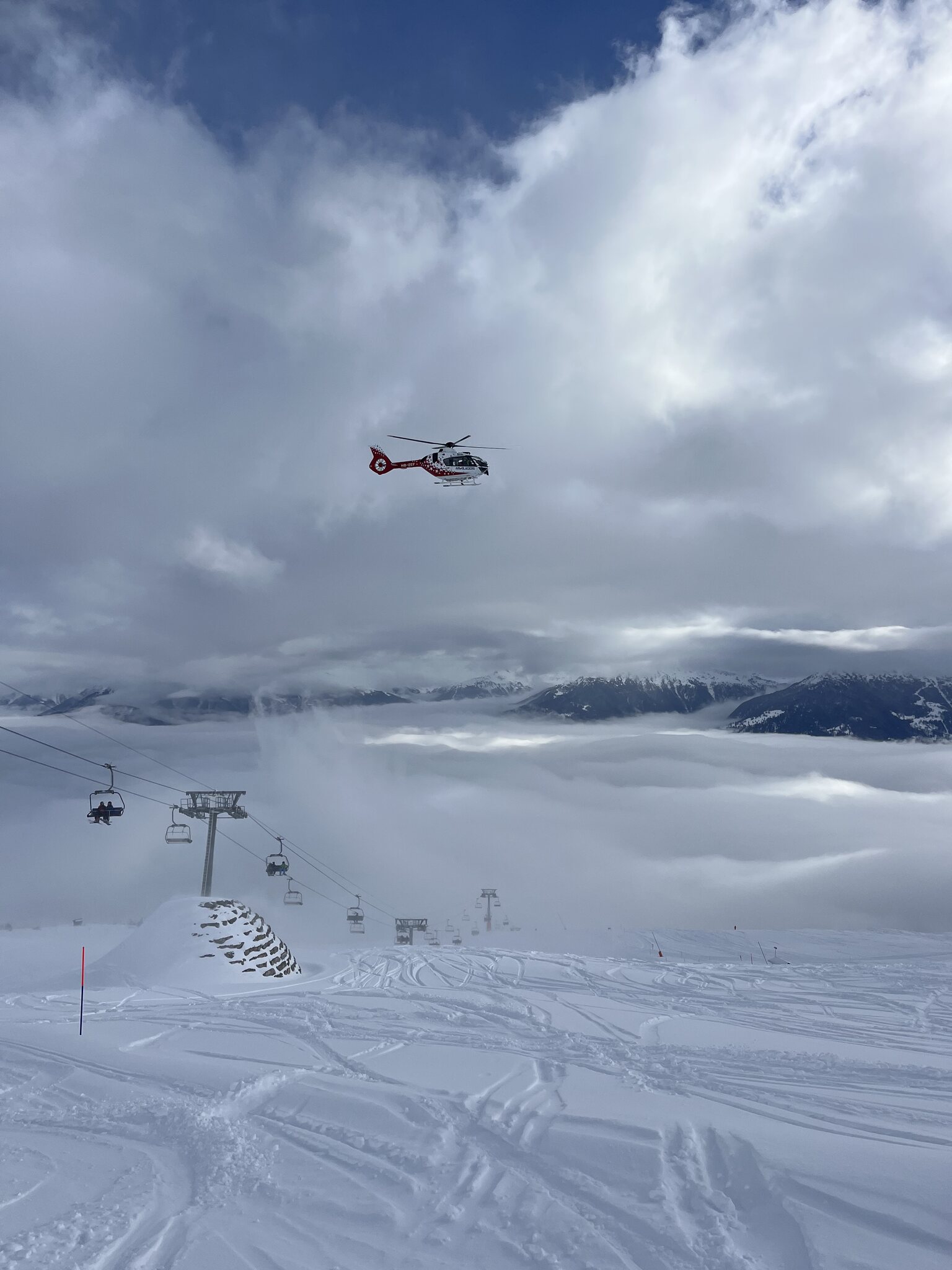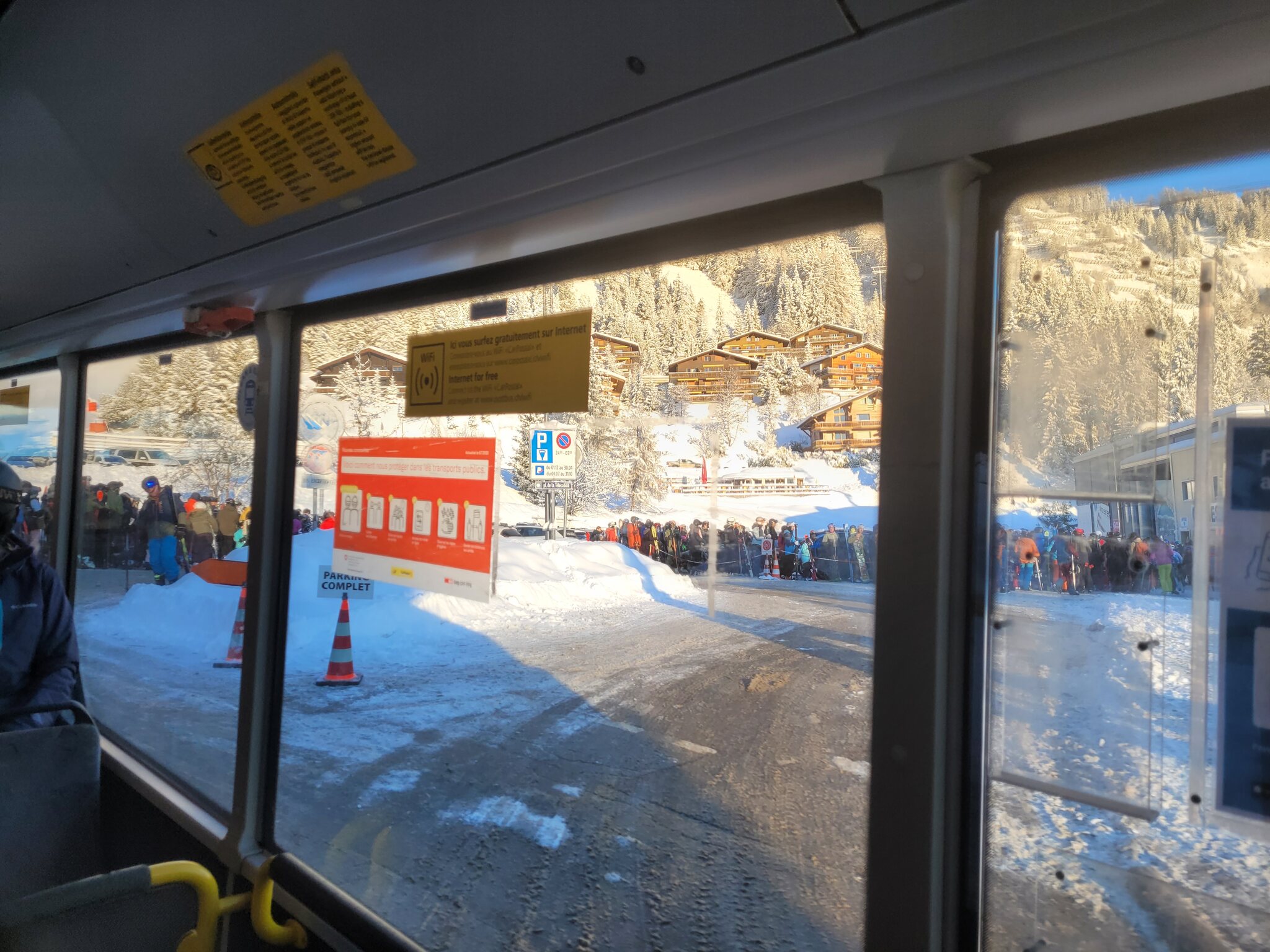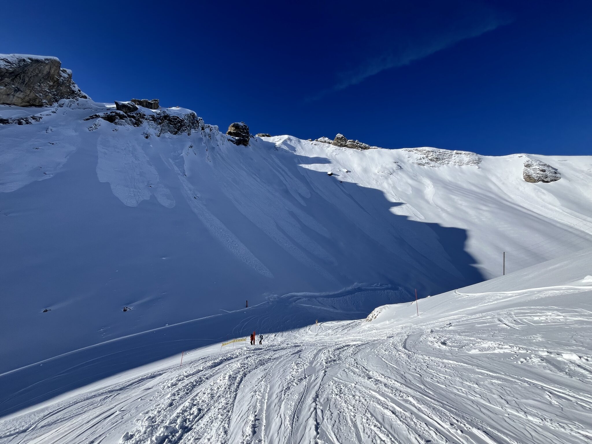 Ursprünglich sollte Les Rousses am späten Vormittag öffnen, aber die Lawinensprengung dauerte länger als erwartet (gegen 13 Uhr flog ein Hubschrauber wieder ein und sprengte kräftig). So wurde die Piste schließlich um 14 Uhr mit frisch präparierten Pisten eröffnet. Ich möchte die klare Kommunikation von Télé-Anzère über die voraussichtliche Öffnungszeit auf ihrer Homepage loben.