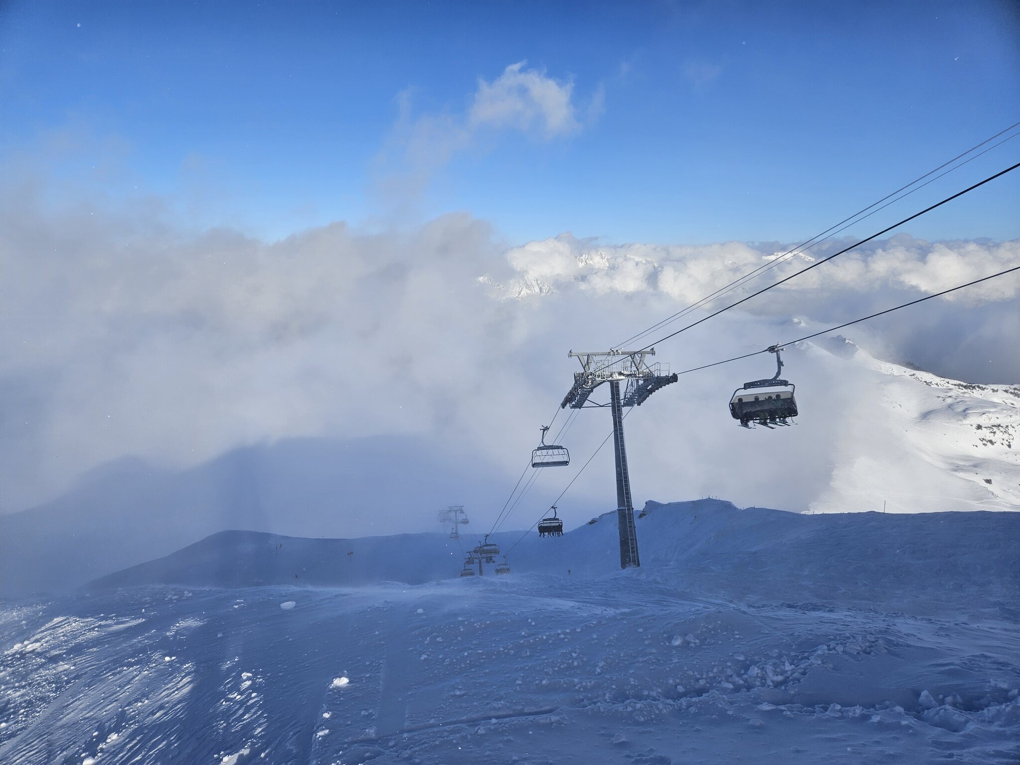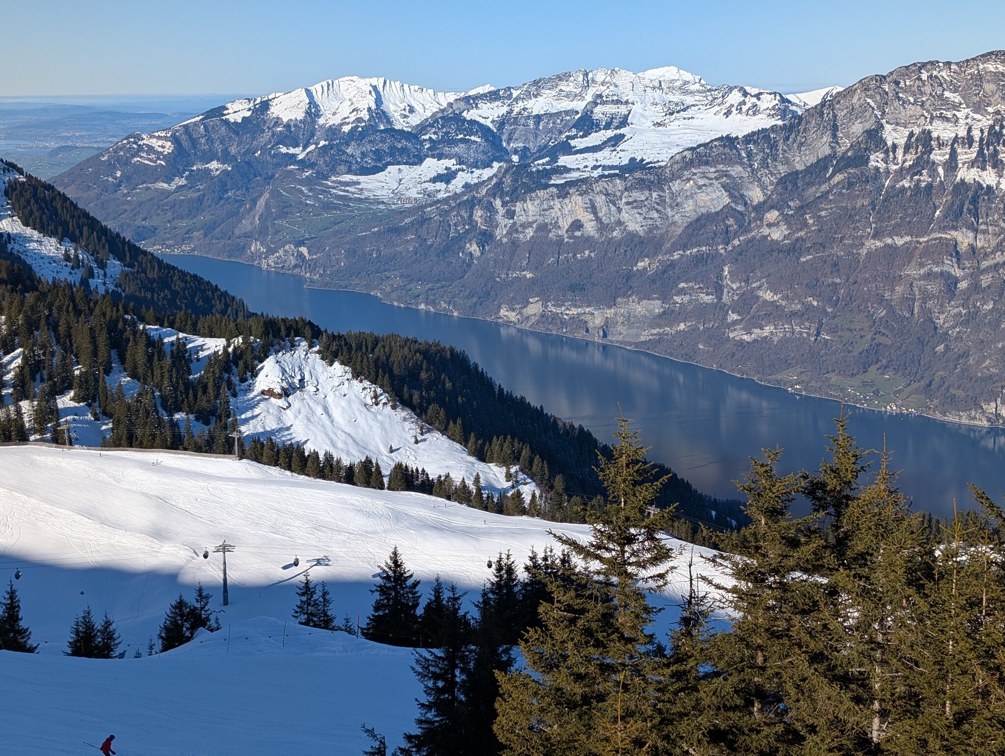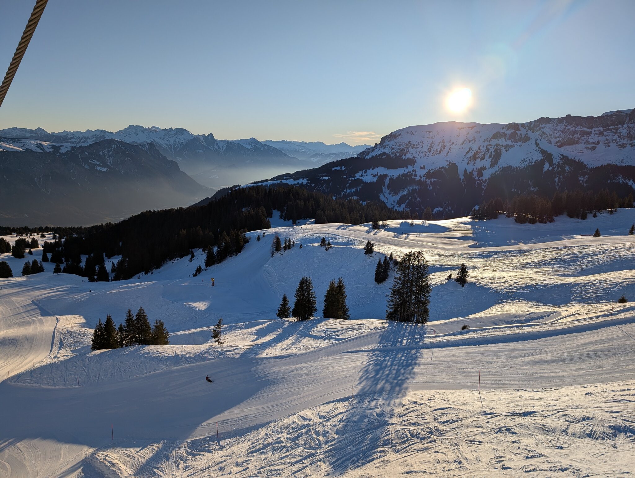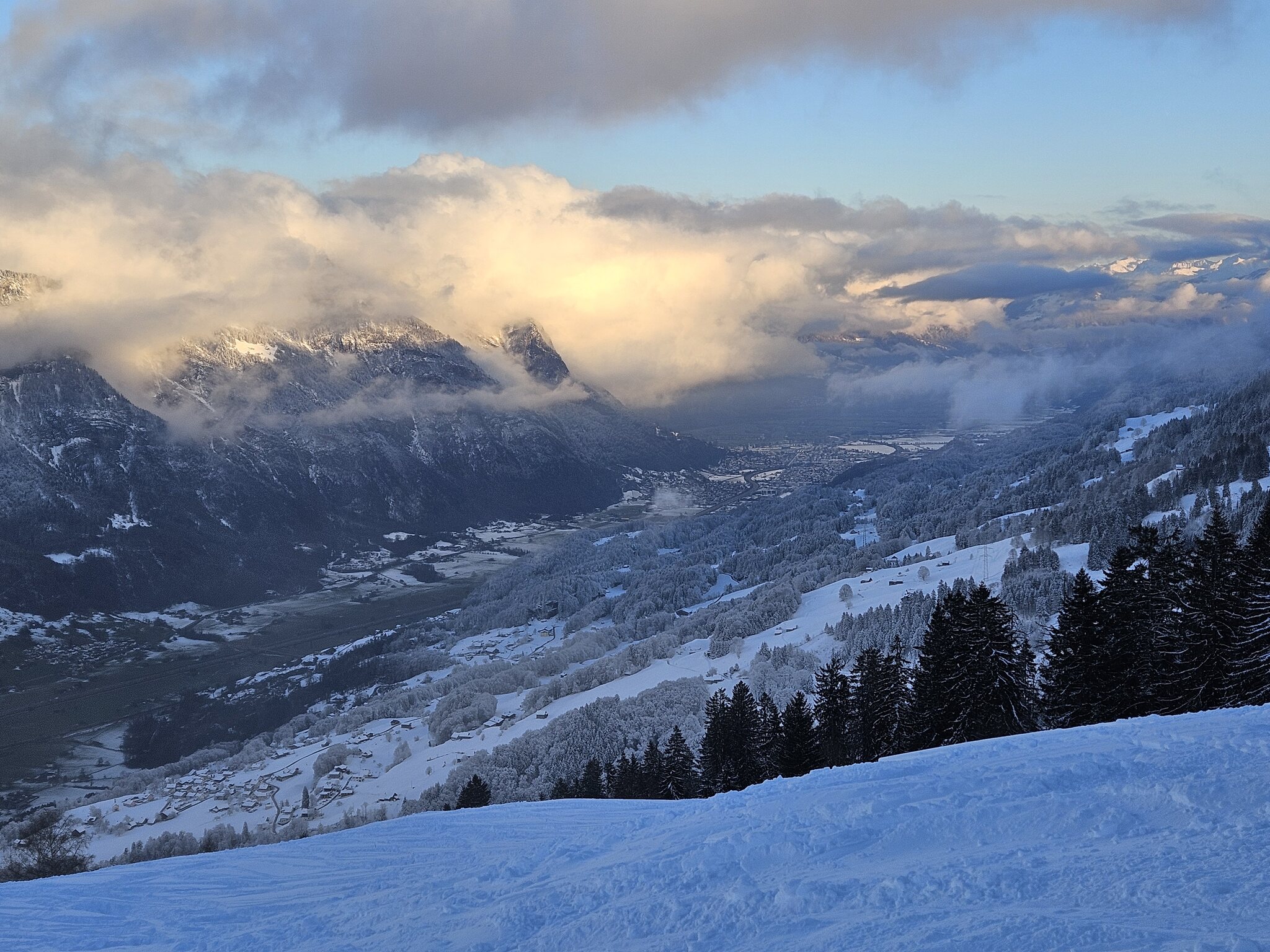 Dank kürzlichem Schneefall ist schon vieles offen, und die Pisten waren heute grösstenteils gut, zum Teil etwas weich.
