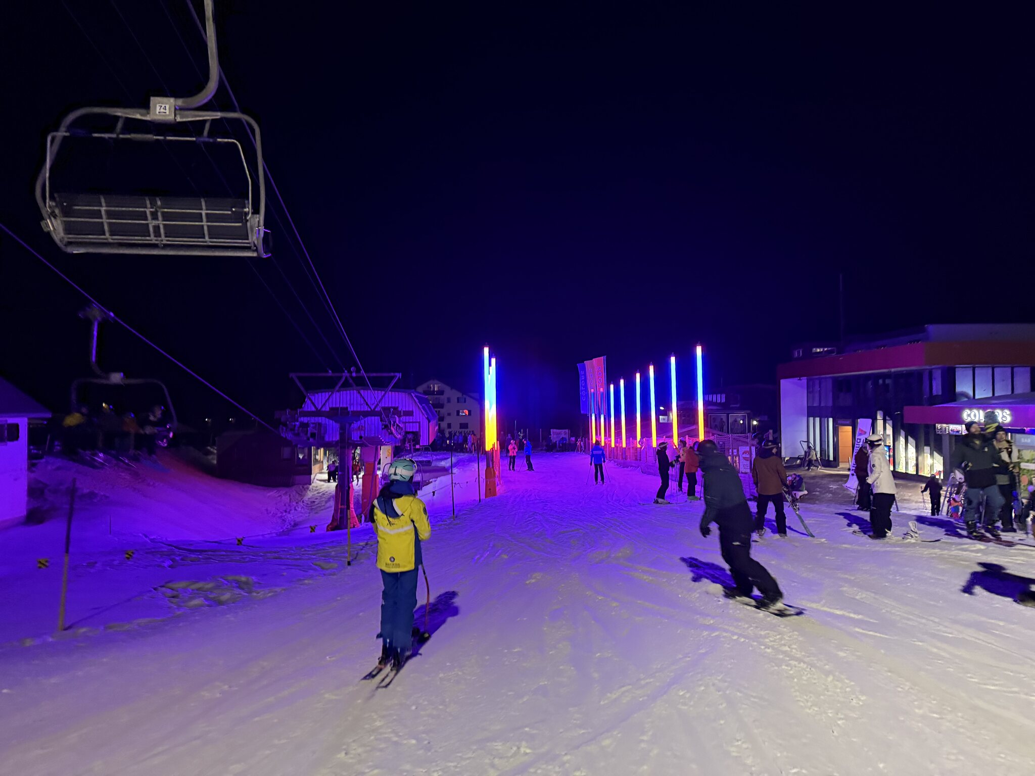 Von meinem drei bisherigen Nachtskifahrten diesen Januar ist das der schlechteste hier: Langweilige Piste, mässig gute Beleuchtung, viele Leute auf der Piste, schlechtester Transportkomfort und auch noch am teuersten. Die Inszenierung ist nett, aber auch nicht der Brüller. Und die Singleline ist nicht abgetrennt. Überzeugt mich nicht.