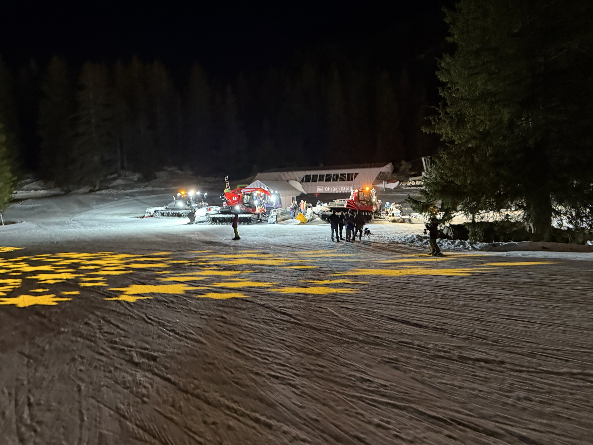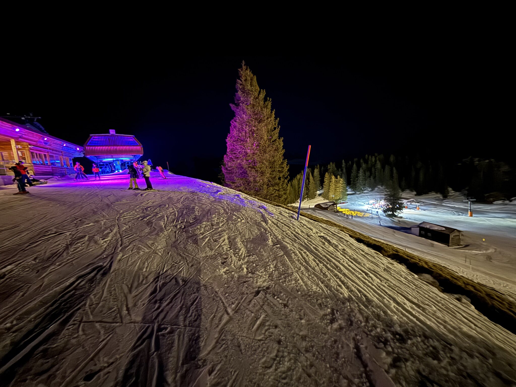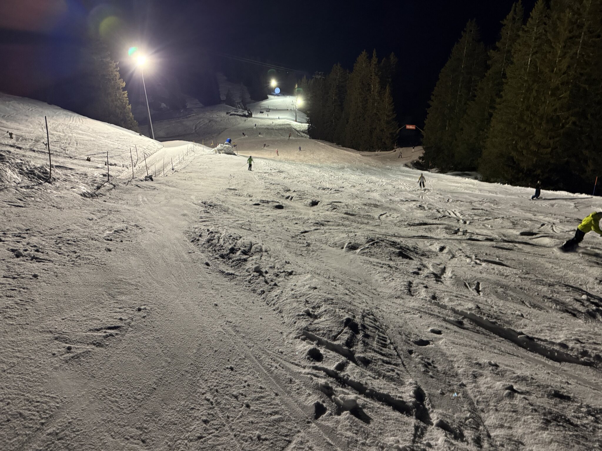 Nach den Abendessen fast keine Leute mehr, aber die Pisten sehr verbuckelt.