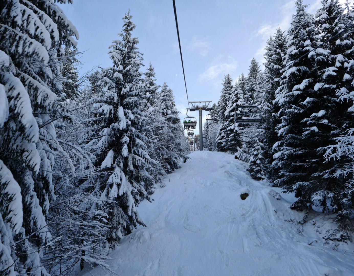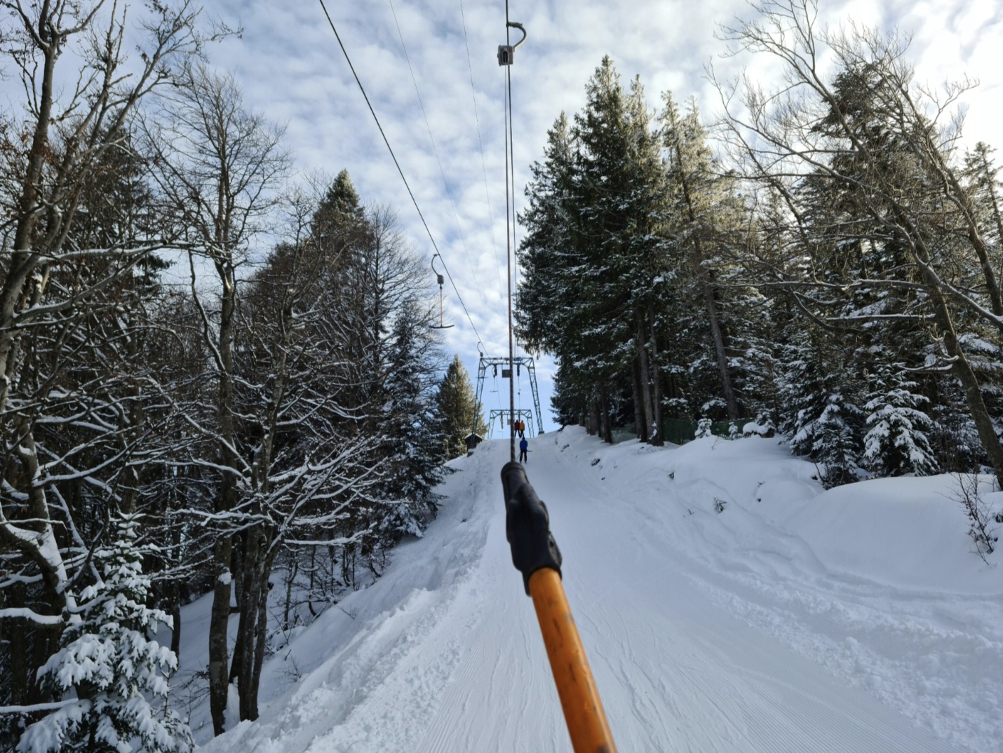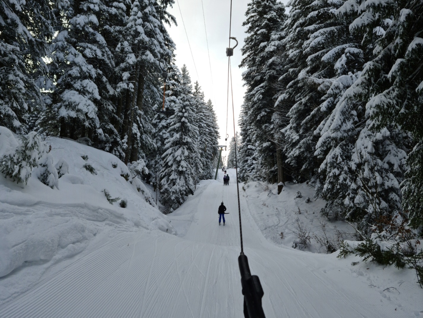 #5- Weiter geht's mit dem Schwarzenberglift, einem schönen, langen Schlepplift, durch den wunderbar verschneiten Wald. Hier stand ich etwas unter 5 Minuten an.
