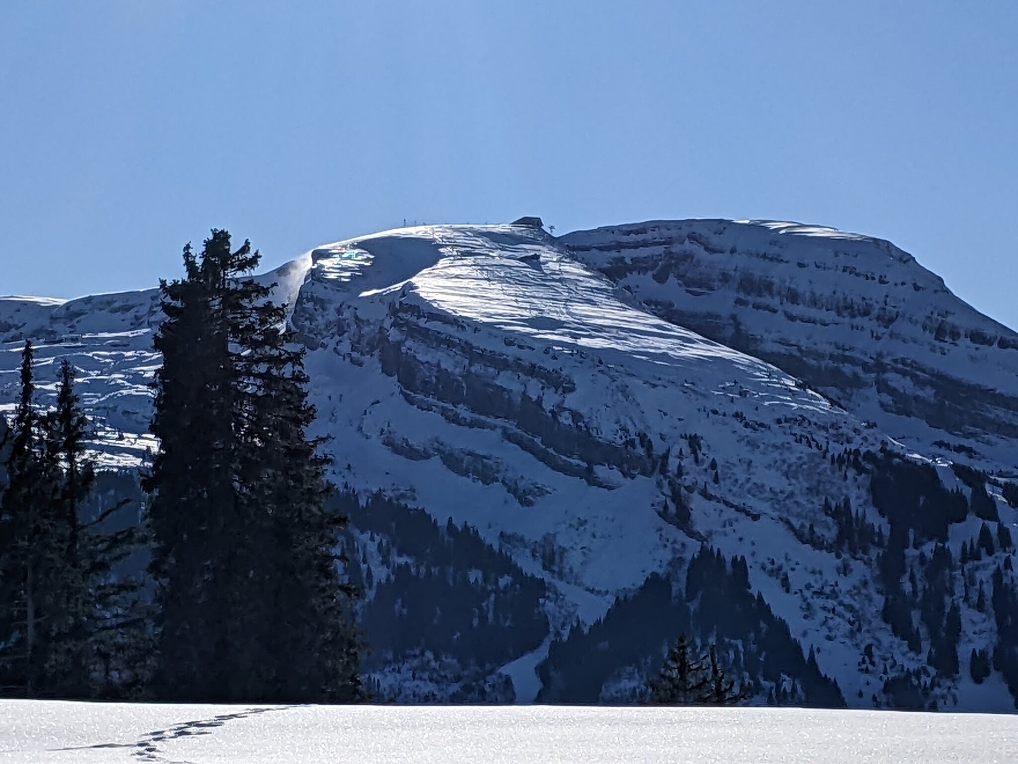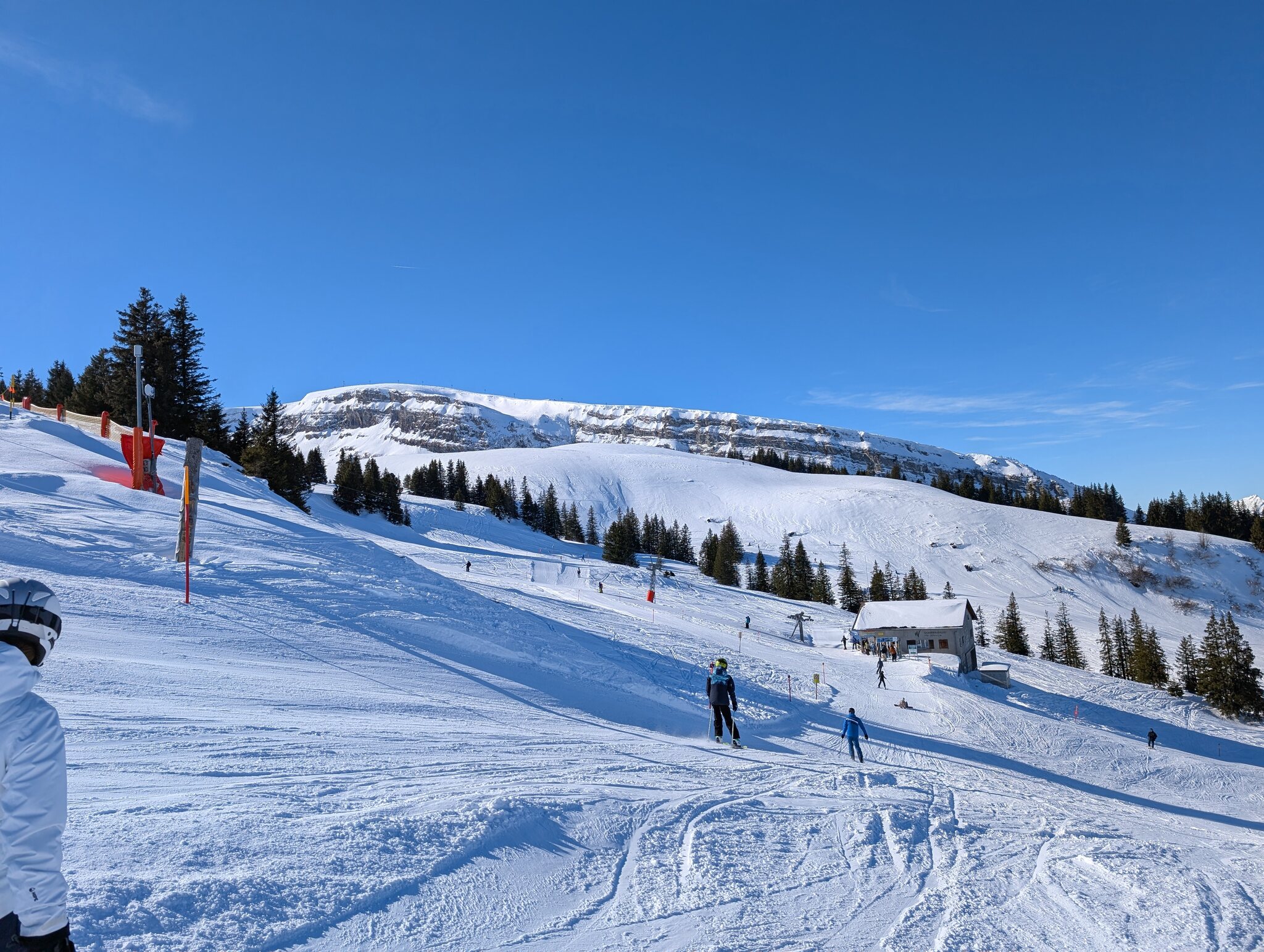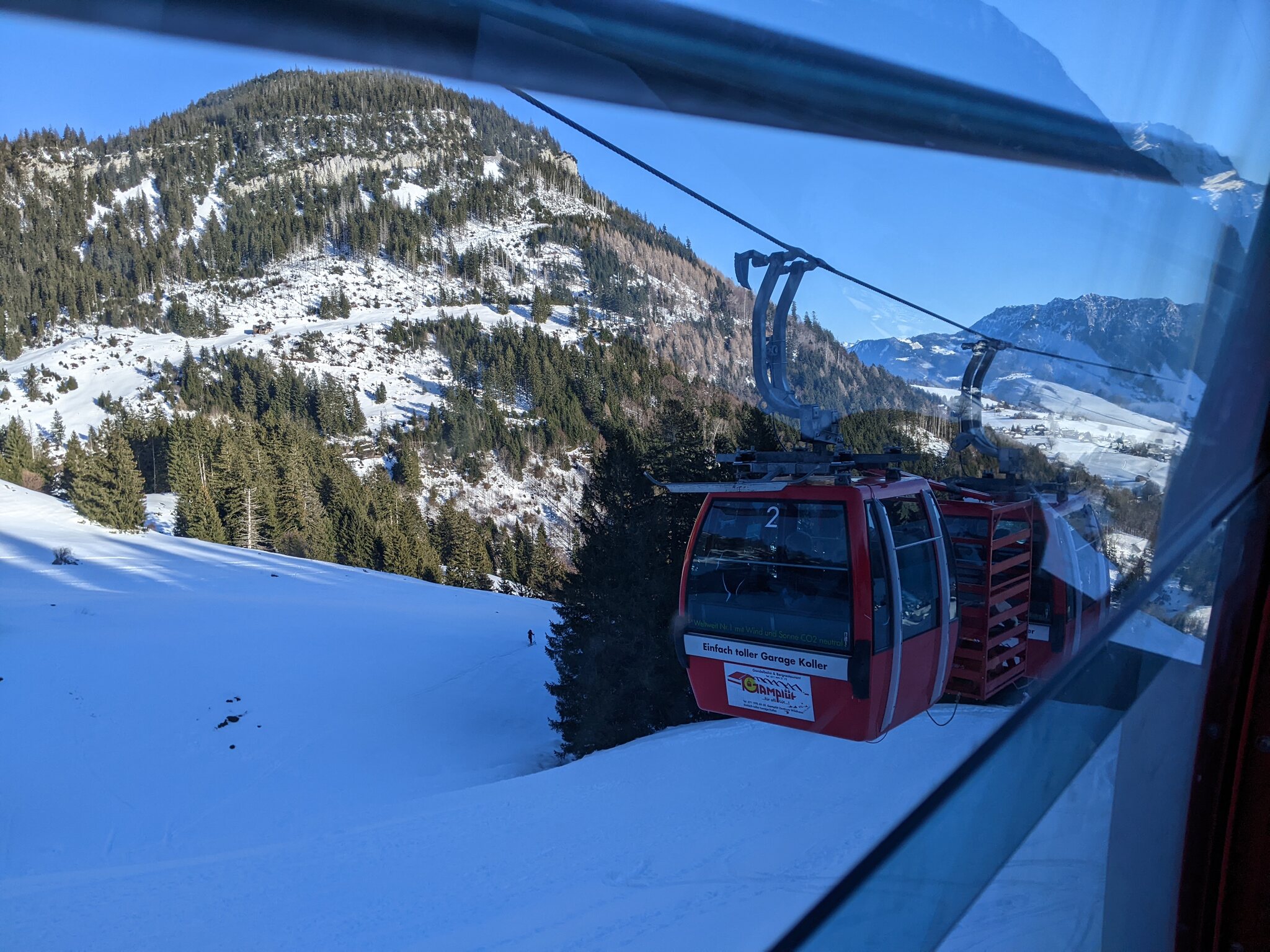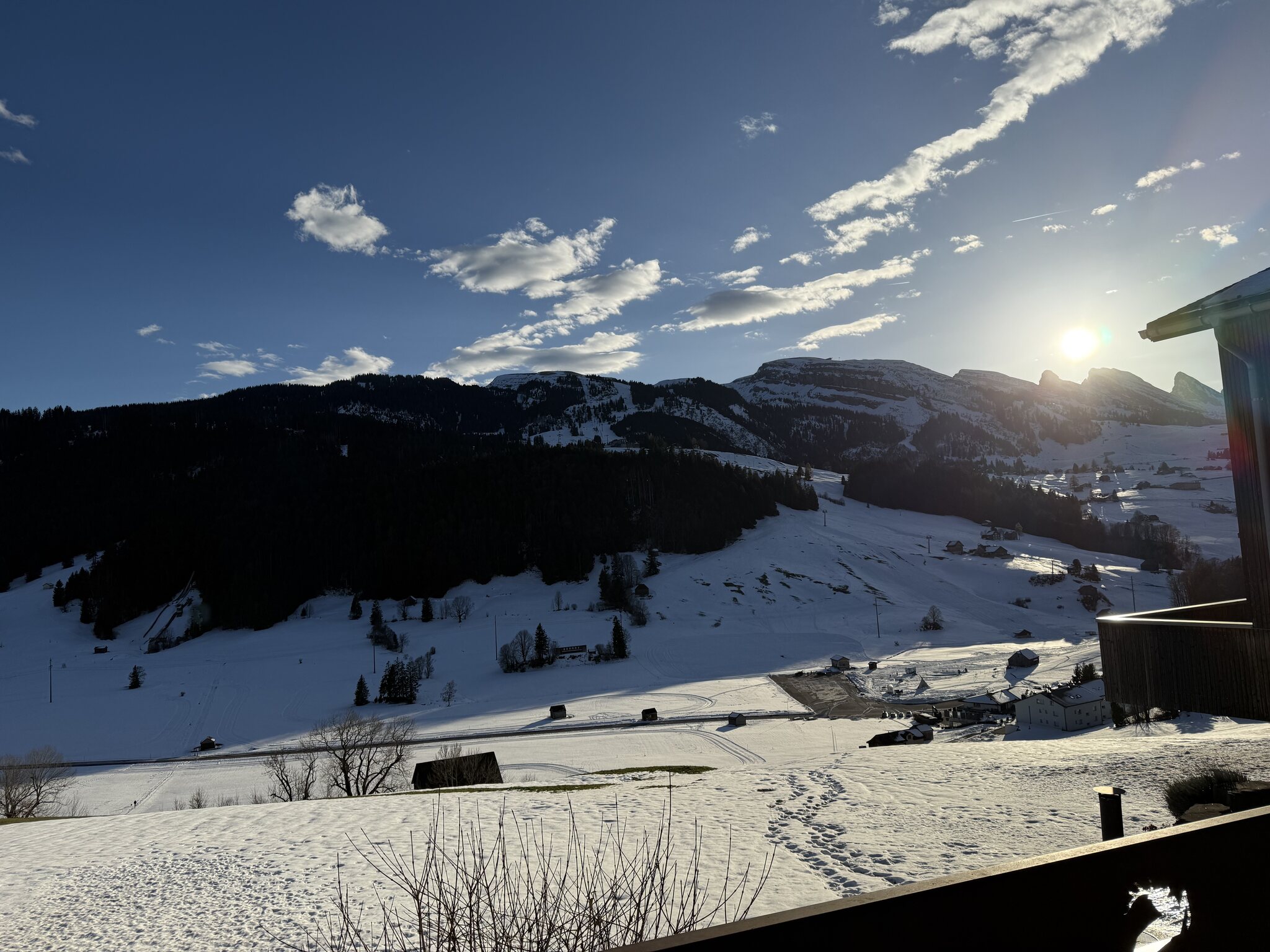 Die Ostabfahrt war wirklich landschaftlich super schön, aber man kommt dem leider getrennten Skigebiet Wildhaus ziemlich nah, ohne es erreichen zu können. Unten dann sehr wenig Schnee und es ragen Hölzer durch die Piste, was im Vergleich zu Steinen aber ganz entspannt ist.