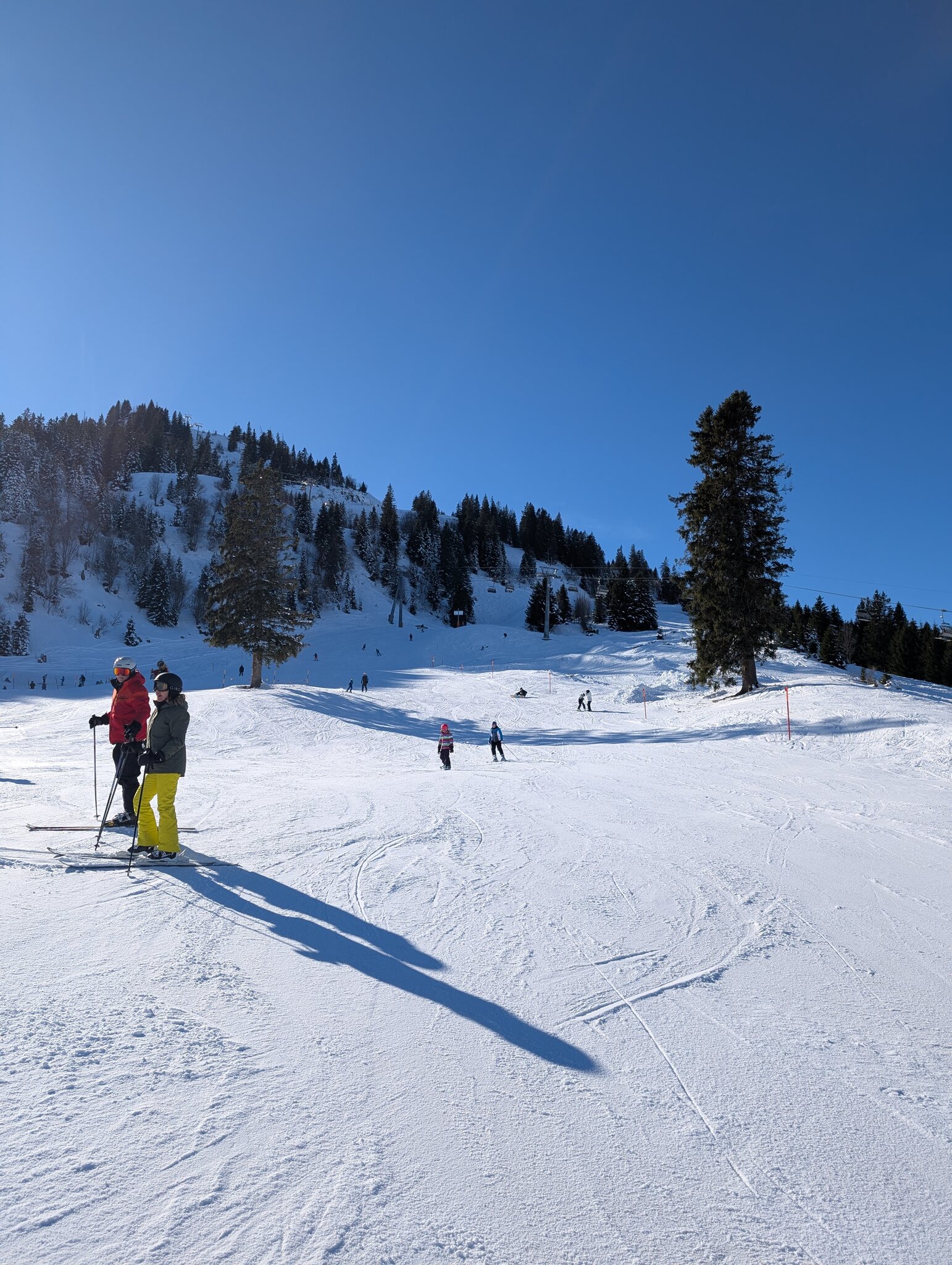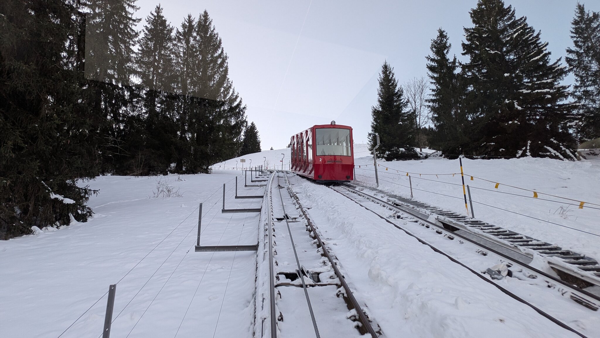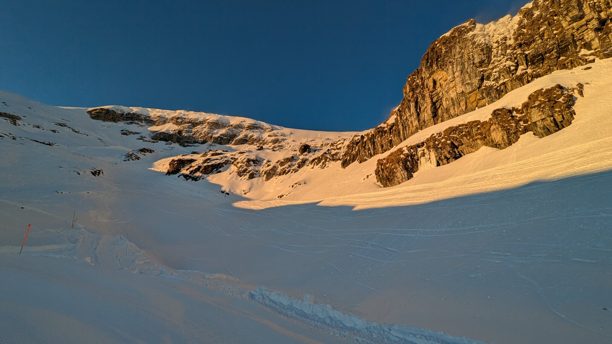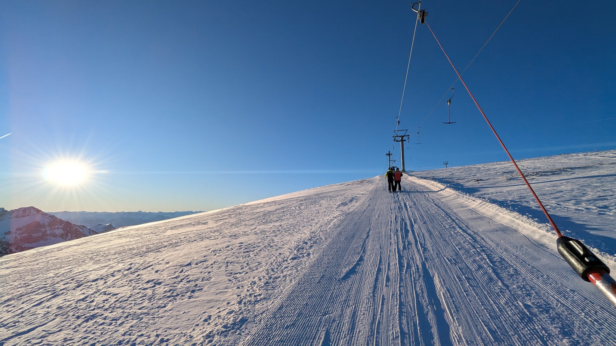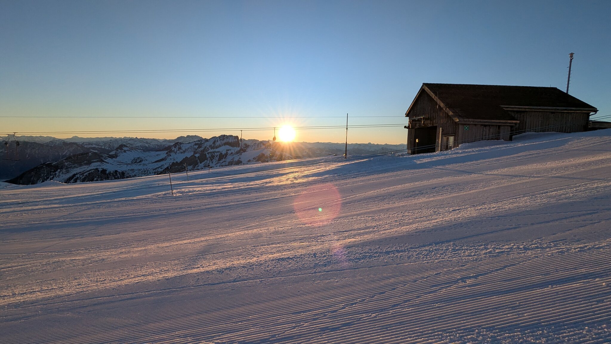 Du Pisten sind bus jetzt den Schneehöhen entsprechend gut präpariert, und die Bahnen haben sogar schon 10 vor 8 aufgemacht und den ersten Schwung mit der Standseilbahn hoch befördert.