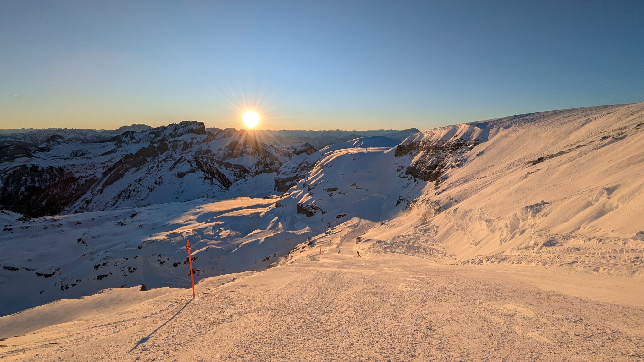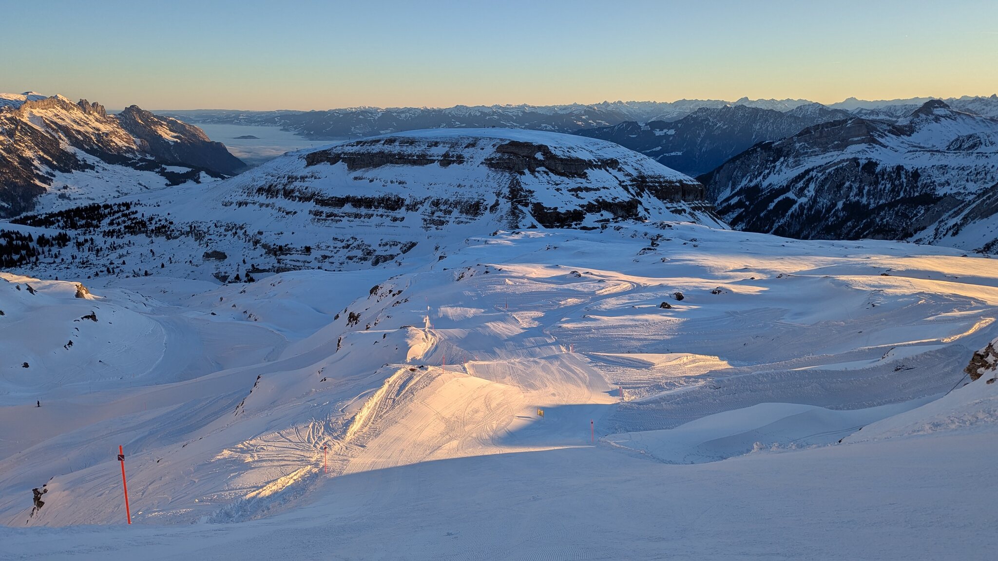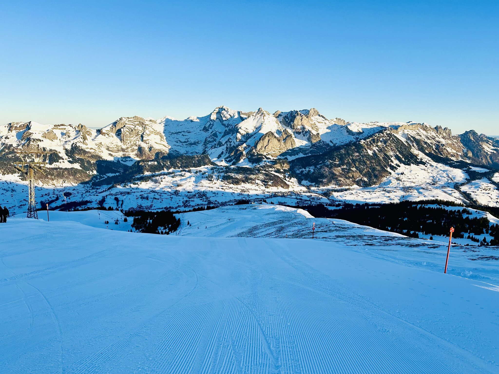 Das Panorama vom Chäserrugg ist schon einmalig schön! Leider ist noch Recht wenig Schnee vorhanden aktuell, aber die Ostabfahrt hat zum Glück heute das erste Mal voll offen, womit eine weitere spannende Piste dazugekommen ist!