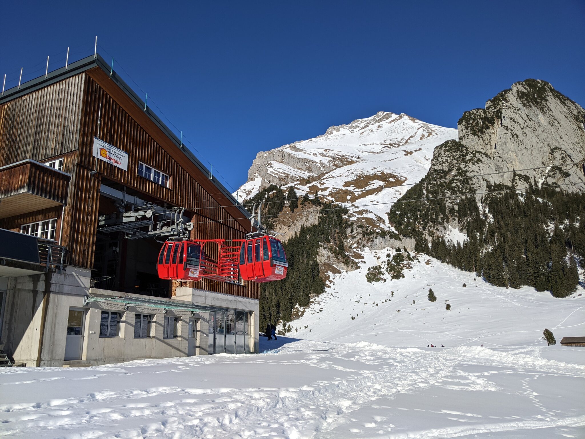 Heute mein erstes Mal Skifahren im Toggenburg, obwohl es doch für mich nur eine Stunde Fahrt entfernt ist. Lange habe ich auf die Wiedervereinigung gehofft, da das aber wohl nicht absehbar ist war es jetzt Zeit den Chäserrugg zu besuchen, als das größere und spannendere Skigebiet der beiden.