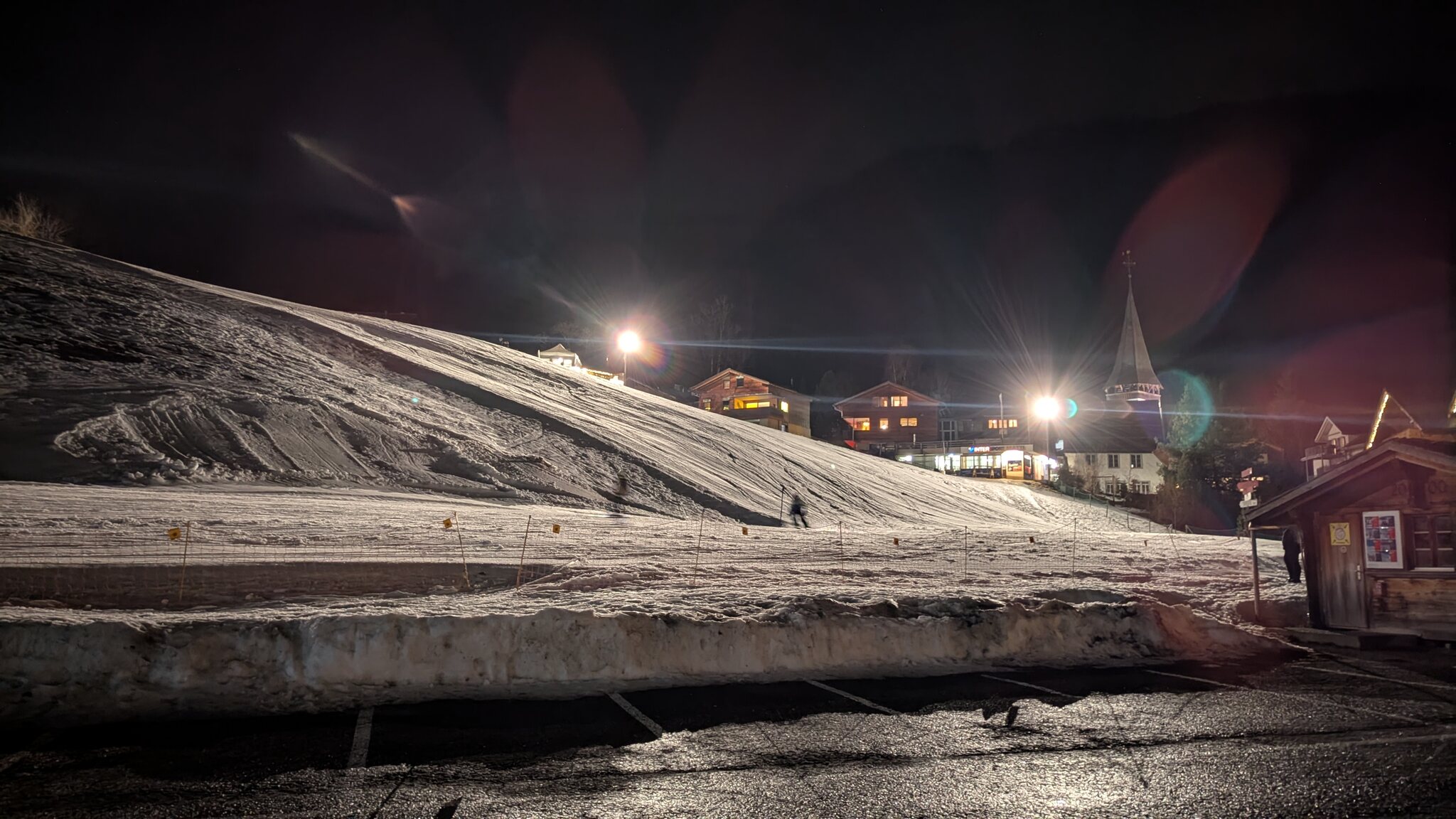 In Zweisimmen wird heute bei Regen Nachtskifahren durchgeführt