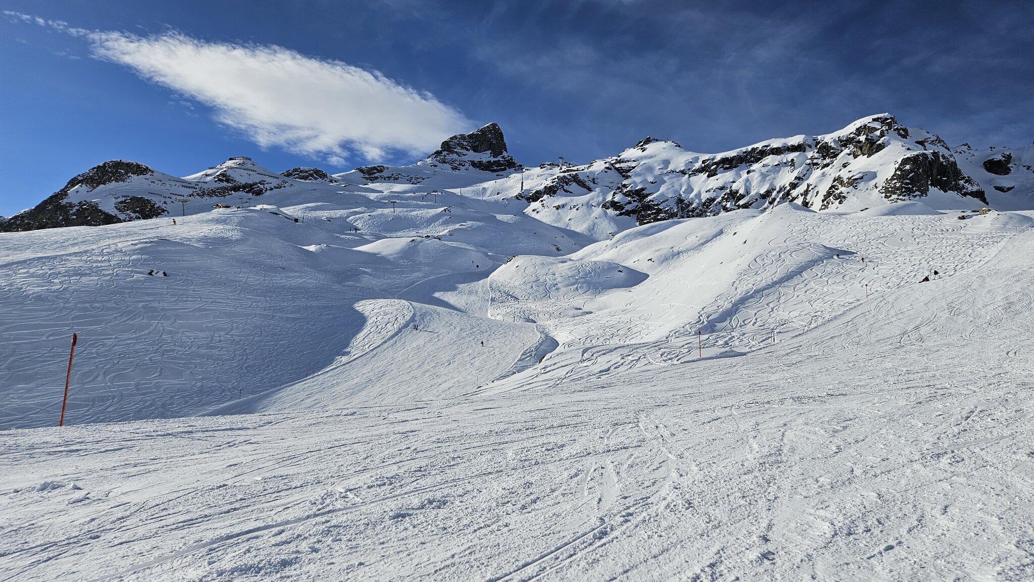 Die Pisten sind ein wenig ausgefahren nach dem Neuschnee, aber nicht sehr störend. Pisten sind alle, inkl. Talabfahrt geöffnet, ausser Petersgrat, welche erst grundpräpariert ist.