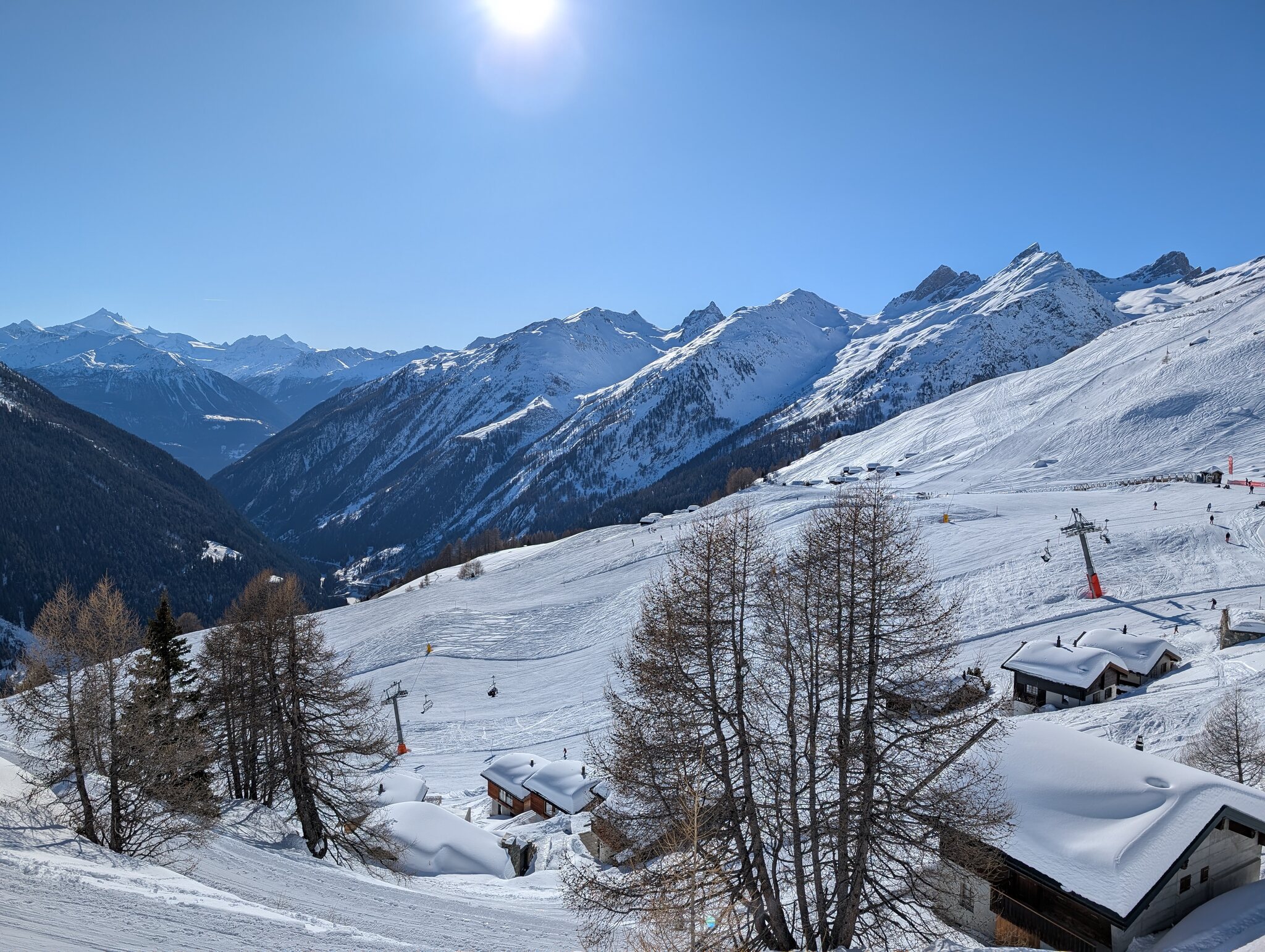 Heute war ich auf der Lauchernalp für meinen ersten Skitag in diesem Jahr. Es war nicht allzu viel los. Die durchschnittlichen Wartezeiten waren etwa 5 Minuten auf der KSB Stafel-Gandegg und etwa 3 Minuten auf der EUB. Da bis auf den Petersgrat und die ehemalige schwarze Piste 7 alle Varianten geöffnet waren, verteilte sich das Gedränge recht gut. Der einzige Engpass war wie immer der steile Abschnitt der schwarzen Arbä, wo sich Buckel bilden und einige schwächere Skifahrer in der Mitte stecken bleiben, aber das ist Jammern auf hohem Niveau.