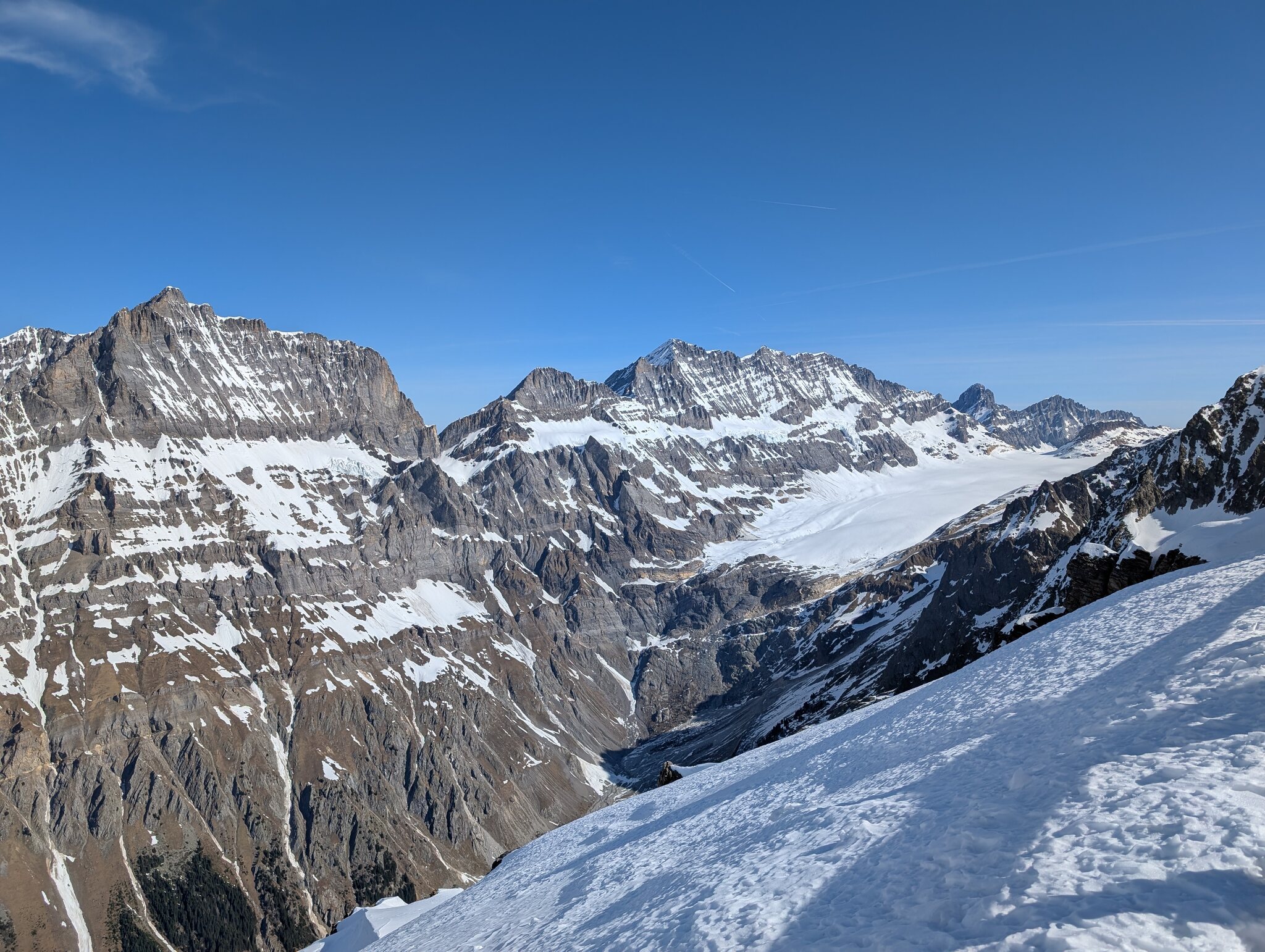 Die Schneeverhältnisse waren zu Beginn noch hart, dann aber rasch sulzig. Es fehlen hier halt schon etwas die Nordhänge im April.