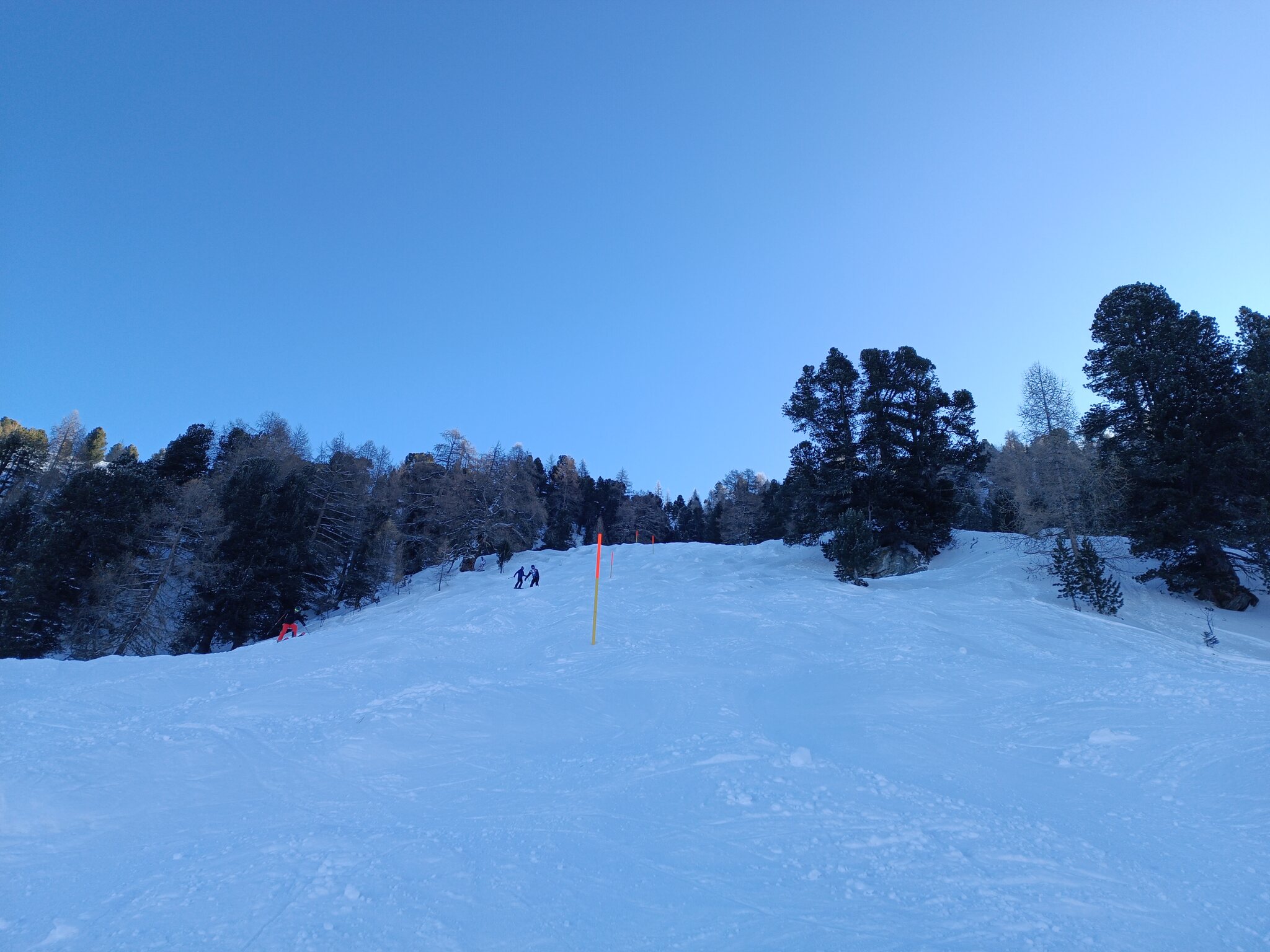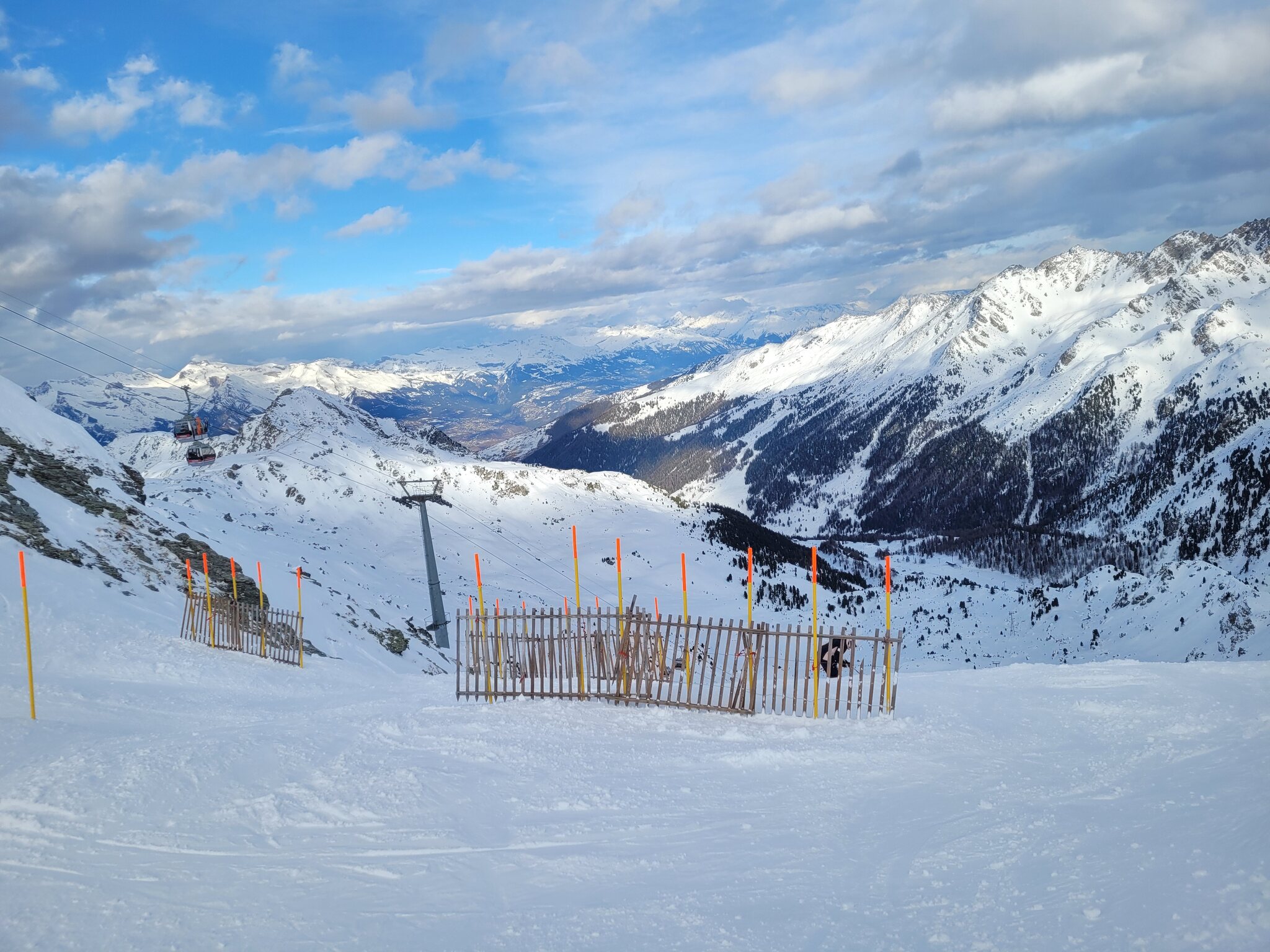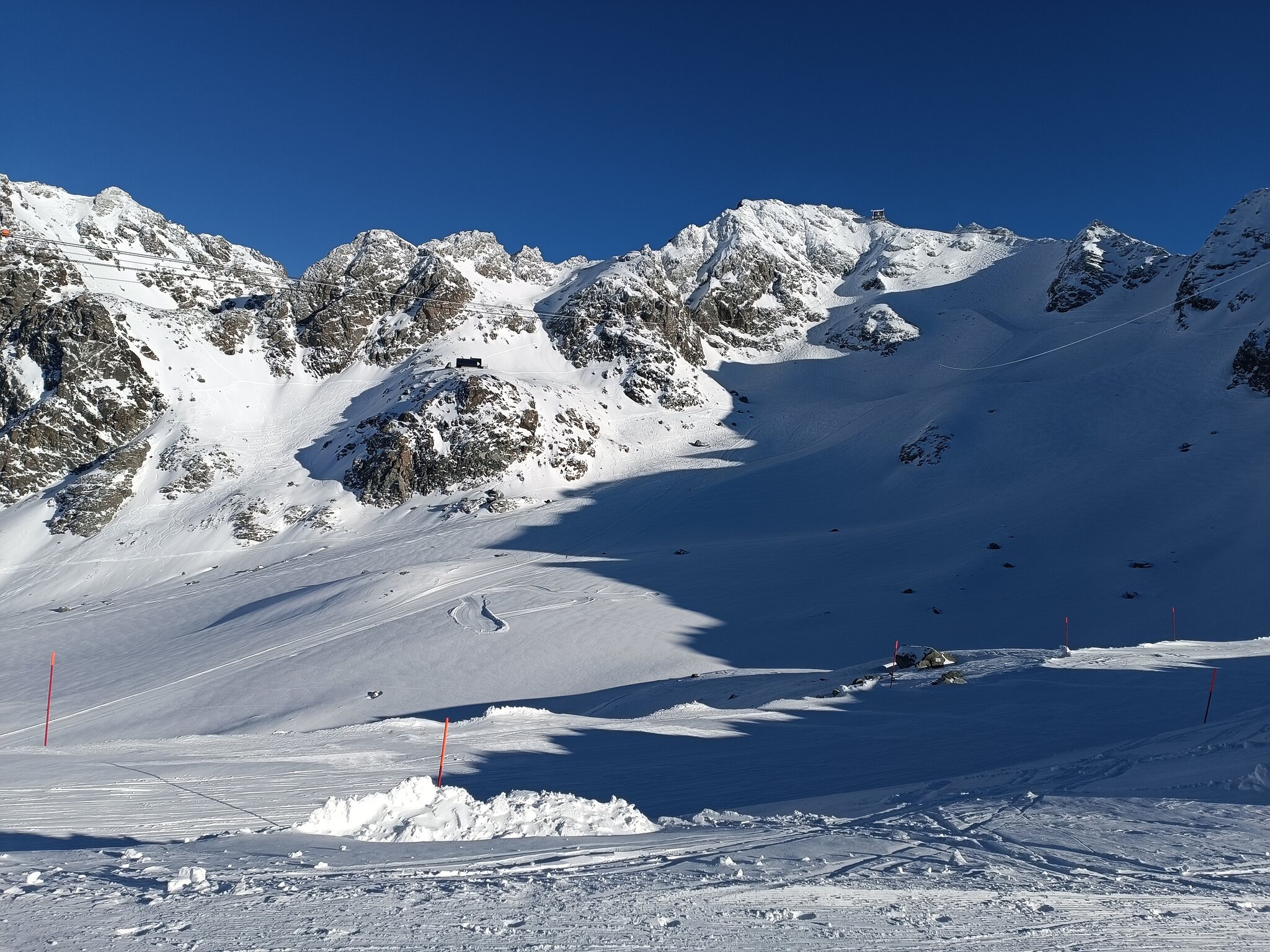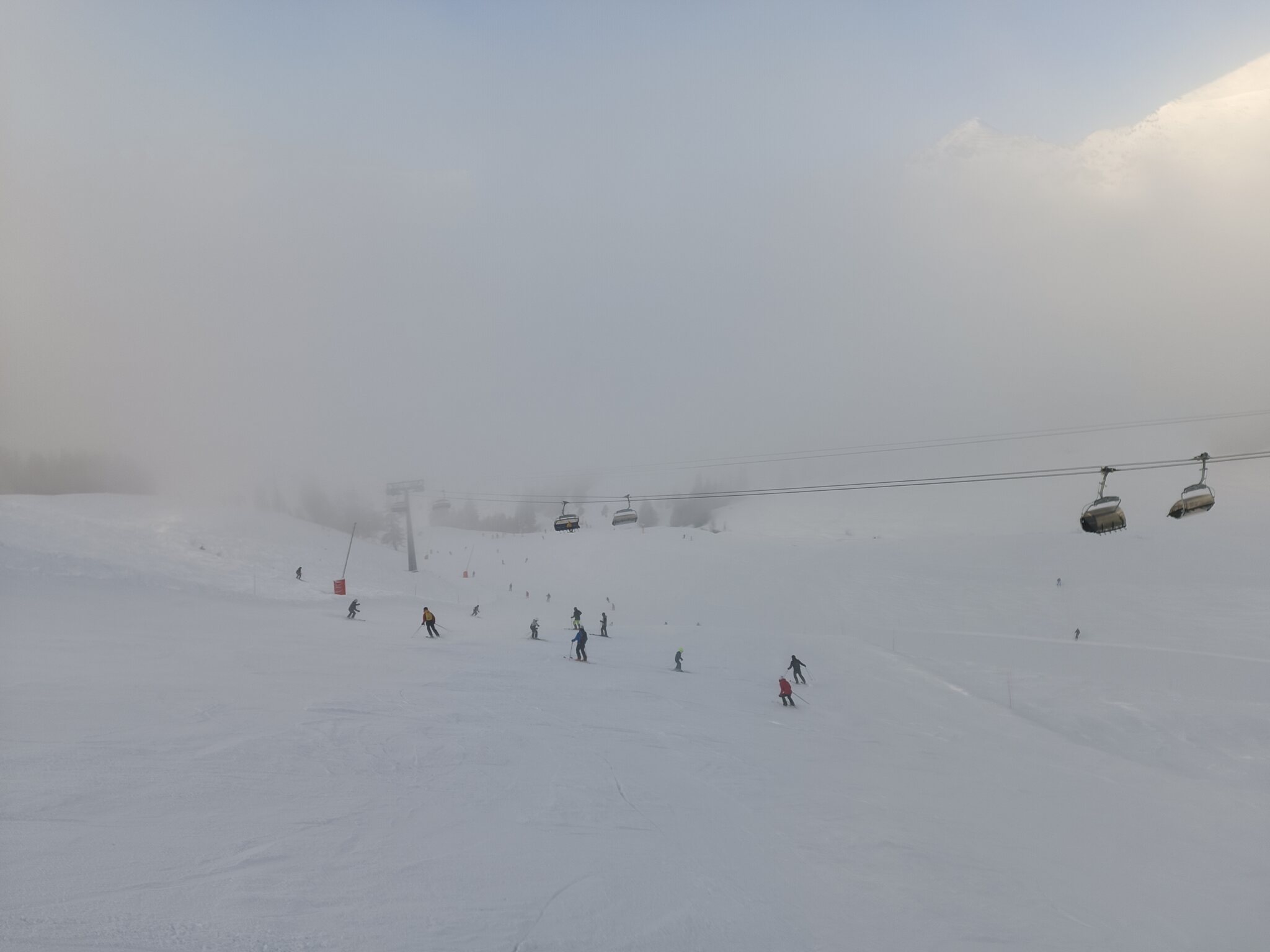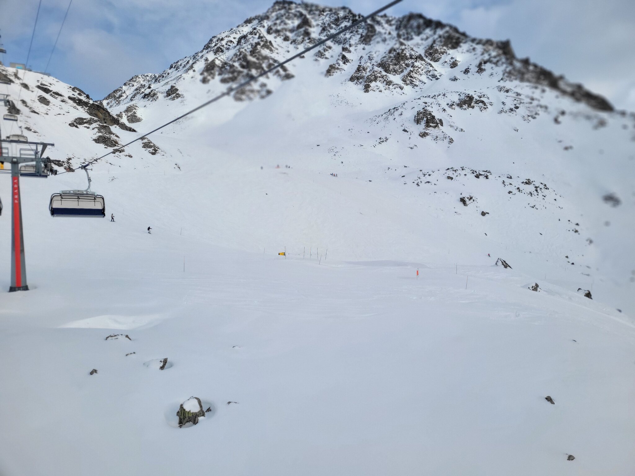 Die Pisten waren super, die in Südlage etwas zerfahrener bzw. mehr "bumpy" als die Richtung Norden. Später am Tag natürlich mehr zerfahren, aber immernoch sehr gut skibar. Im letzten Hang vor der TC liefen wohl letzte Nacht oder in der letzten Zeit die Schneelanzen, weshalb da so Haufen (habe ein Foto angehängt, aber ist schwierig mit dem Kontrast) auf der Pisten waren. Diese waren mit schwarz/gelb-Stöcken markiert, aber begrenzten die Pistenbreite dennoch deutlich. Ungut in dem Abschnitt, hier wird's gerne eisig am späten Tag und dann kommen noch irgendwann die ganzen Anfänger hier runter. Tatsächlich gab es diese Schneehaufen auch vereinzelt an anderen Stellen, aber immer markiert. Keine Ahnung, ob man da zu faul war oder keine Zeit mehr zum verteilen hatte.