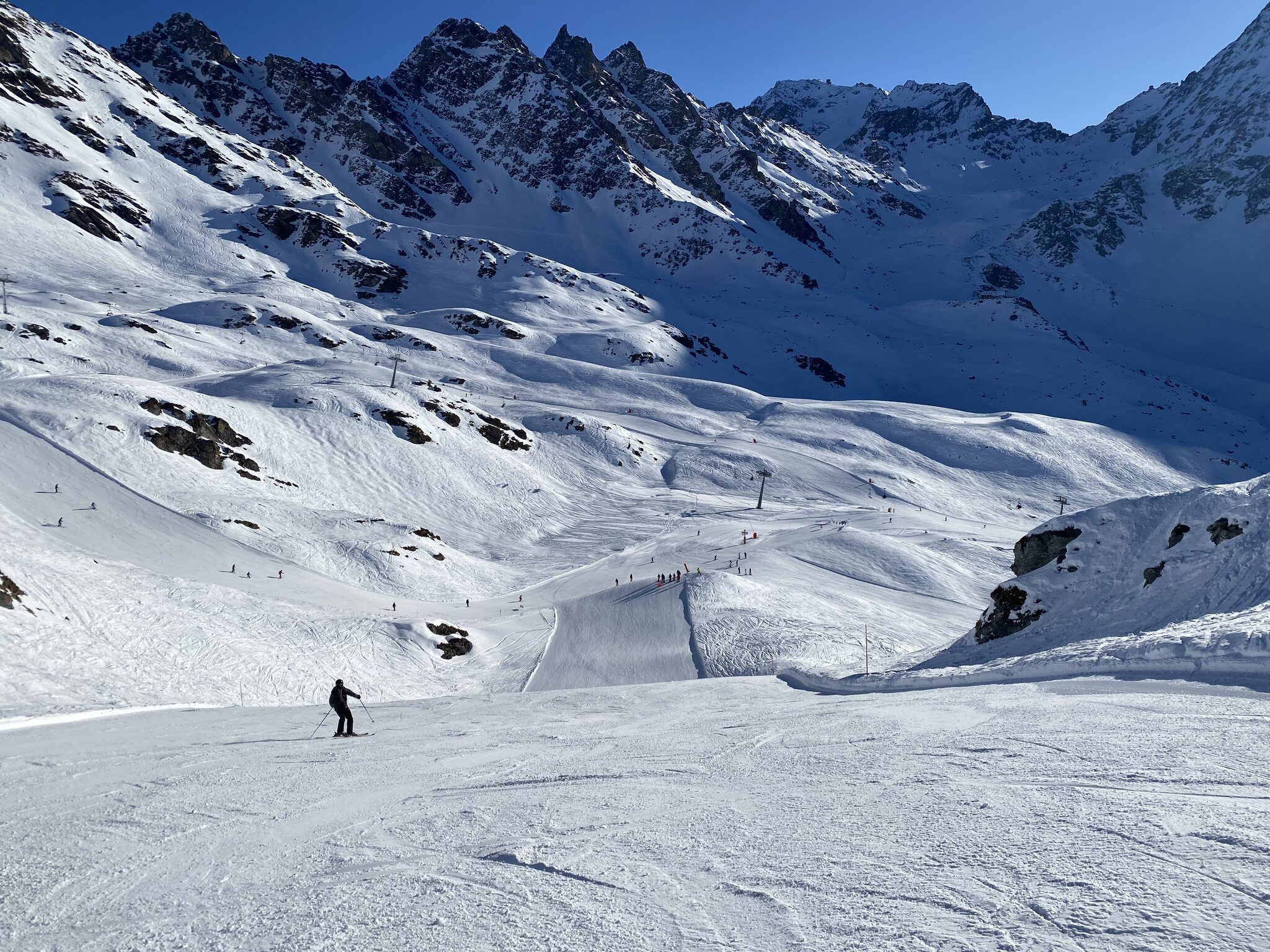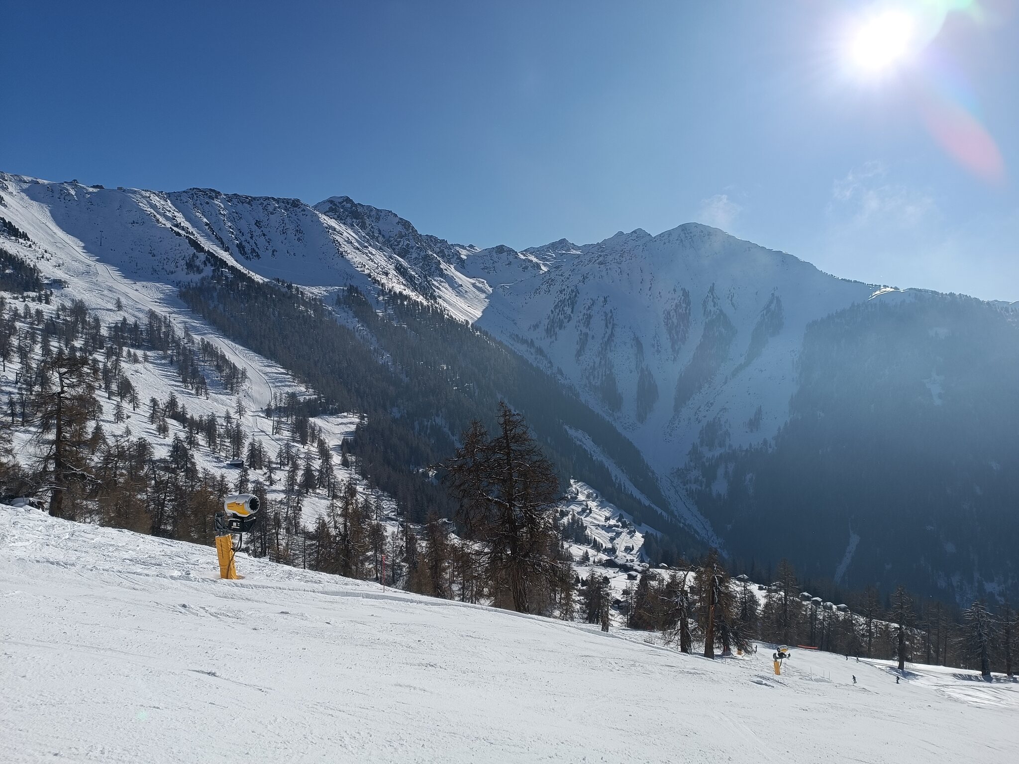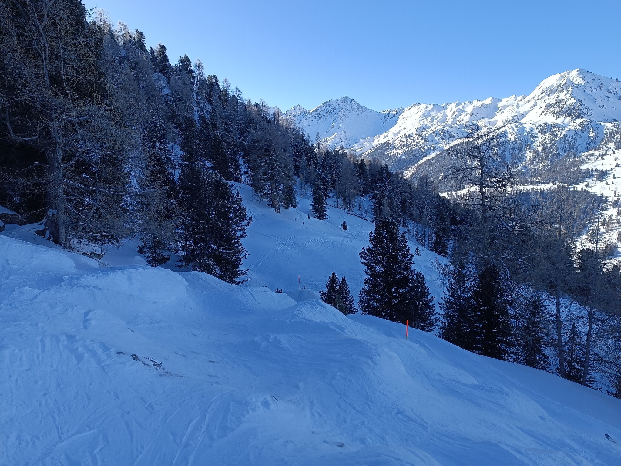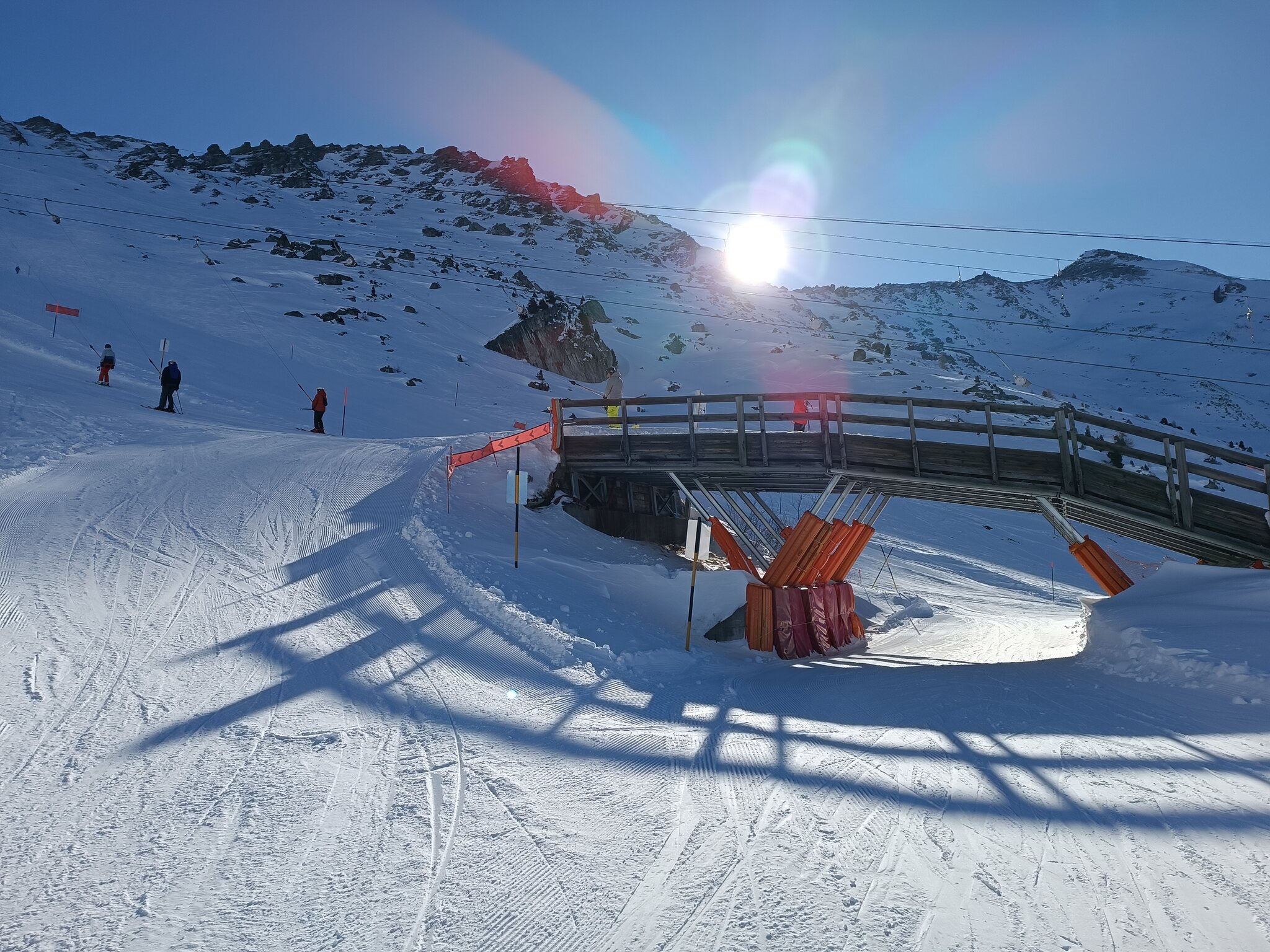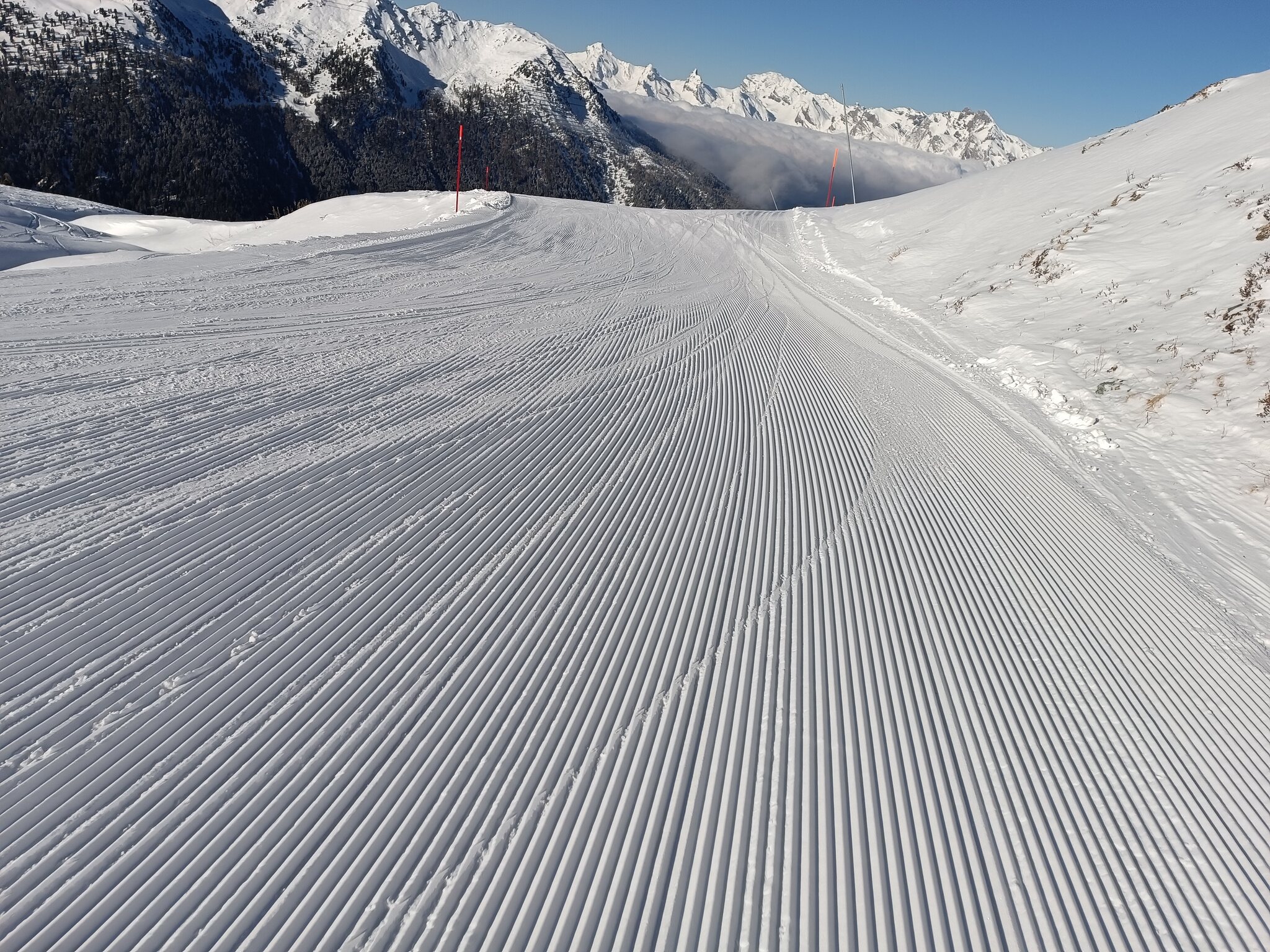 Die Pisten waren super, die in Südlage etwas zerfahrener bzw. mehr "bumpy" als die Richtung Norden. Später am Tag natürlich mehr zerfahren, aber immernoch sehr gut skibar. Im letzten Hang vor der TC liefen wohl letzte Nacht oder in der letzten Zeit die Schneelanzen, weshalb da so Haufen (habe ein Foto angehängt, aber ist schwierig mit dem Kontrast) auf der Pisten waren. Diese waren mit schwarz/gelb-Stöcken markiert, aber begrenzten die Pistenbreite dennoch deutlich. Ungut in dem Abschnitt, hier wird's gerne eisig am späten Tag und dann kommen noch irgendwann die ganzen Anfänger hier runter. Tatsächlich gab es diese Schneehaufen auch vereinzelt an anderen Stellen, aber immer markiert. Keine Ahnung, ob man da zu faul war oder keine Zeit mehr zum verteilen hatte.