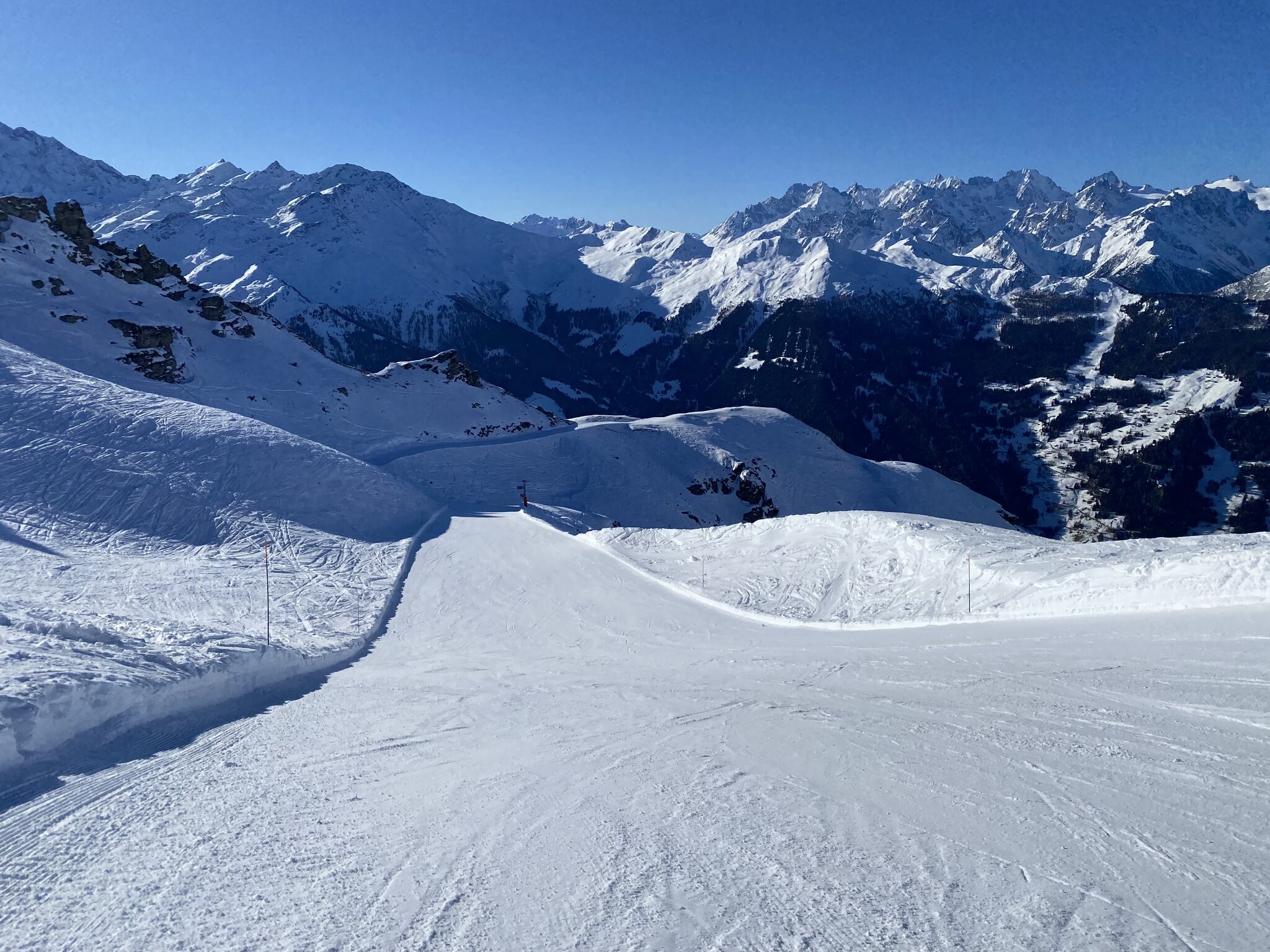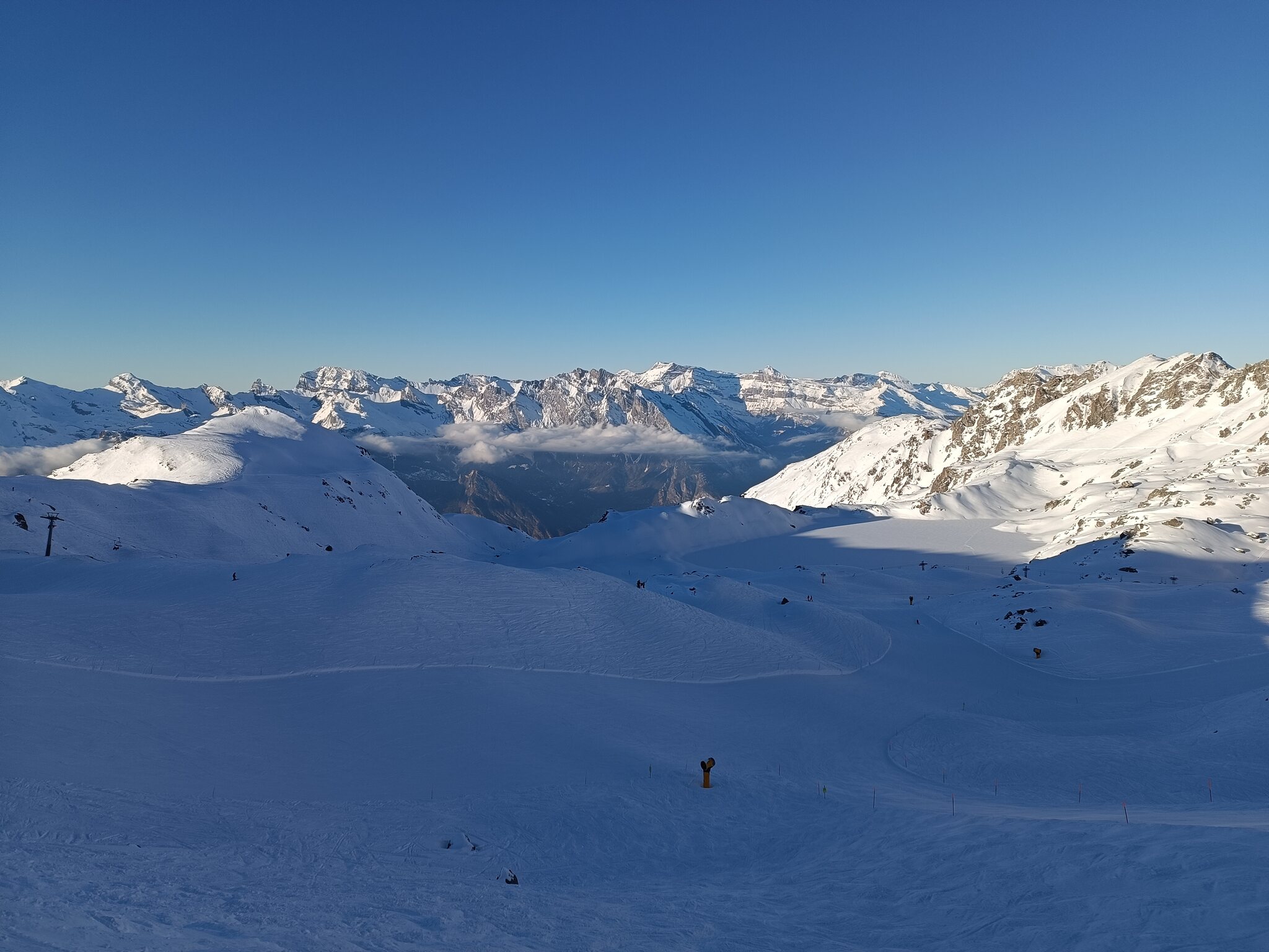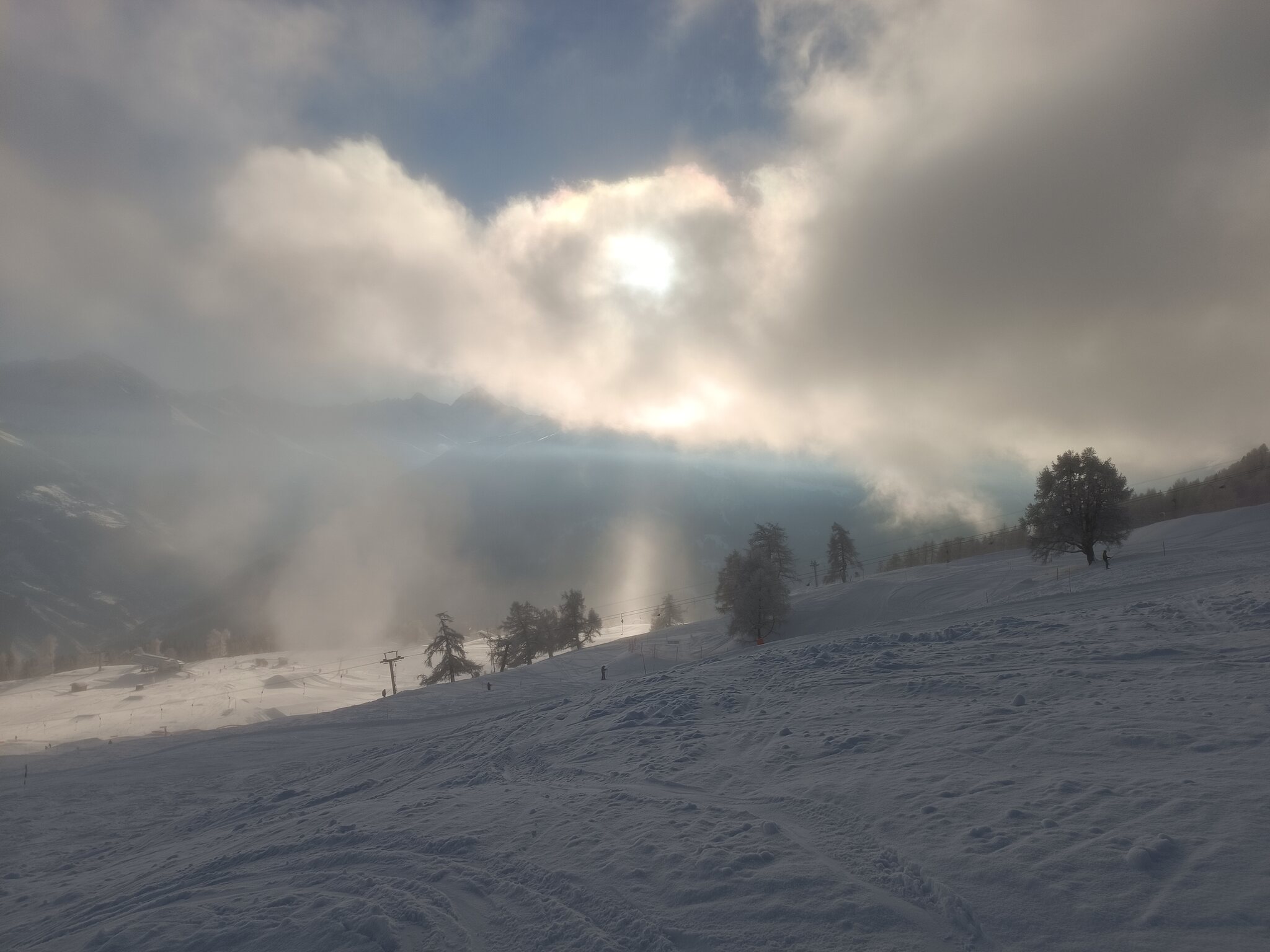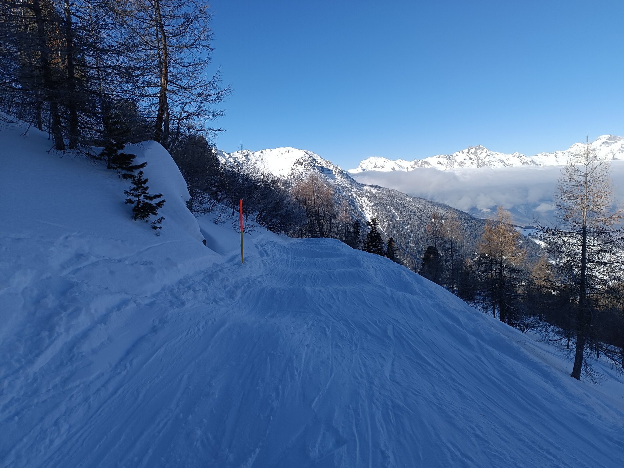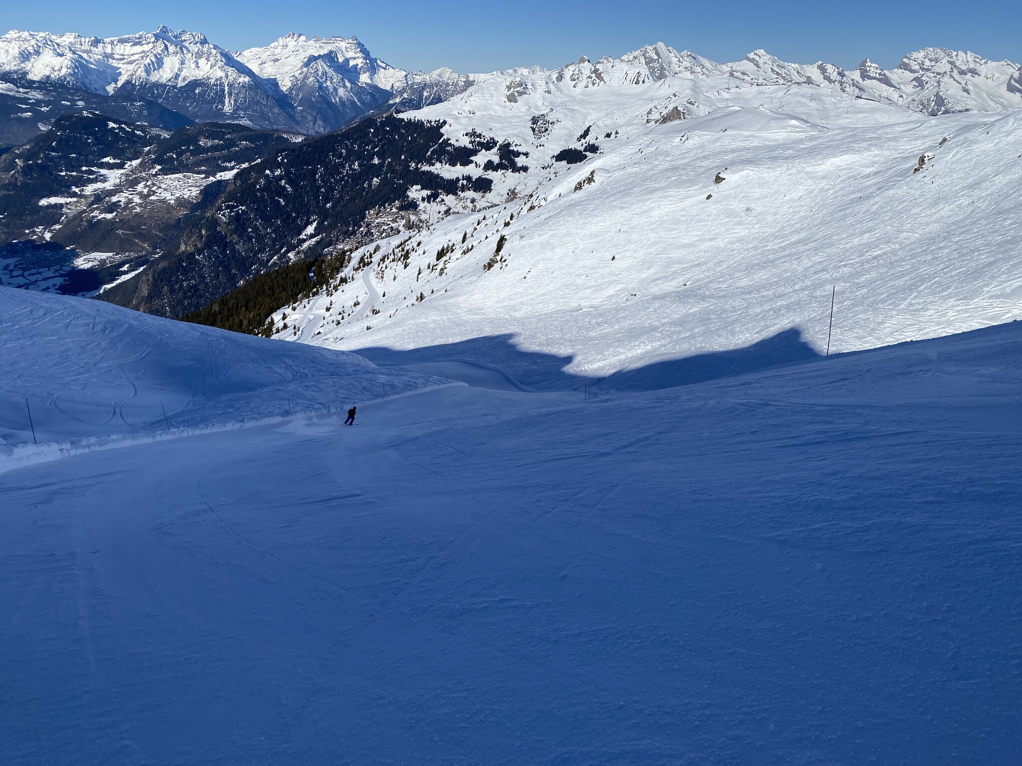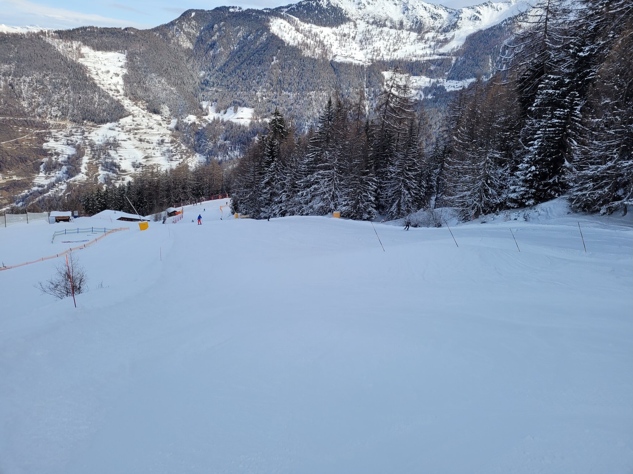 Die Pisten waren super, die in Südlage etwas zerfahrener bzw. mehr "bumpy" als die Richtung Norden. Später am Tag natürlich mehr zerfahren, aber immernoch sehr gut skibar. Im letzten Hang vor der TC liefen wohl letzte Nacht oder in der letzten Zeit die Schneelanzen, weshalb da so Haufen (habe ein Foto angehängt, aber ist schwierig mit dem Kontrast) auf der Pisten waren. Diese waren mit schwarz/gelb-Stöcken markiert, aber begrenzten die Pistenbreite dennoch deutlich. Ungut in dem Abschnitt, hier wird's gerne eisig am späten Tag und dann kommen noch irgendwann die ganzen Anfänger hier runter. Tatsächlich gab es diese Schneehaufen auch vereinzelt an anderen Stellen, aber immer markiert. Keine Ahnung, ob man da zu faul war oder keine Zeit mehr zum verteilen hatte.