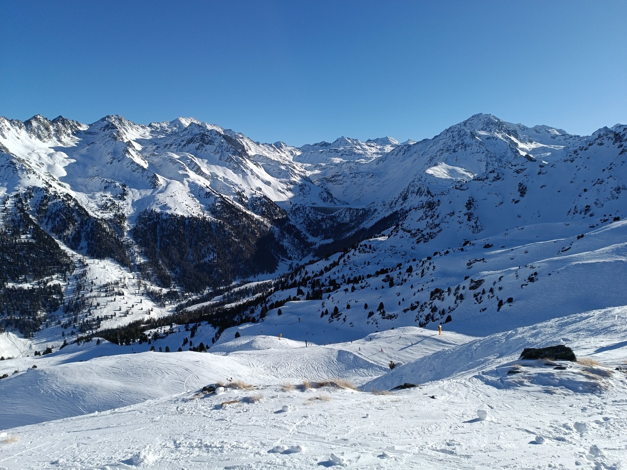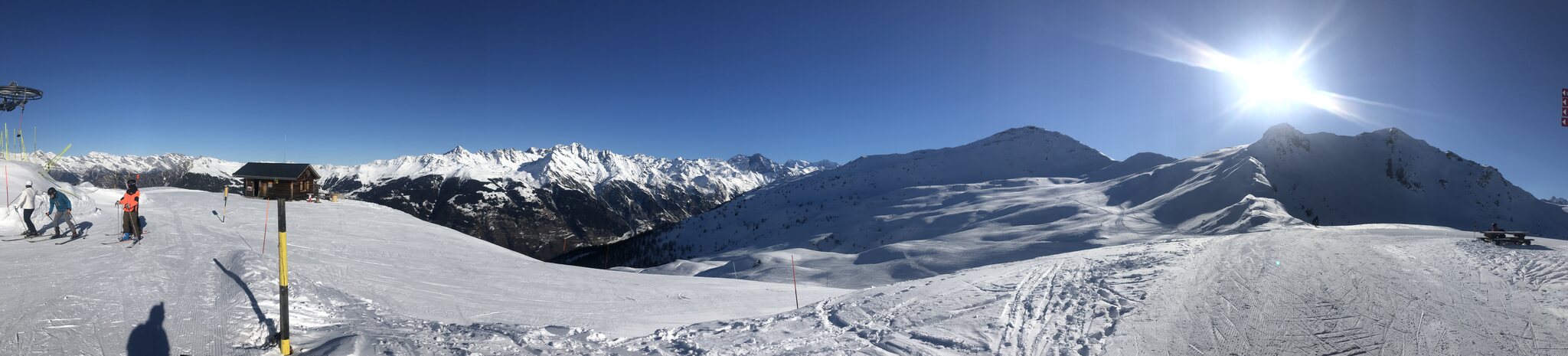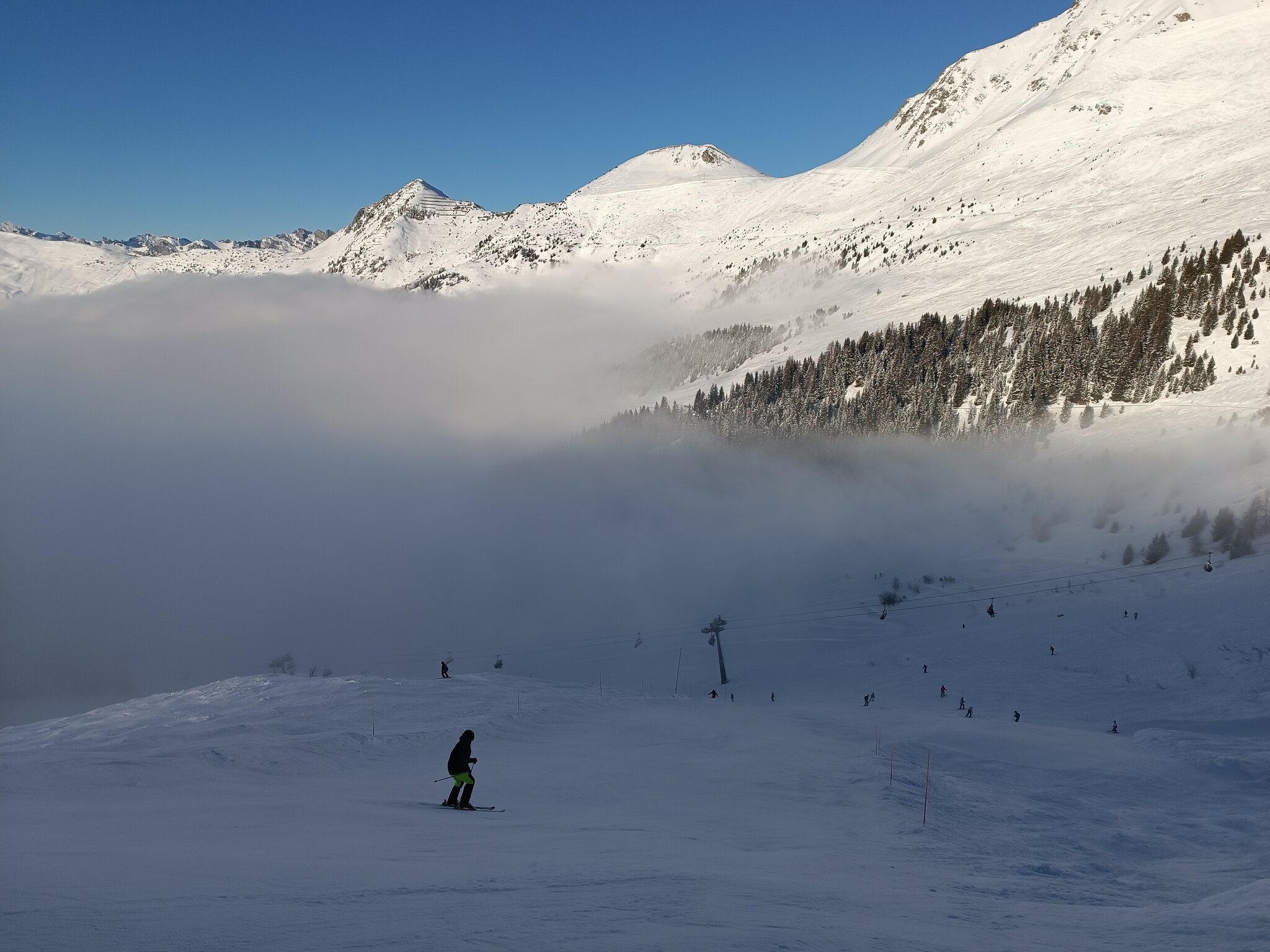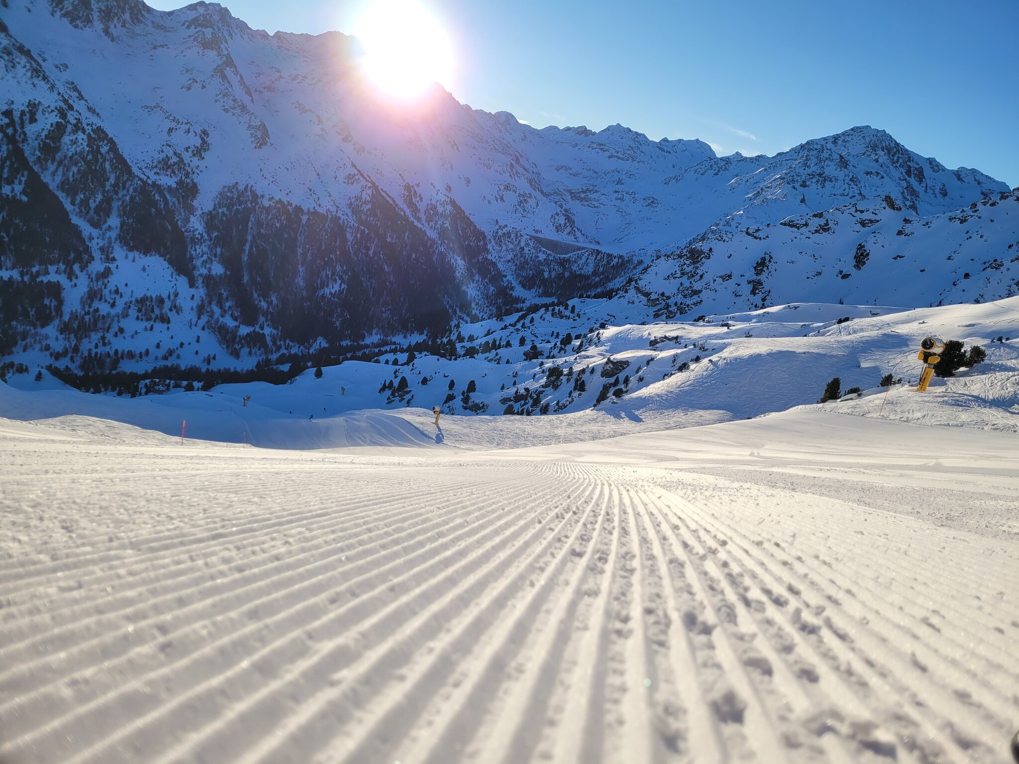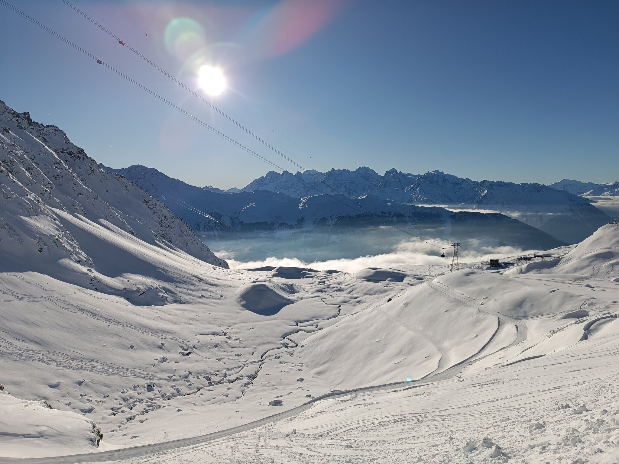 Die Pisten waren super, die in Südlage etwas zerfahrener bzw. mehr "bumpy" als die Richtung Norden. Später am Tag natürlich mehr zerfahren, aber immernoch sehr gut skibar. Im letzten Hang vor der TC liefen wohl letzte Nacht oder in der letzten Zeit die Schneelanzen, weshalb da so Haufen (habe ein Foto angehängt, aber ist schwierig mit dem Kontrast) auf der Pisten waren. Diese waren mit schwarz/gelb-Stöcken markiert, aber begrenzten die Pistenbreite dennoch deutlich. Ungut in dem Abschnitt, hier wird's gerne eisig am späten Tag und dann kommen noch irgendwann die ganzen Anfänger hier runter. Tatsächlich gab es diese Schneehaufen auch vereinzelt an anderen Stellen, aber immer markiert. Keine Ahnung, ob man da zu faul war oder keine Zeit mehr zum verteilen hatte.
