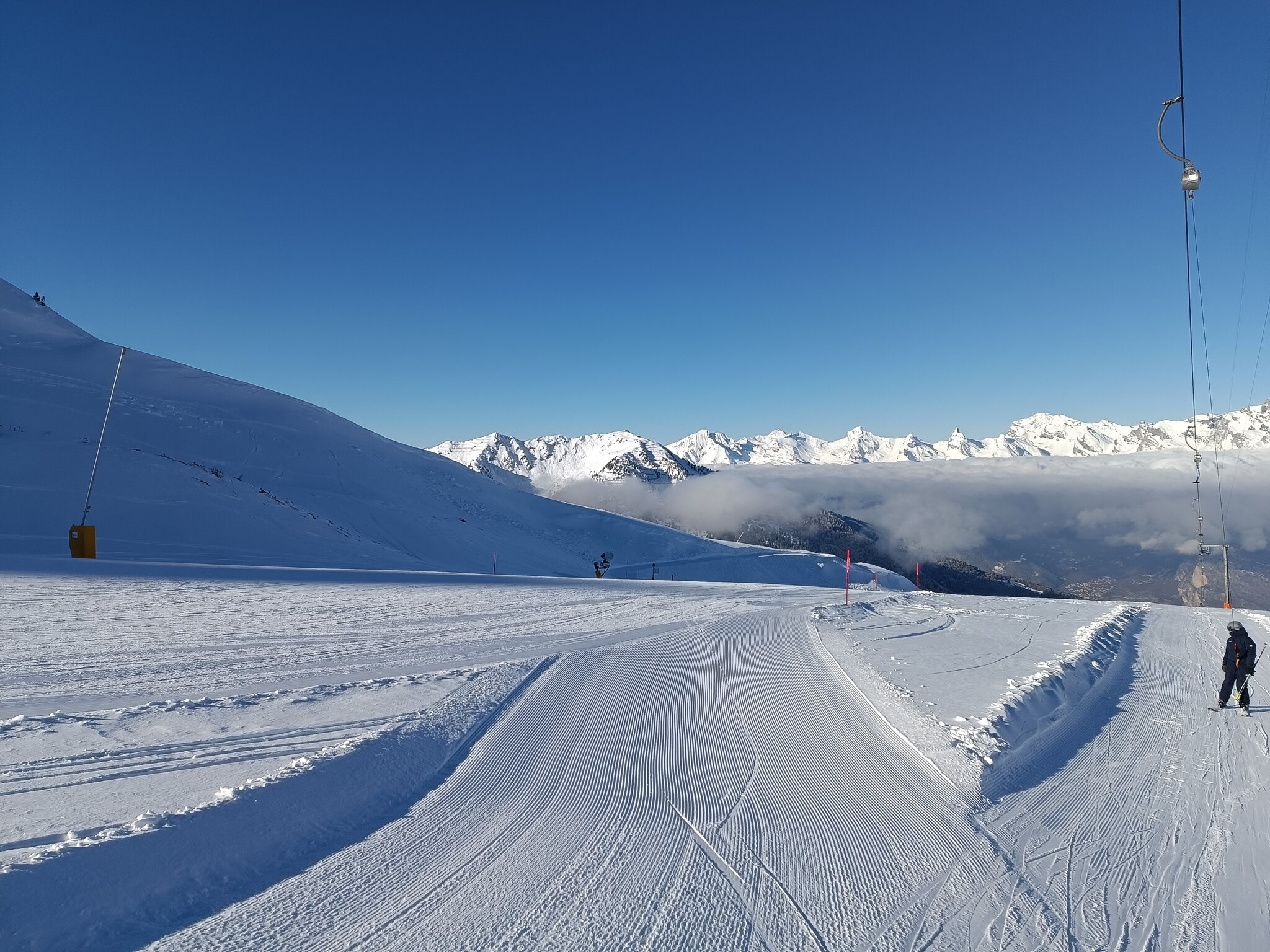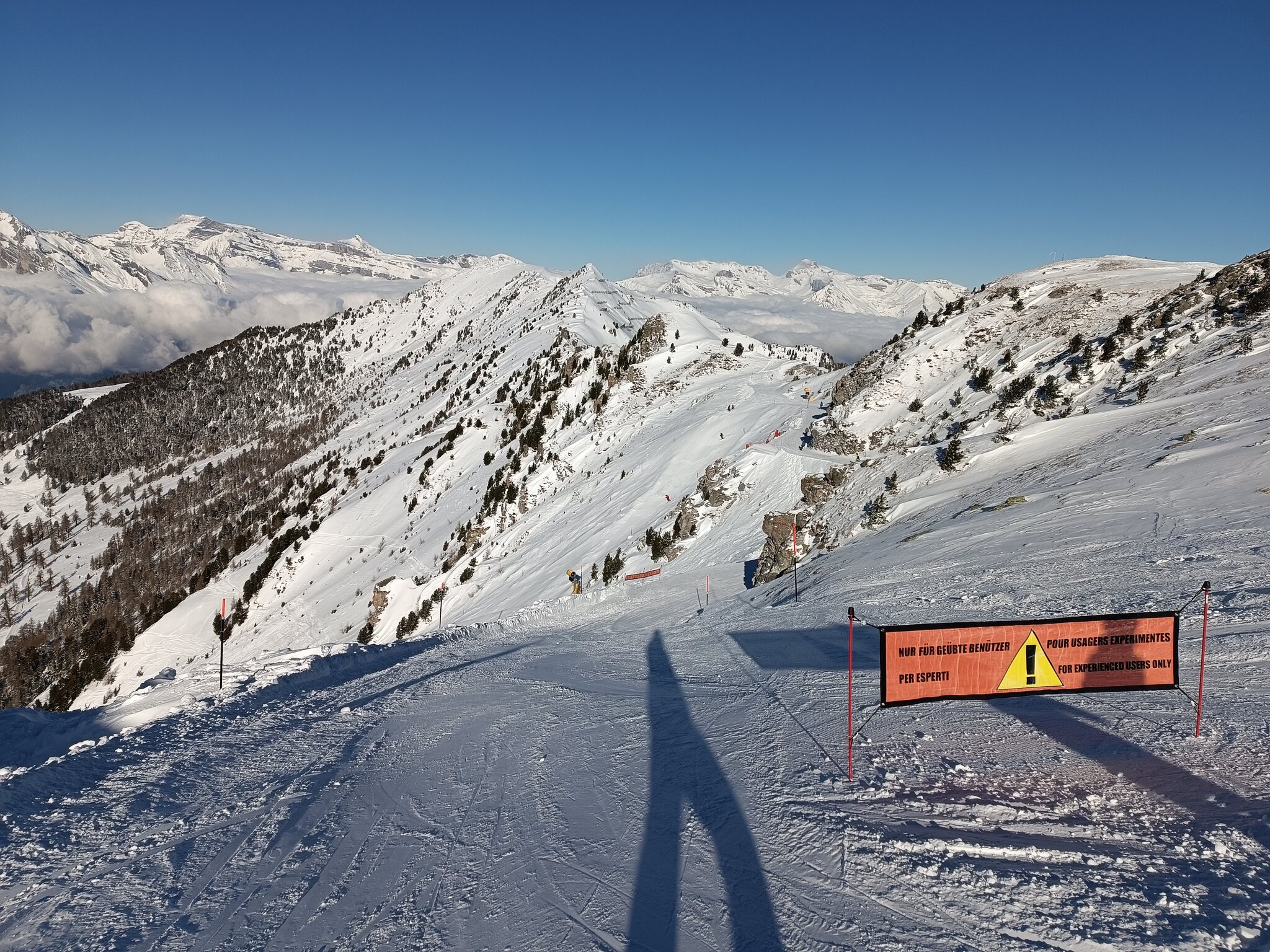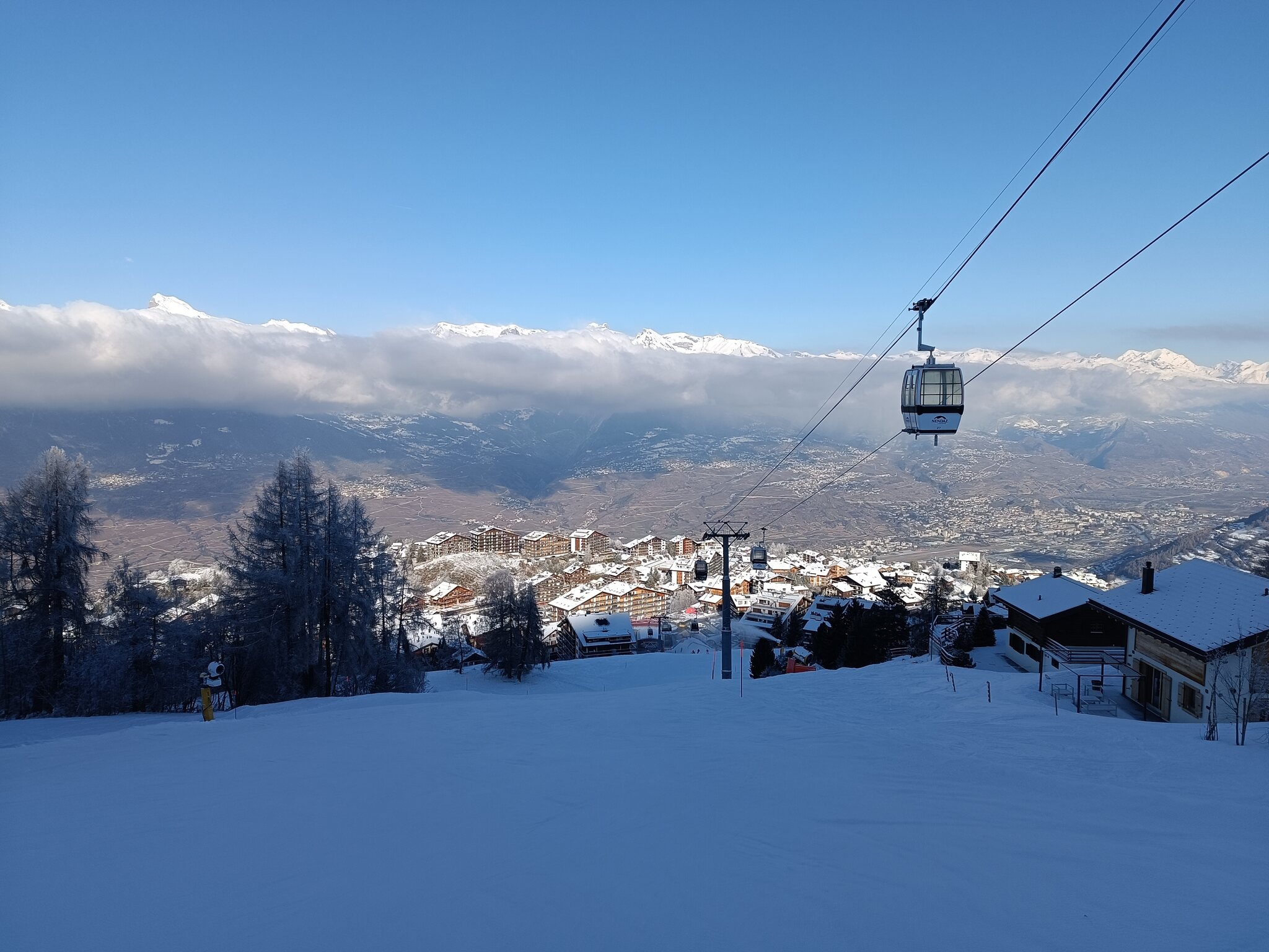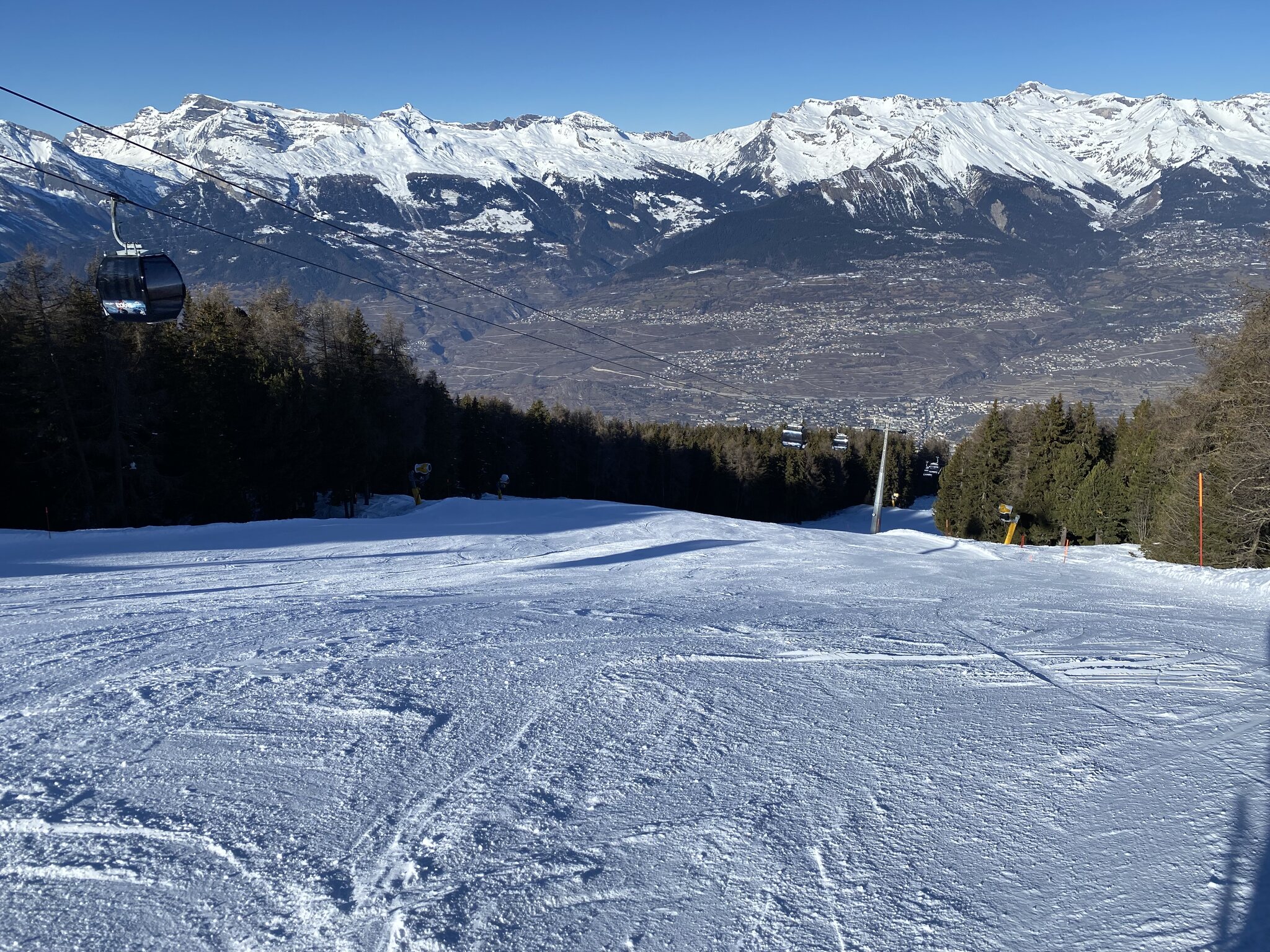 Mir kamen einige Autos entgegen als ich von Riddes hoch gefahren bin, was ich als positives Zeichen deutete, aber oben waren schon alle Parkplätze in der Nähe der TC belegt und ich habe am nächsten Parkplatz weiter oben parkiert (den Namen habe ich leider vergessen, er ist angebunden an den Skibus).