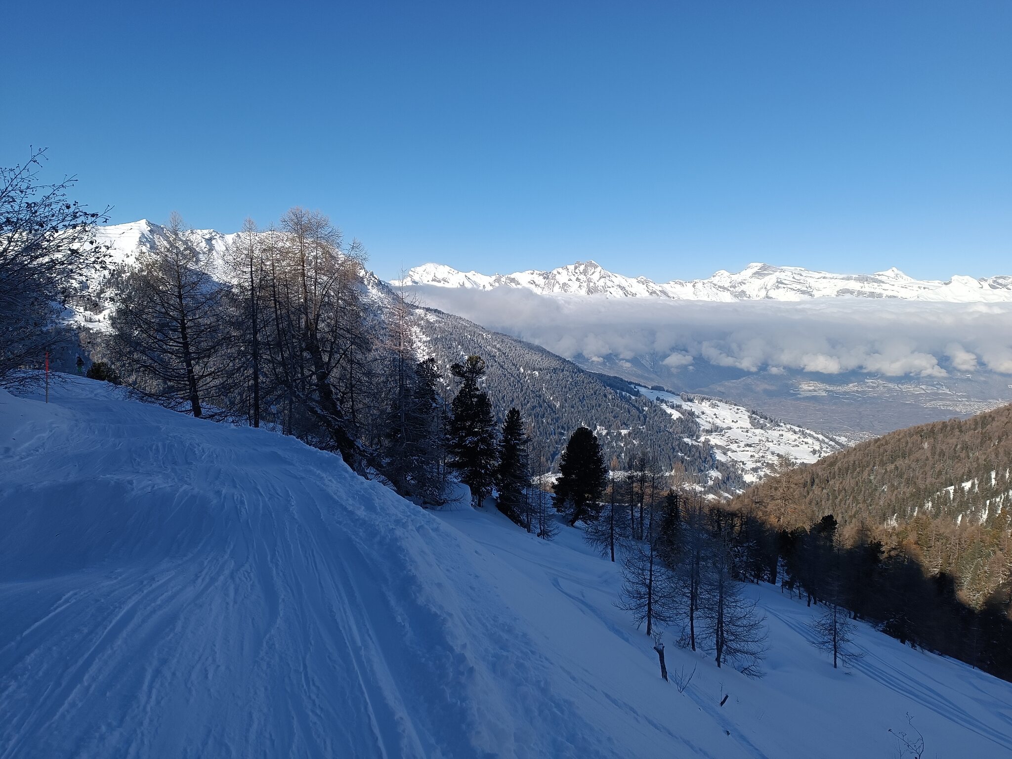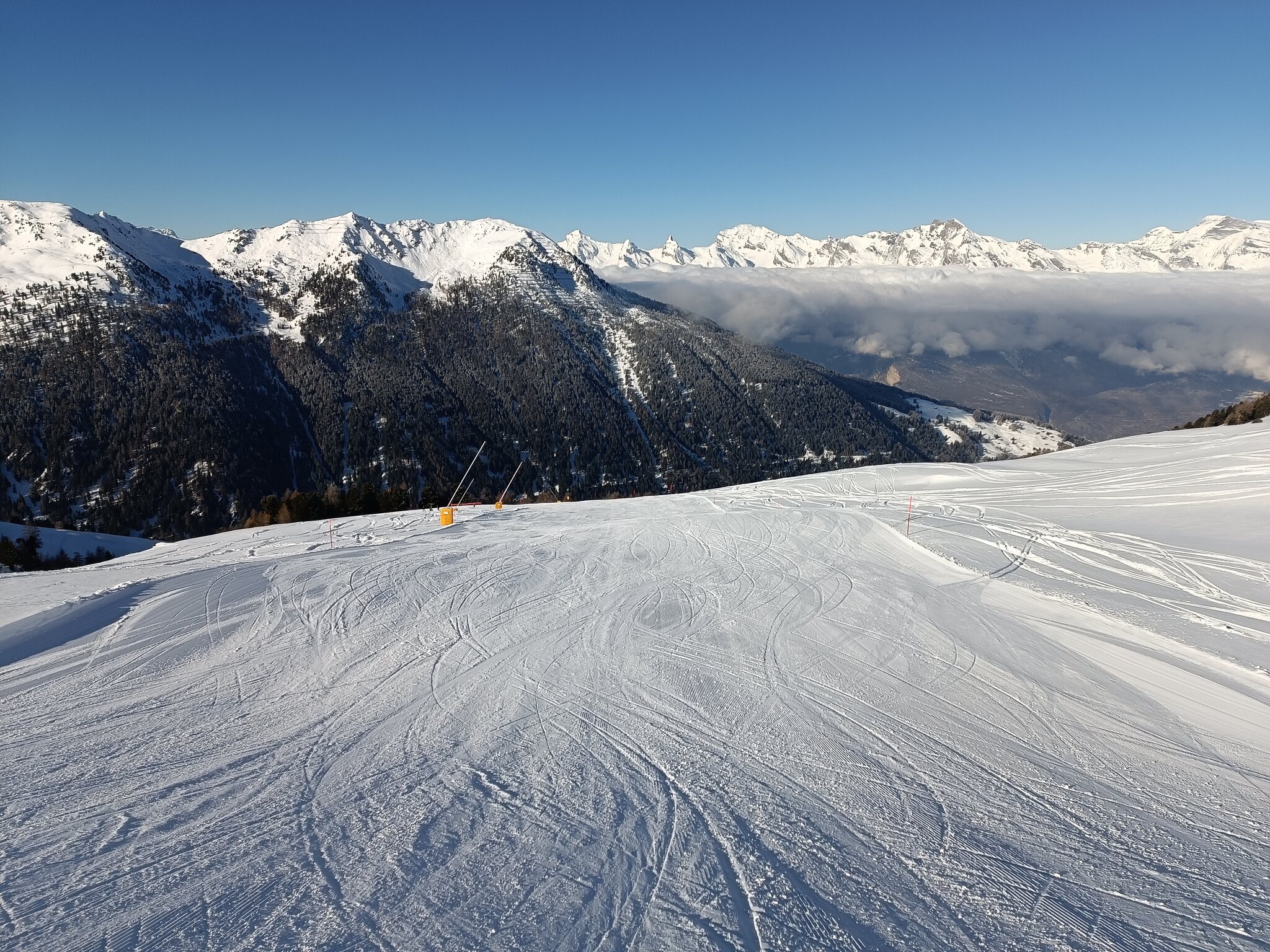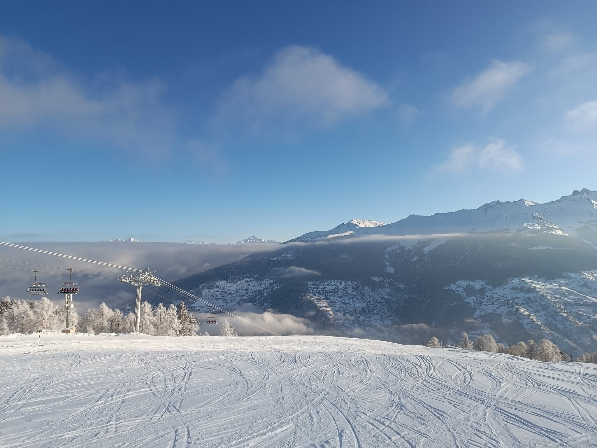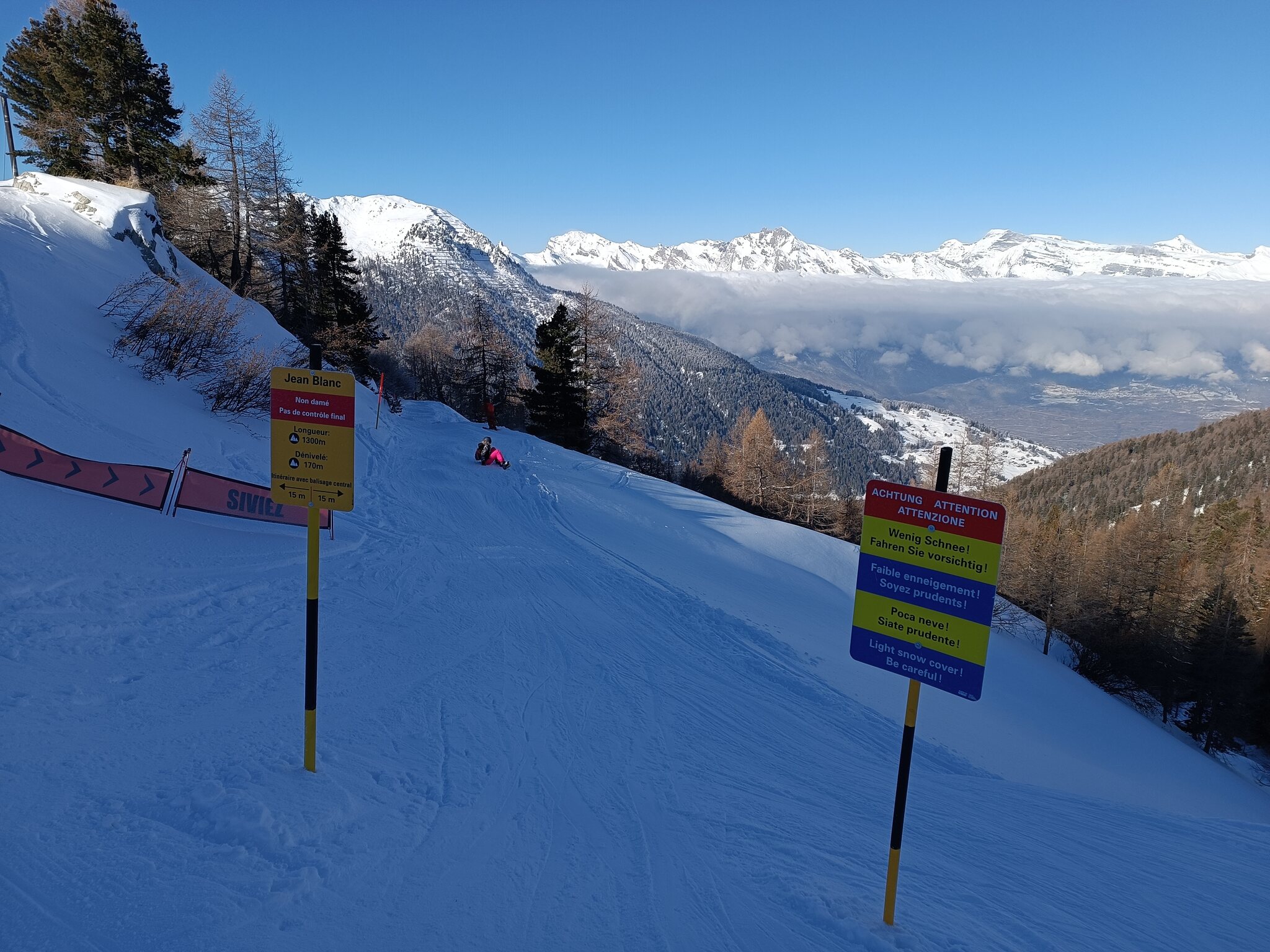 Mir kamen einige Autos entgegen als ich von Riddes hoch gefahren bin, was ich als positives Zeichen deutete, aber oben waren schon alle Parkplätze in der Nähe der TC belegt und ich habe am nächsten Parkplatz weiter oben parkiert (den Namen habe ich leider vergessen, er ist angebunden an den Skibus).