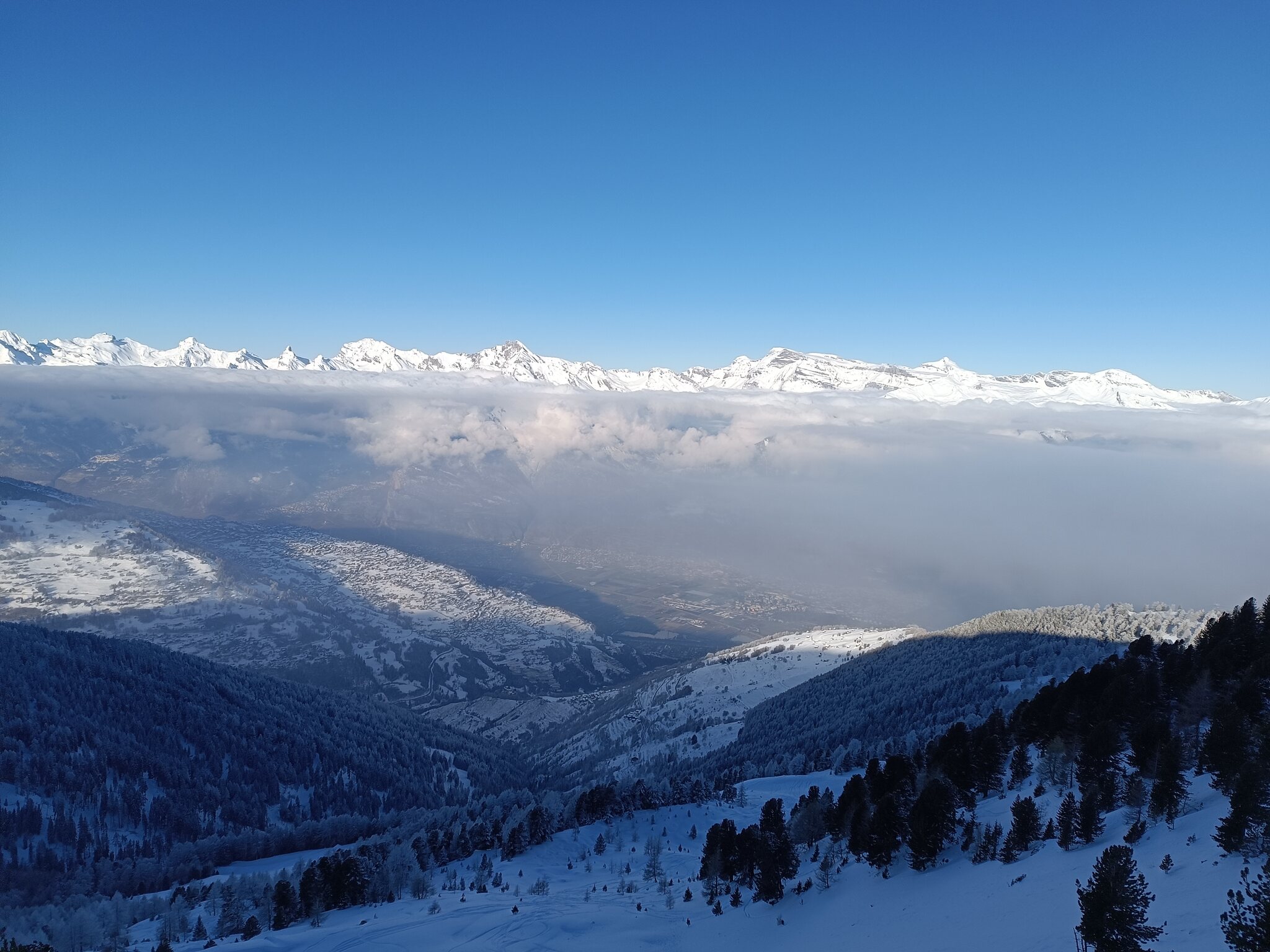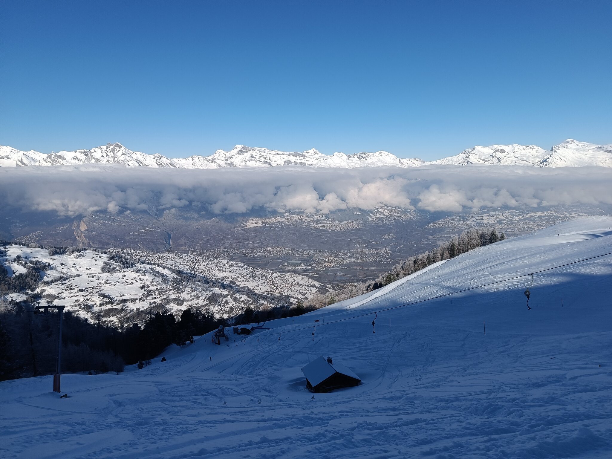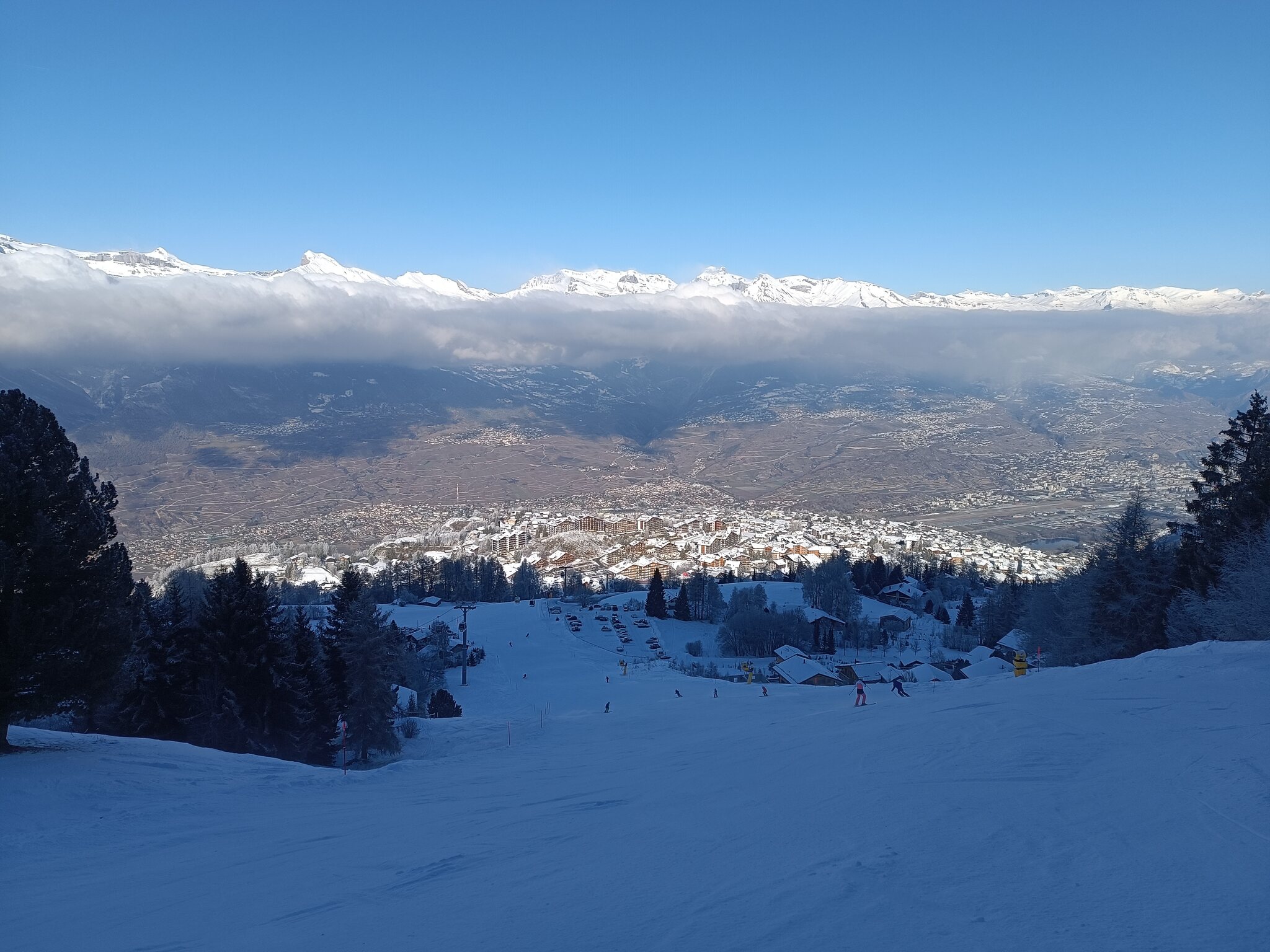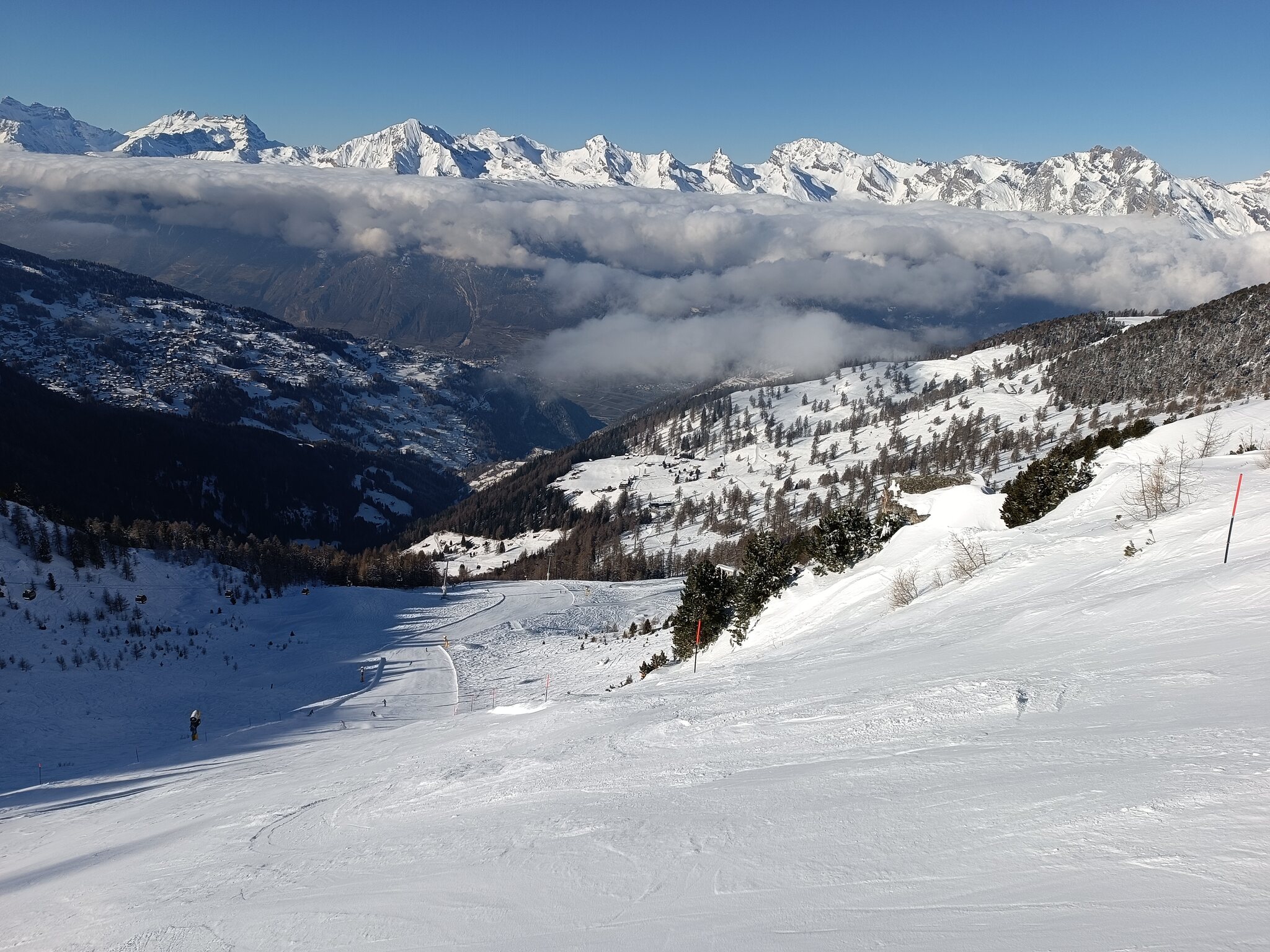 Mir kamen einige Autos entgegen als ich von Riddes hoch gefahren bin, was ich als positives Zeichen deutete, aber oben waren schon alle Parkplätze in der Nähe der TC belegt und ich habe am nächsten Parkplatz weiter oben parkiert (den Namen habe ich leider vergessen, er ist angebunden an den Skibus).