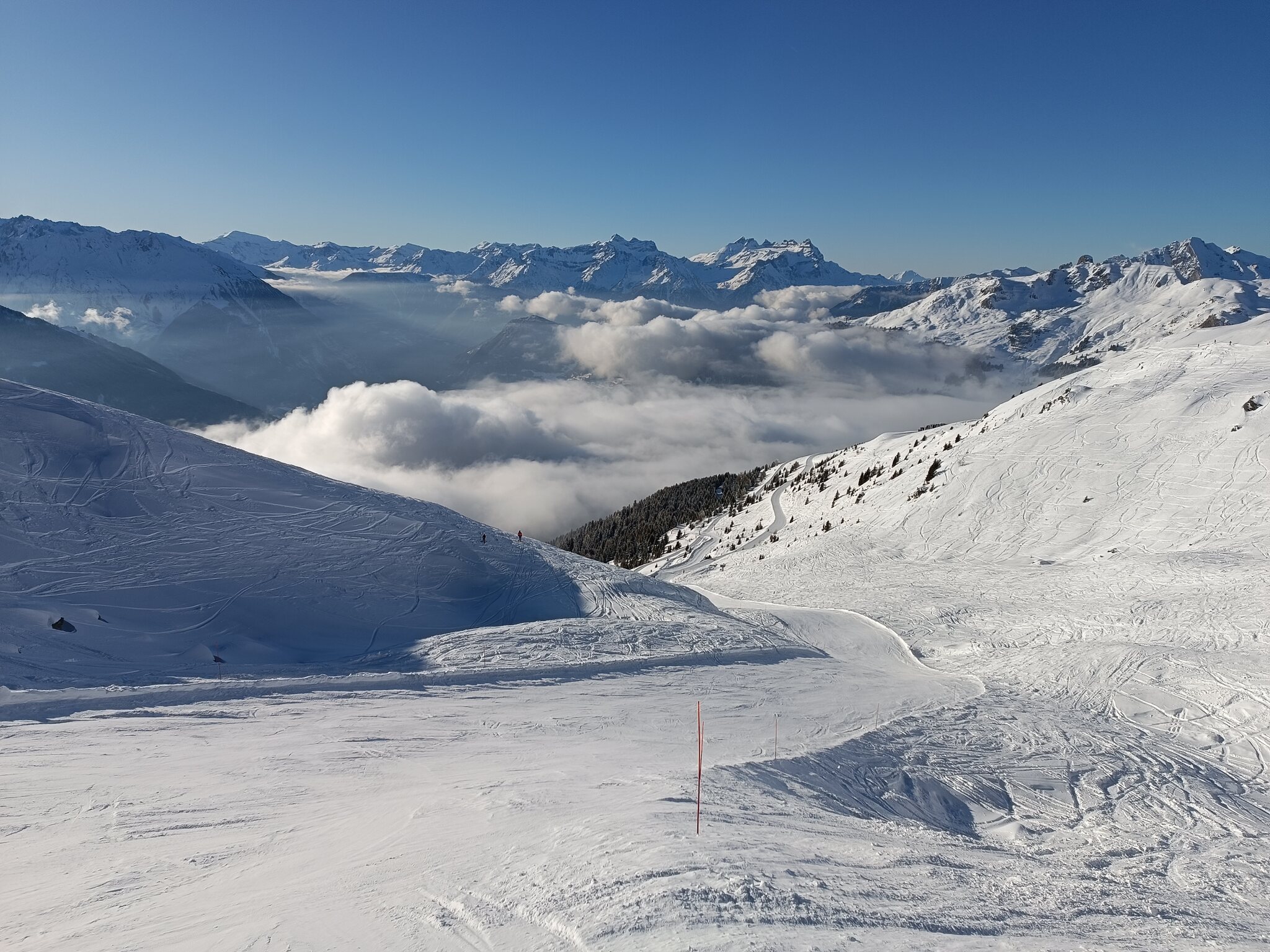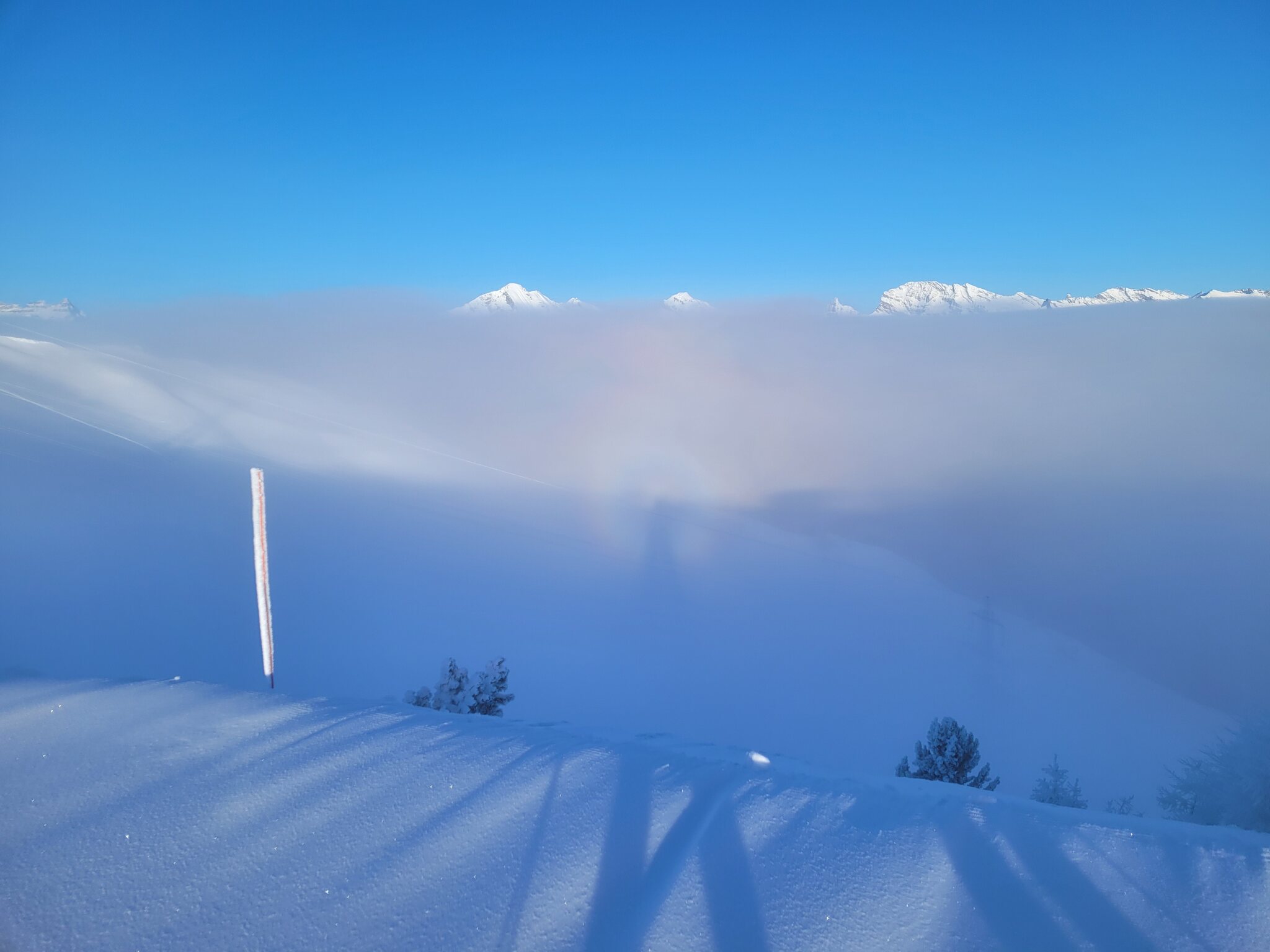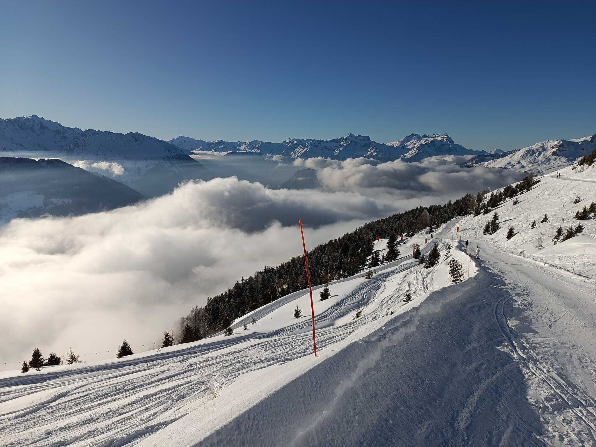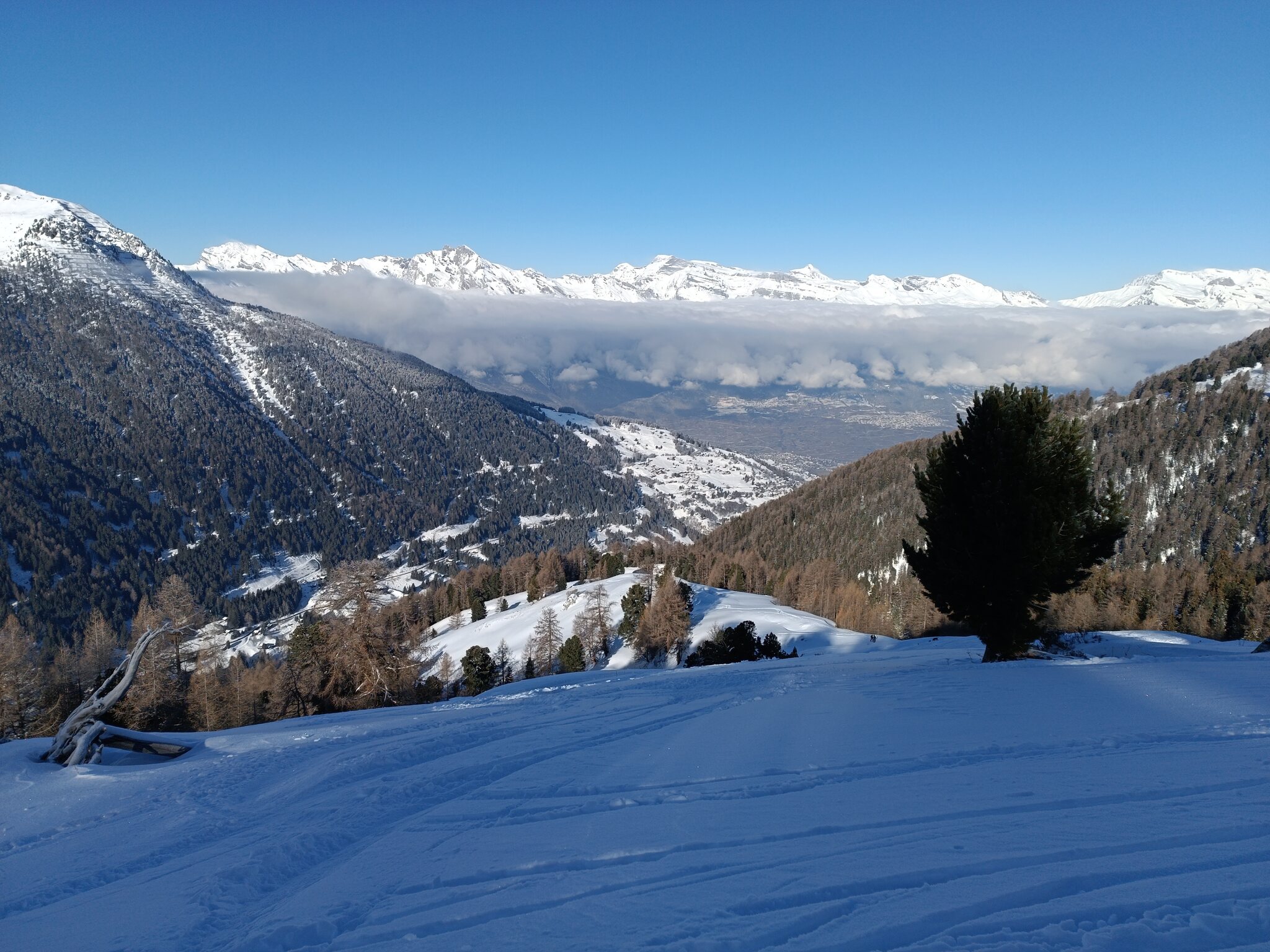 Mir kamen einige Autos entgegen als ich von Riddes hoch gefahren bin, was ich als positives Zeichen deutete, aber oben waren schon alle Parkplätze in der Nähe der TC belegt und ich habe am nächsten Parkplatz weiter oben parkiert (den Namen habe ich leider vergessen, er ist angebunden an den Skibus).