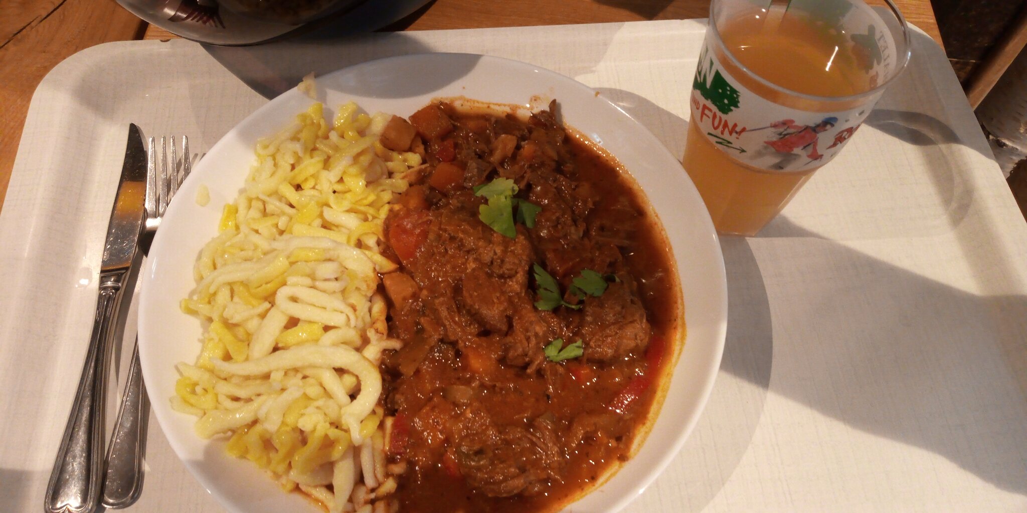 Und jetzt kommen wir zu dem, was der Höhepunkt dieser Expedition sein sollte: die Erforschung ob in dem als Wiener Schnitzel getarnten Produkt im Restaurant namens Hasenstall Fleisch drin ist. Ich kann diese Frage leider nicht beantworten.