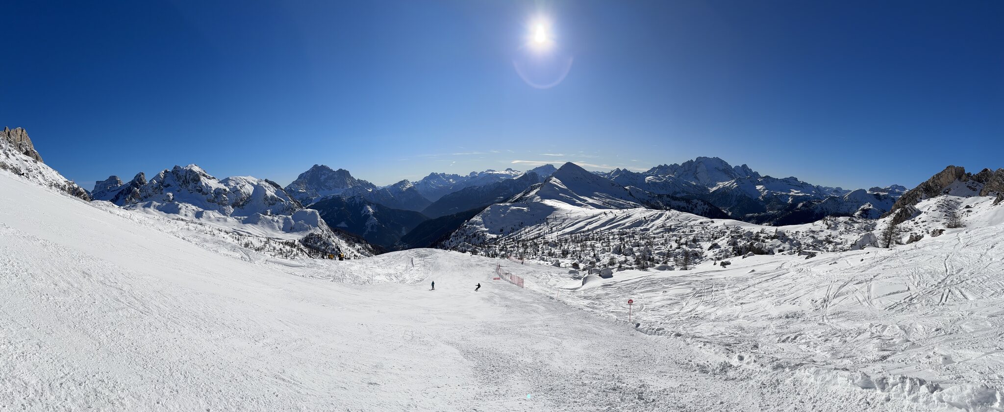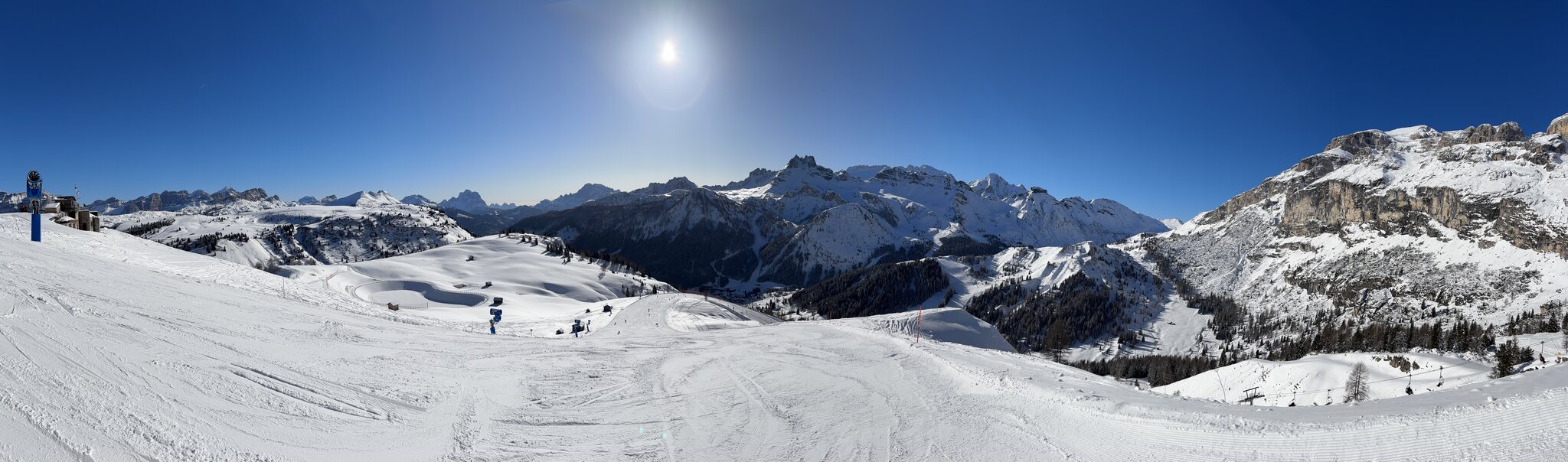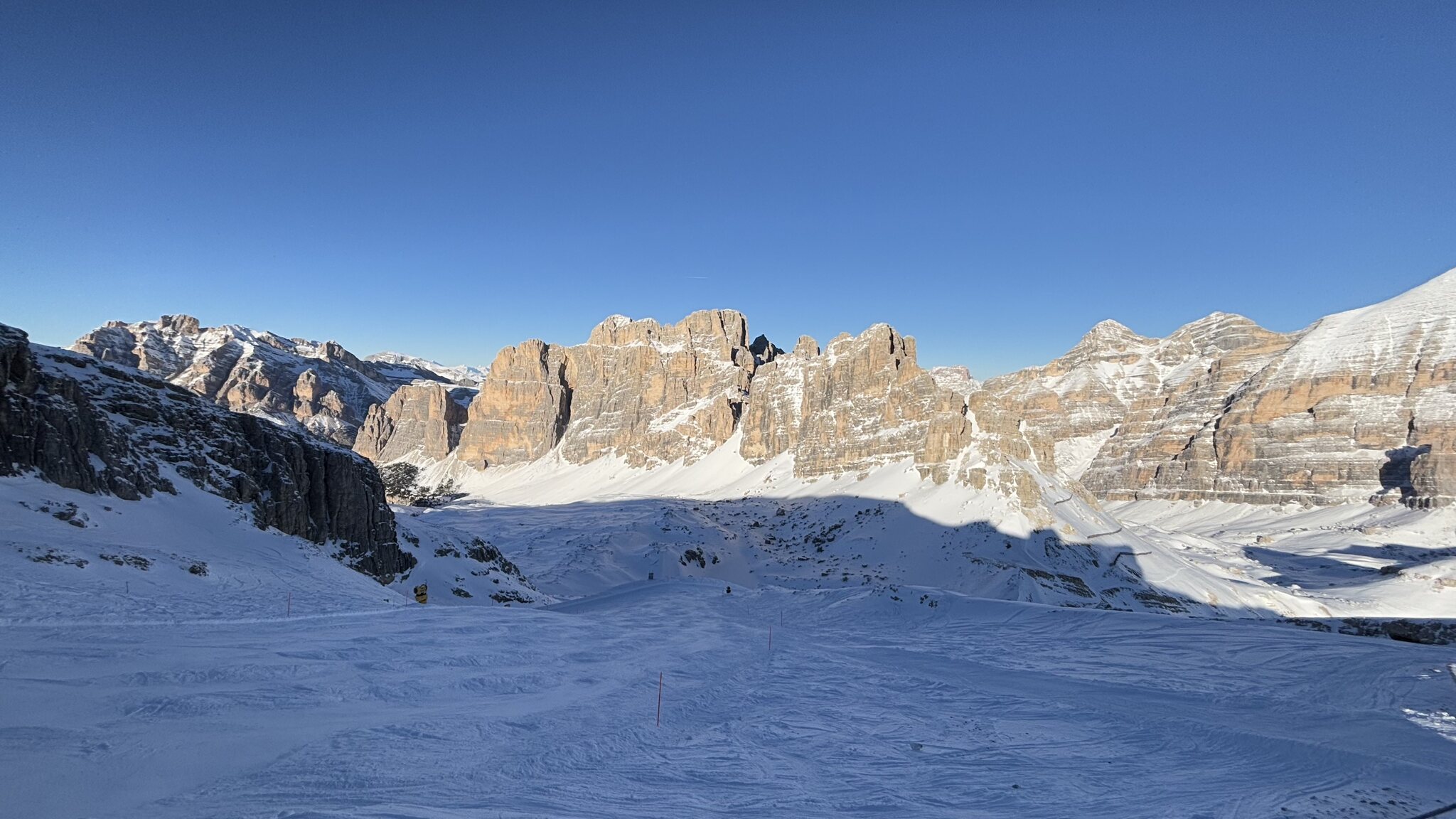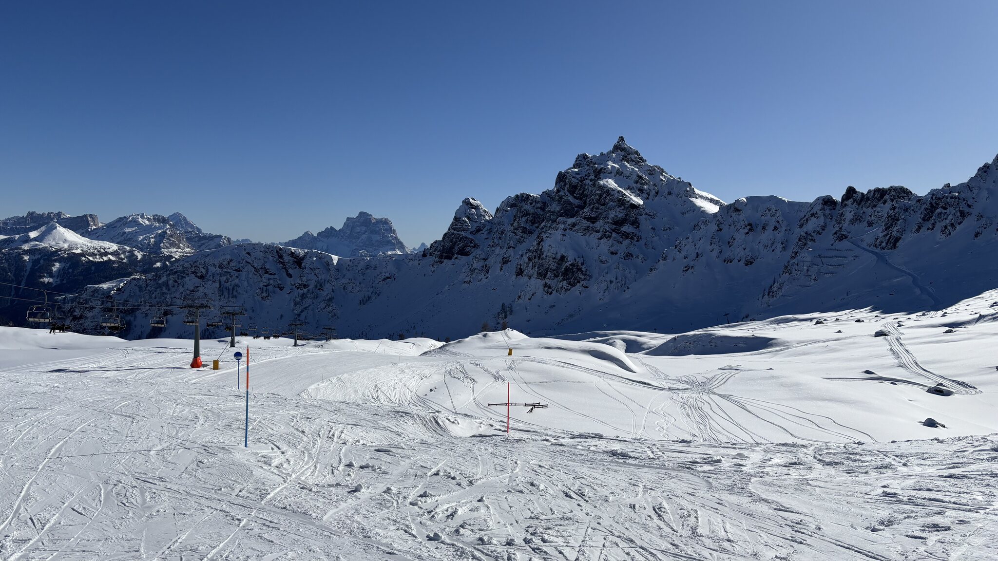 Derzeit eigentlich viel los auf den Hauptrouten für Jänner. In den letzten Tagen auch immer wieder Neuschnee auf den Pisten der schnell zerfahren war. Marmolada und Lagazuoi ver-/abgeblasen aber sogut wie steinfrei. Leider ist die Piste vom Lagazuoi Ri. 5 Torri noch zu, keine Ahnung warum, sieht eigentlich schon gut aus und geht sicher bald auf.