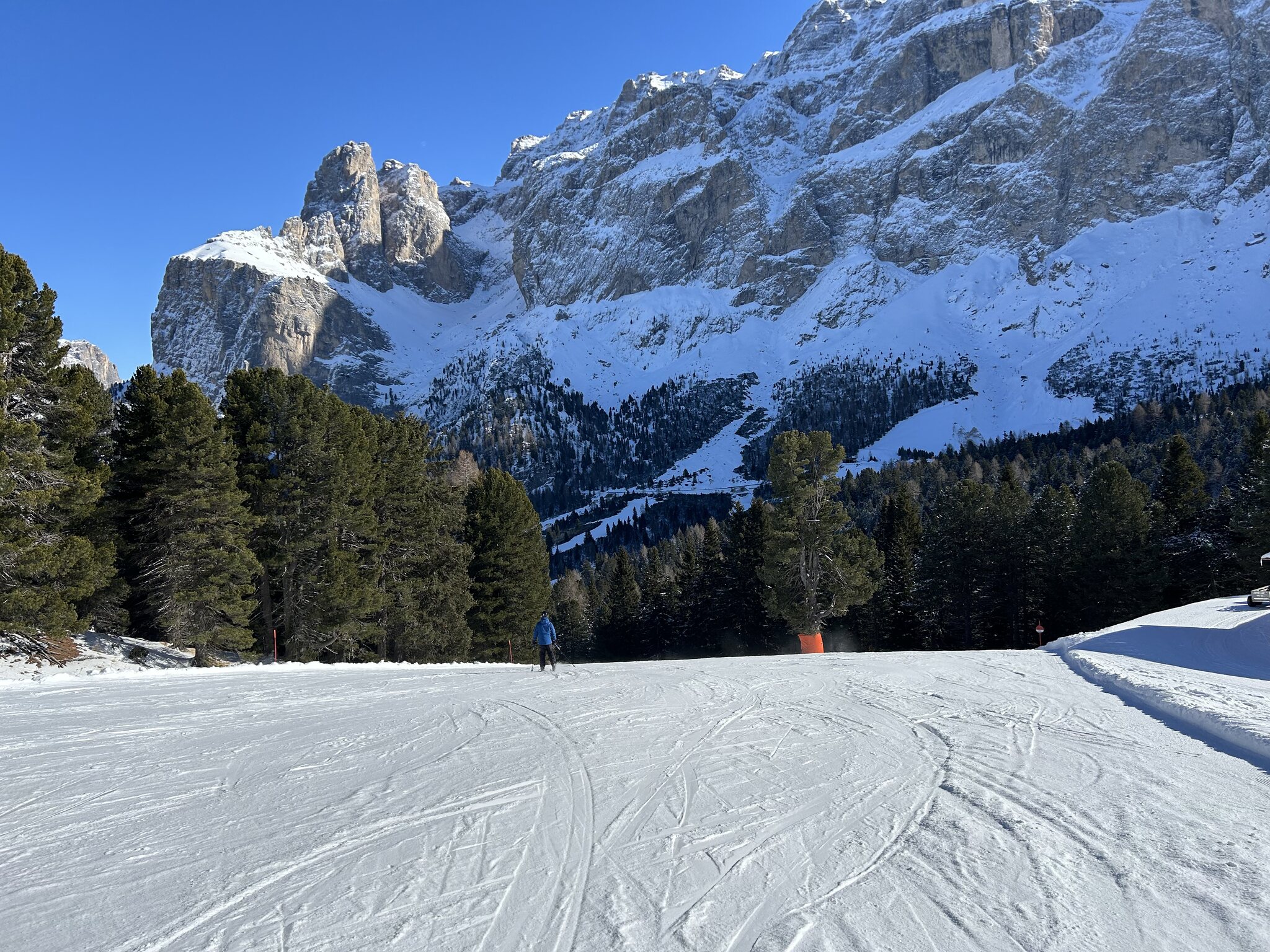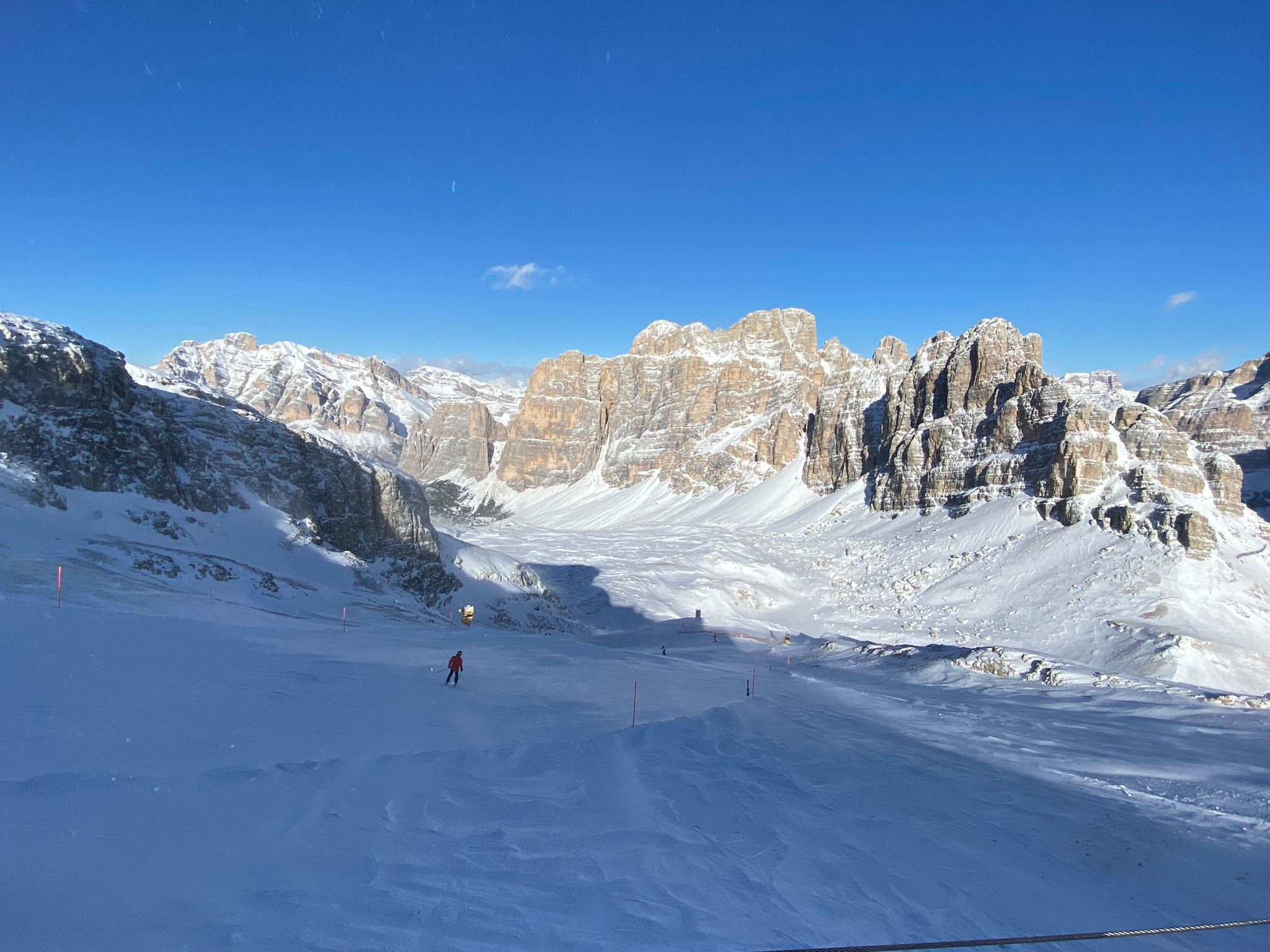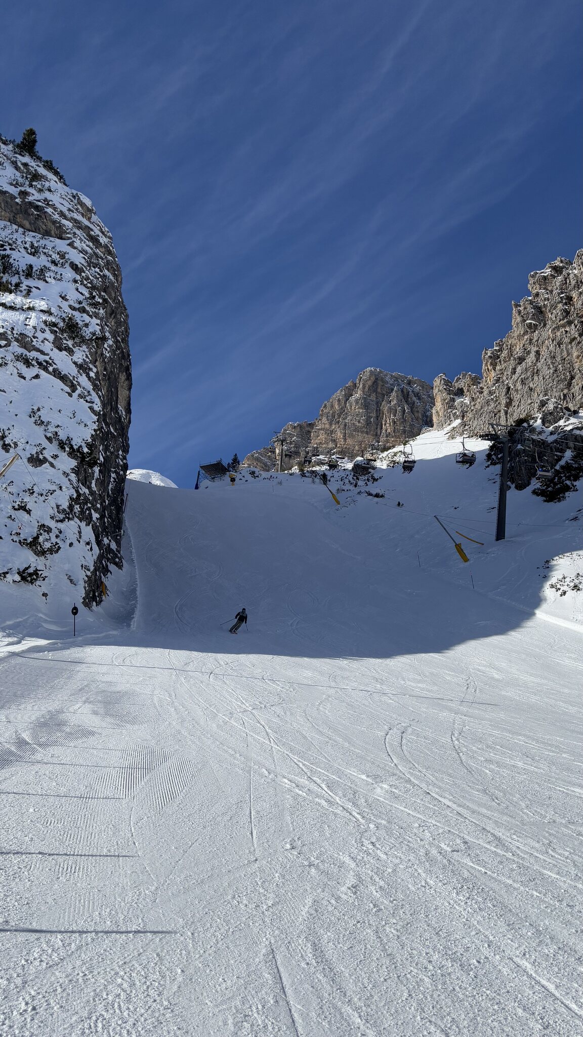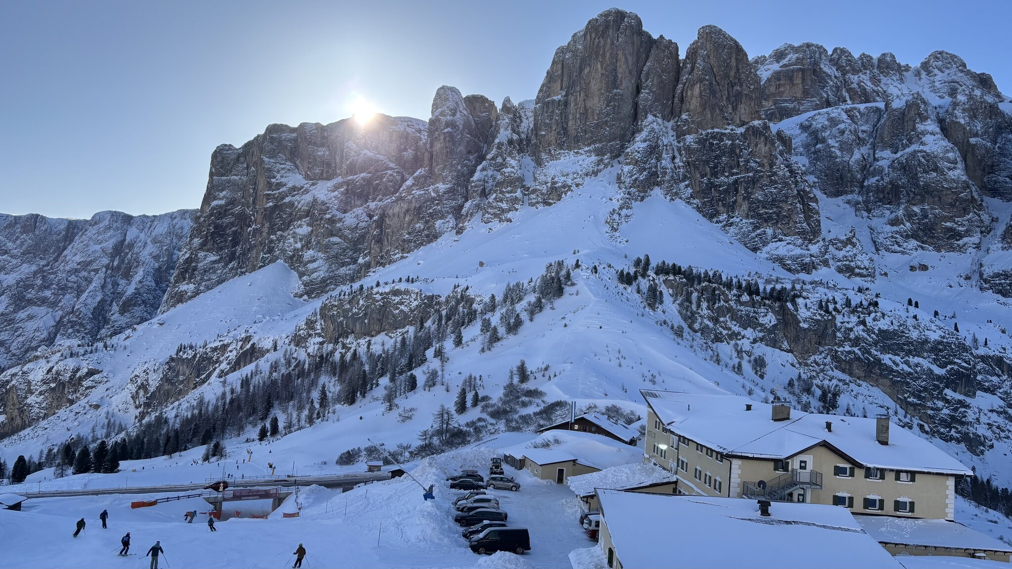 Derzeit eigentlich viel los auf den Hauptrouten für Jänner. In den letzten Tagen auch immer wieder Neuschnee auf den Pisten der schnell zerfahren war. Marmolada und Lagazuoi ver-/abgeblasen aber sogut wie steinfrei. Leider ist die Piste vom Lagazuoi Ri. 5 Torri noch zu, keine Ahnung warum, sieht eigentlich schon gut aus und geht sicher bald auf.