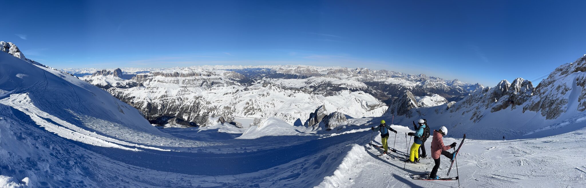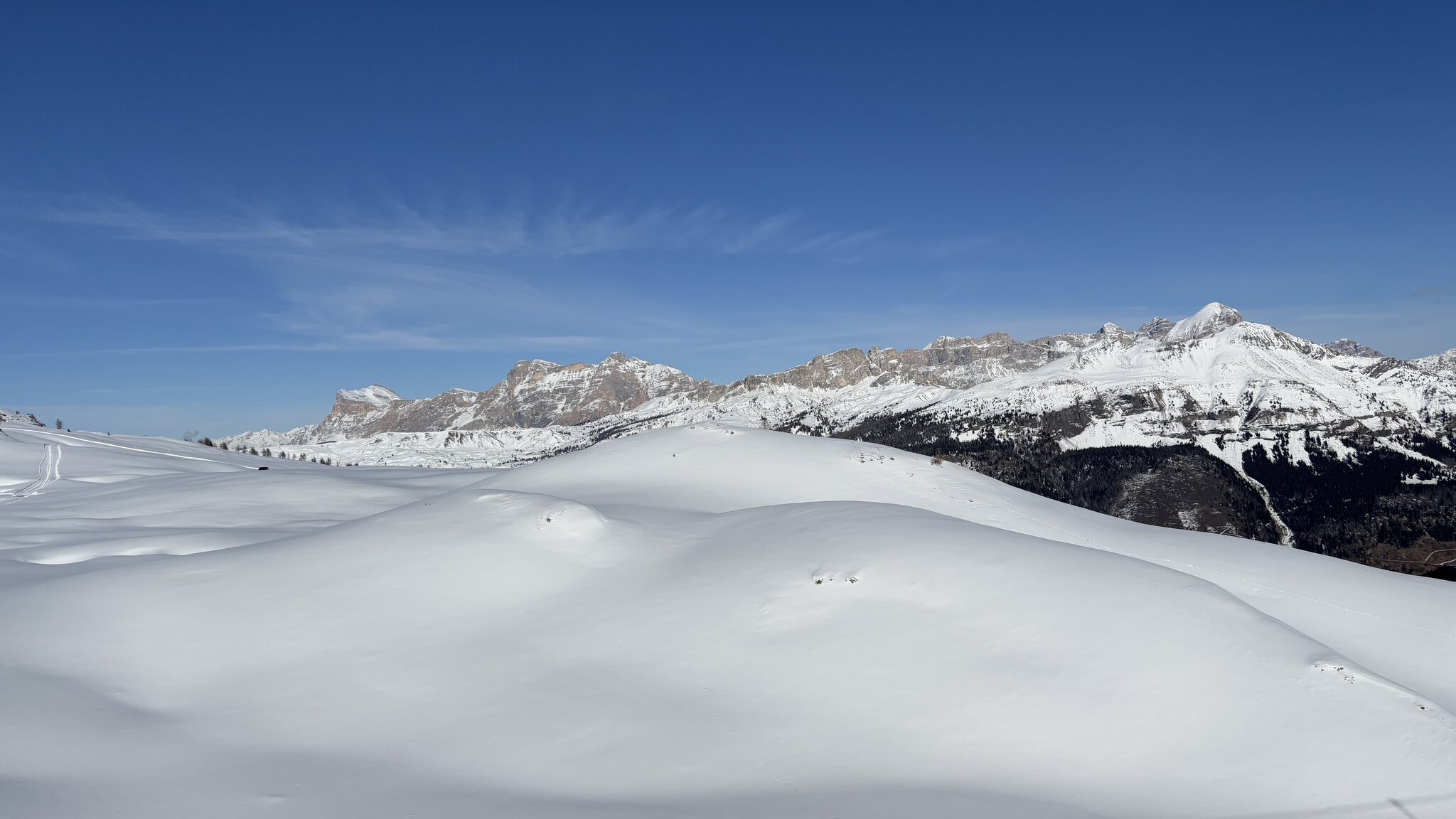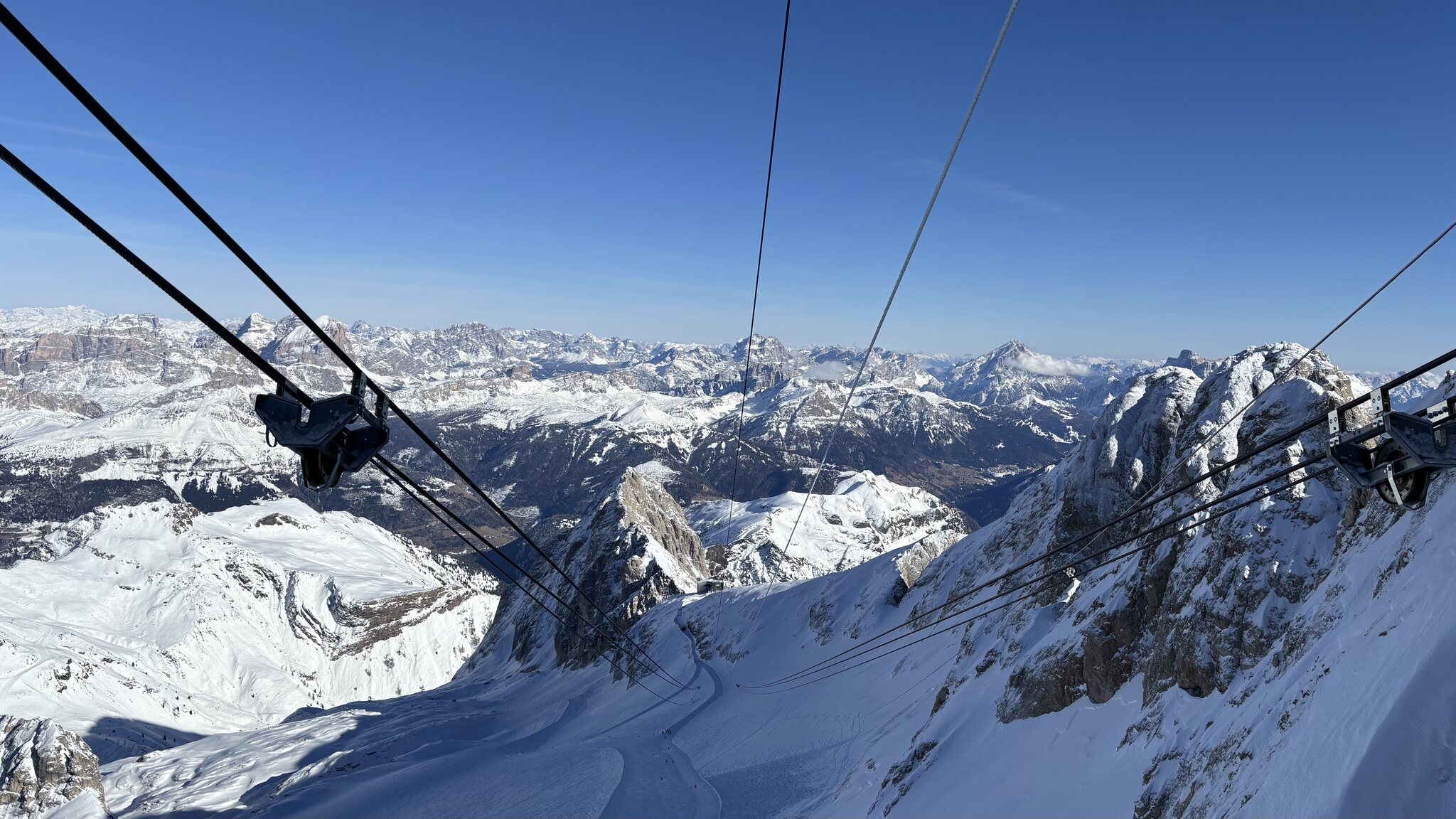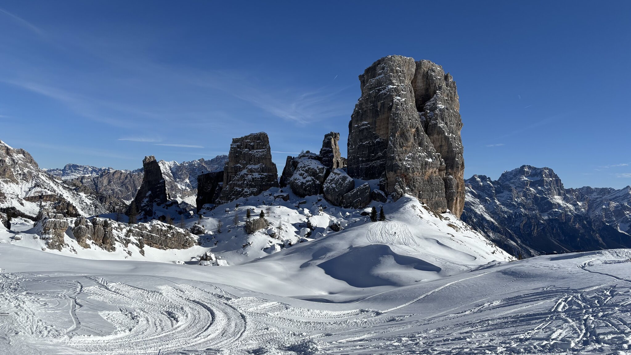 Derzeit eigentlich viel los auf den Hauptrouten für Jänner. In den letzten Tagen auch immer wieder Neuschnee auf den Pisten der schnell zerfahren war. Marmolada und Lagazuoi ver-/abgeblasen aber sogut wie steinfrei. Leider ist die Piste vom Lagazuoi Ri. 5 Torri noch zu, keine Ahnung warum, sieht eigentlich schon gut aus und geht sicher bald auf.