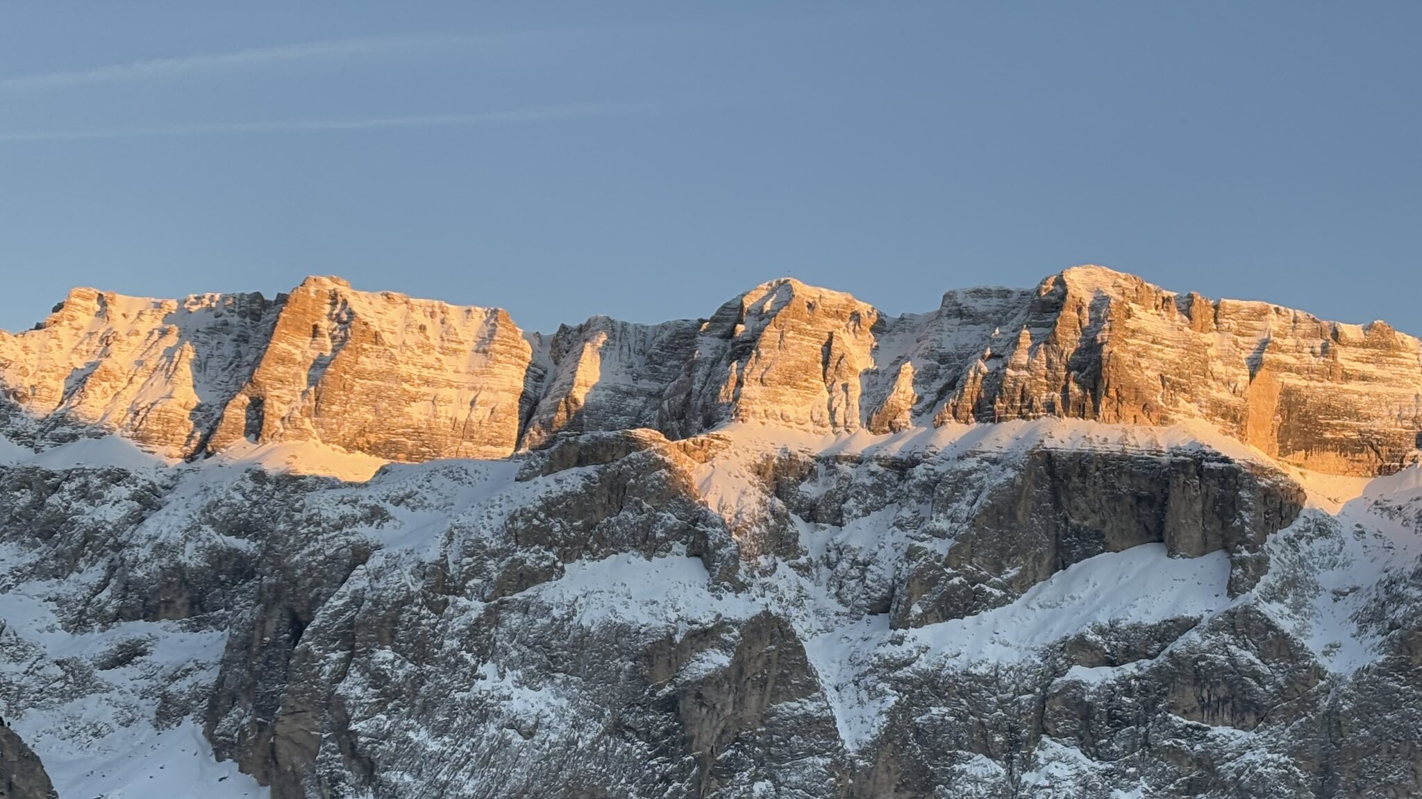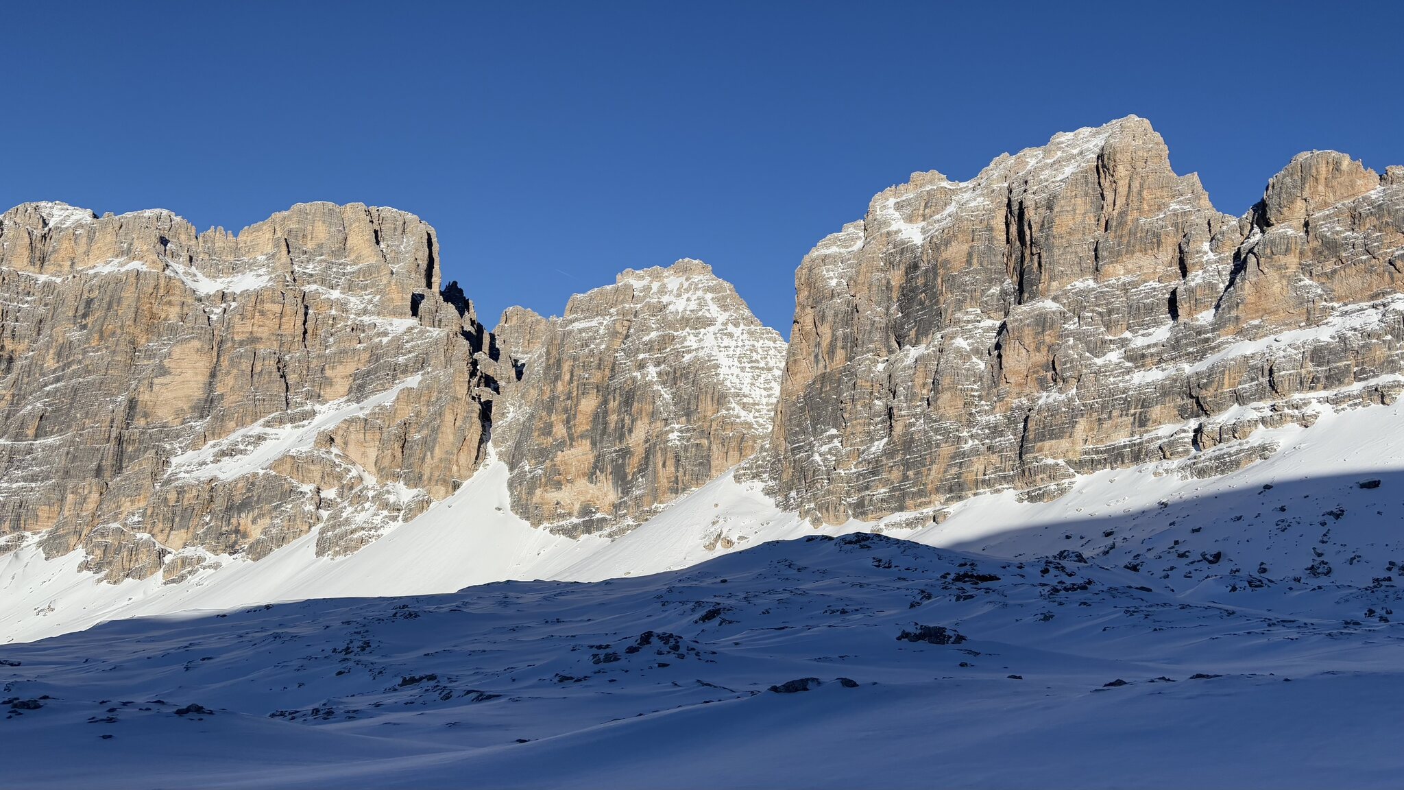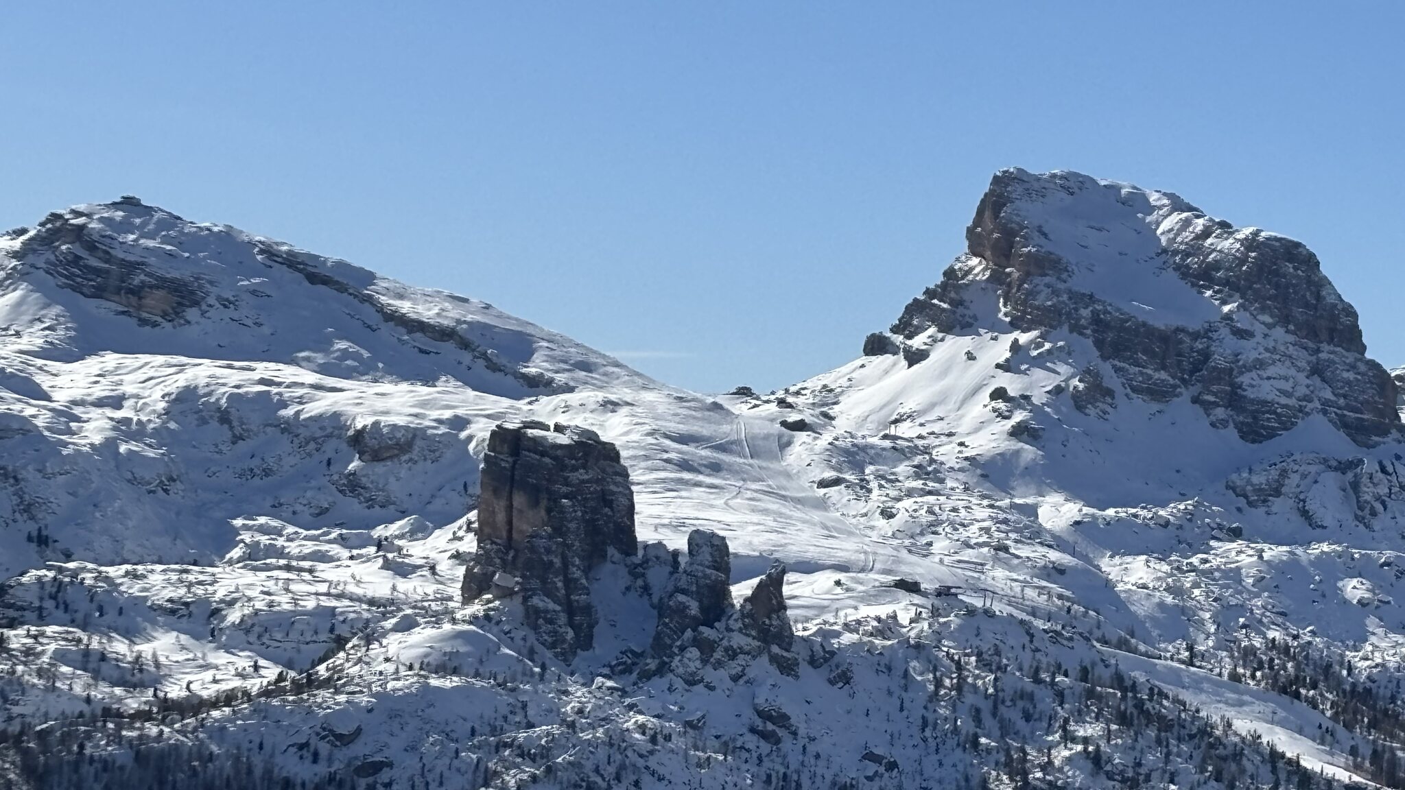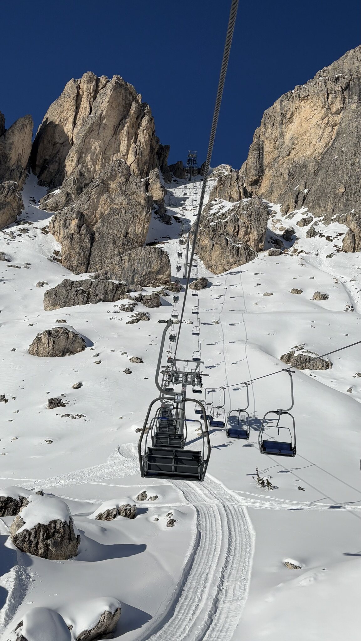 Derzeit eigentlich viel los auf den Hauptrouten für Jänner. In den letzten Tagen auch immer wieder Neuschnee auf den Pisten der schnell zerfahren war. Marmolada und Lagazuoi ver-/abgeblasen aber sogut wie steinfrei. Leider ist die Piste vom Lagazuoi Ri. 5 Torri noch zu, keine Ahnung warum, sieht eigentlich schon gut aus und geht sicher bald auf.
