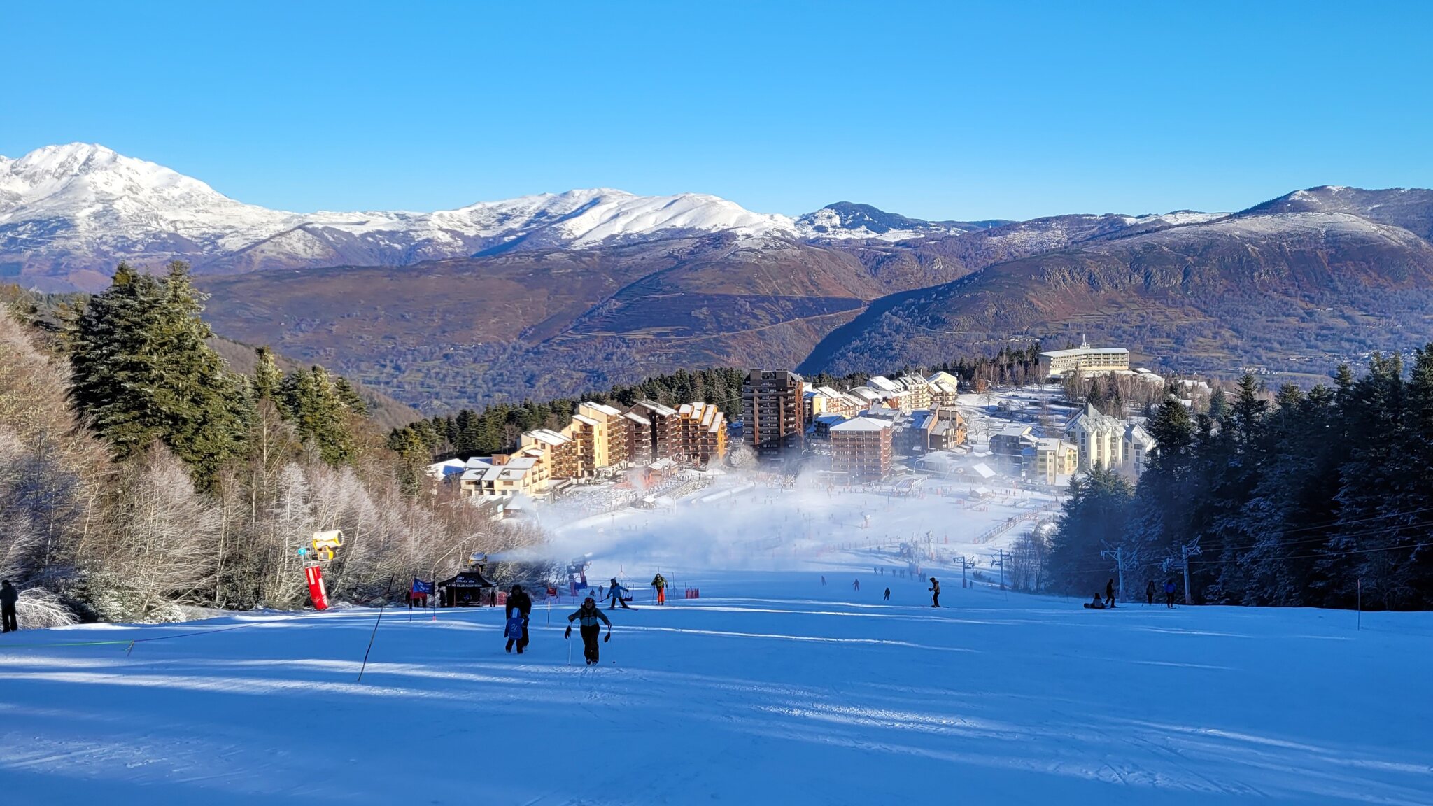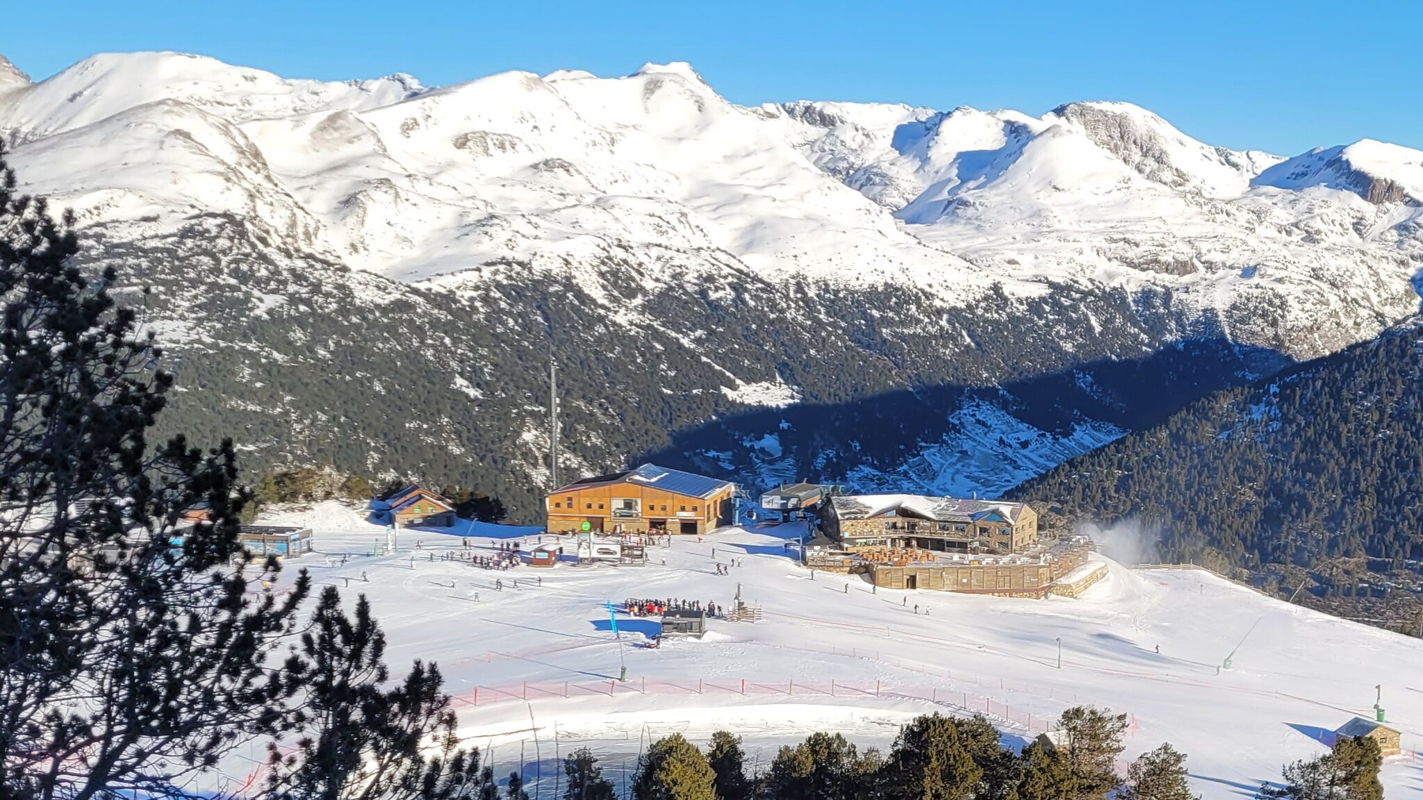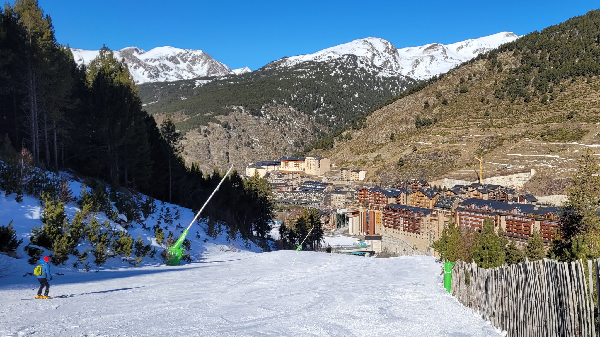 Die Bergstation: Die Talstation unten ist direkt im Ortszentrum integriert: Der Ort unten ist auch schöner als die Station oben. Danach ging es weiter nach Andorra, die Strasse nach Pas de la Casa war diesmal unproblematisch. Gestern war aber sicher wieder Chaos. Der Port d'Envalira war komplett geräumt, mit -9°C war es recht frisch. Morgen geht es weiter in Grandvalira mit Ski-in/Ski-out in Soldeu.