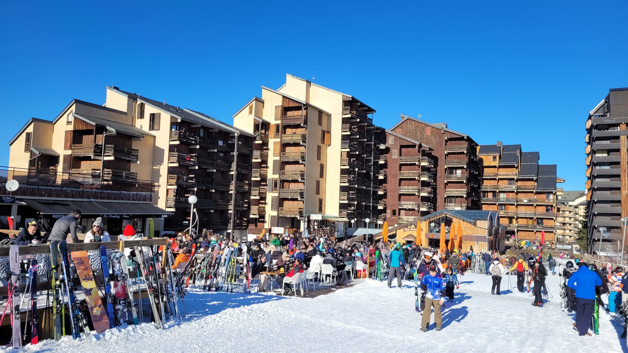 15h bin ich dann zum Après Ski mit einem Gâteau Basque übergegangen. An den Bettenburgen gibt's eine Reihe an Restaurants.
