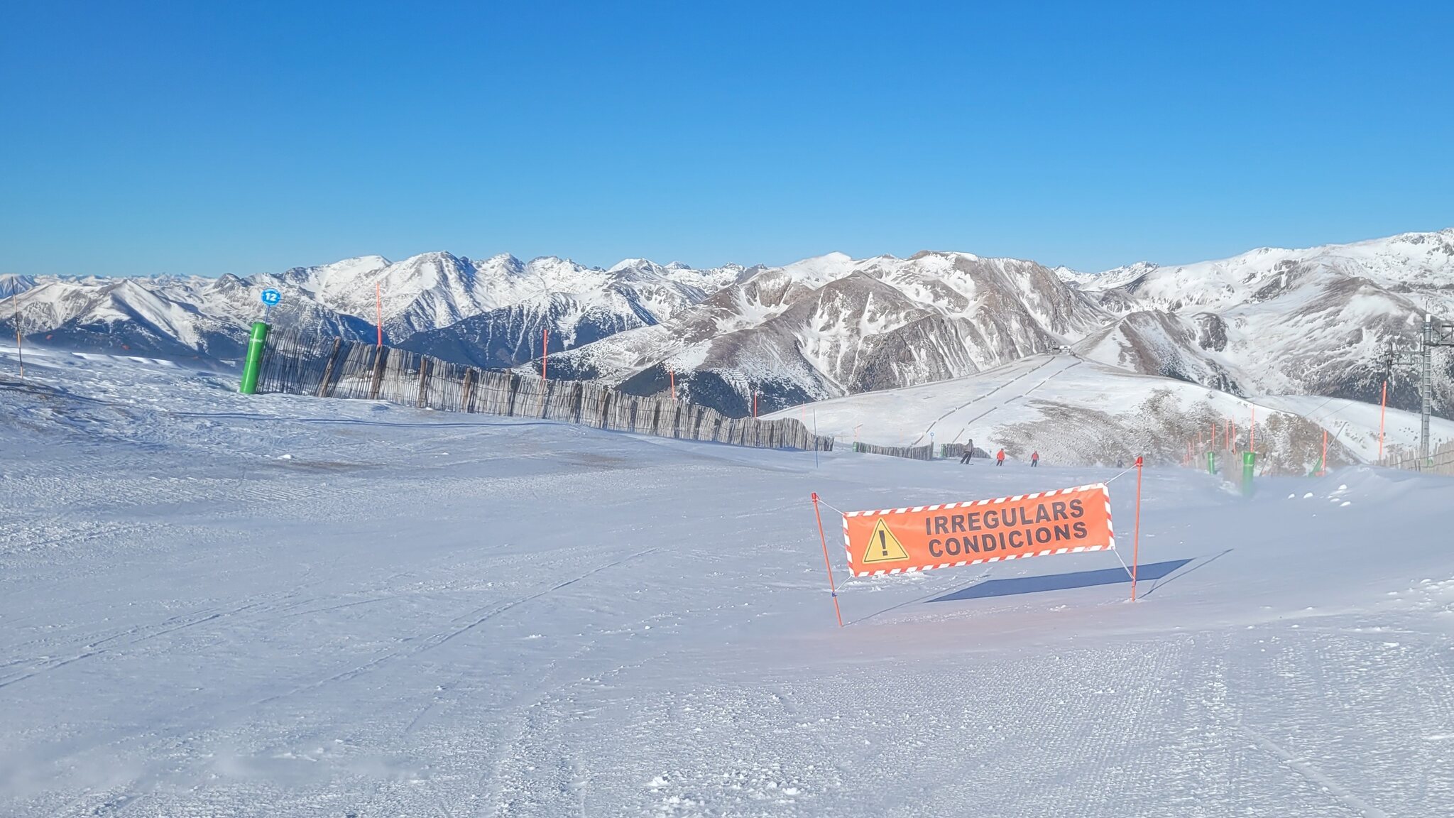 Inzwischen habe ich die französische Art der Pistenmarkierung verstanden, die auch in Andorra verwendet wird. Die Nummern repräsentieren die noch zurückzulegende Distanz in 100m, d.h. die 28 hier repräsentiert 2800m Pistenlänge. Ist eigentlich noch clever, da man sich damit auf der Piste gut lokaliseren kann.
