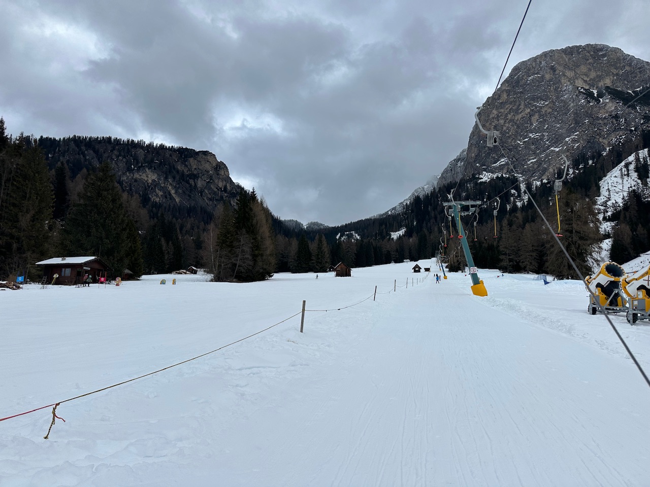 Am Skilift Pichl in Gsies ist es merklich voller, so dass man am Lift schon teilweise einige Minuten anstehen muss. Auch hier ist der Großteil der Leute aufgrund eines Rennen vor Ort. Es gibt dort zwei Pisten, eine schwarze und eine blaue.