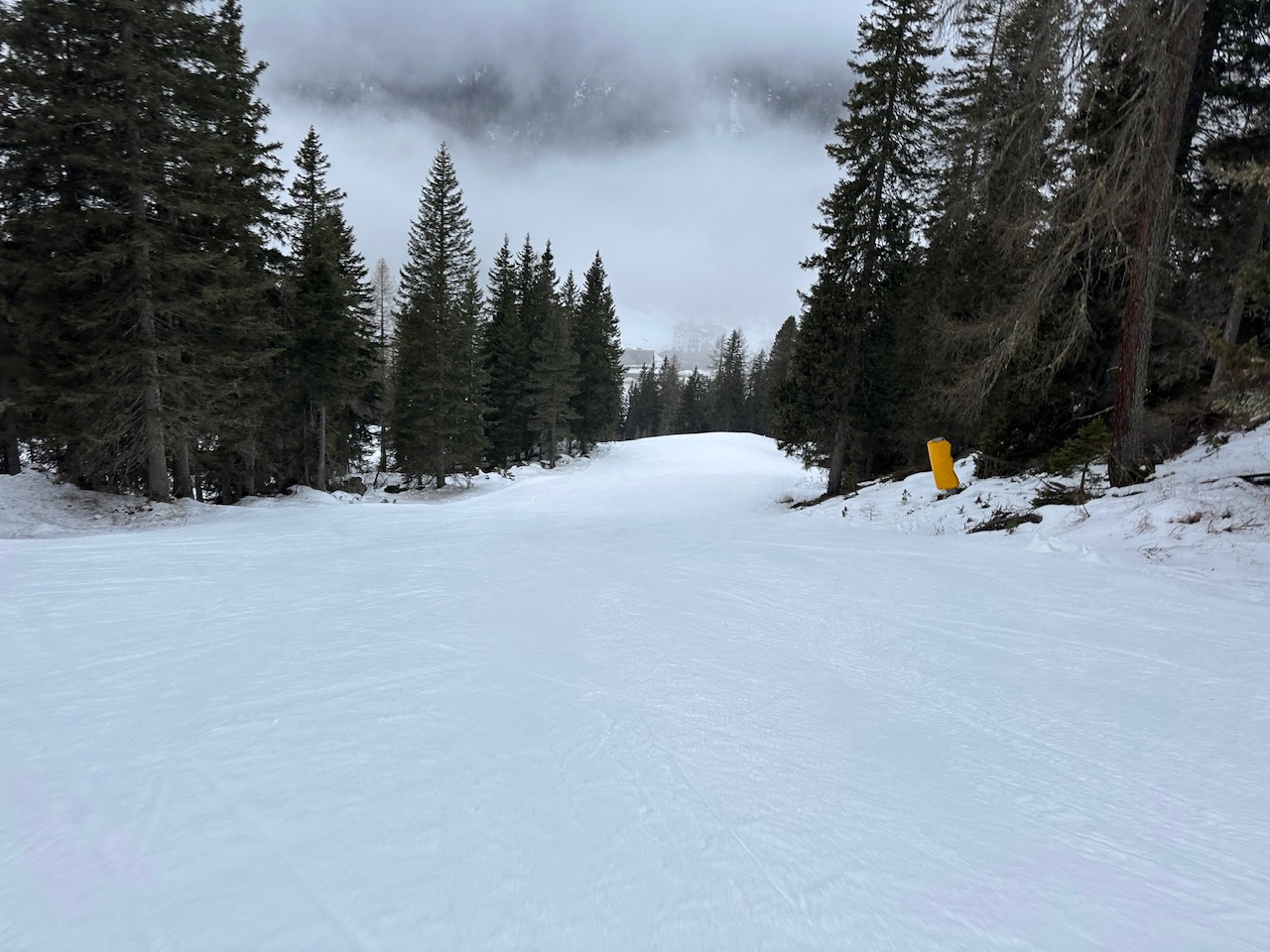 Im oberen Teil gab es Neuschnee auf der Piste. Weiter unten kam der Niederschlag leider in Form von Regen.