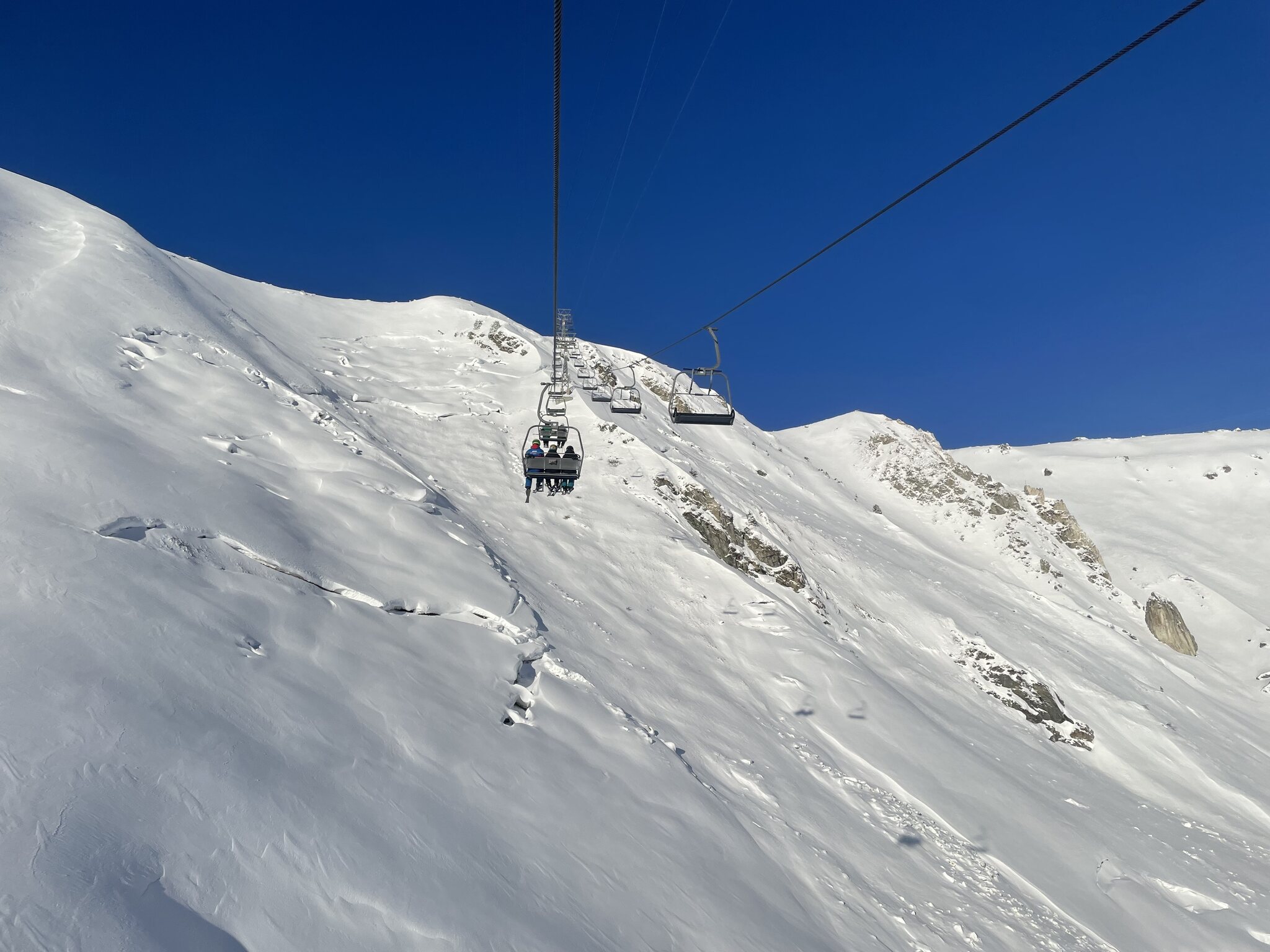 Dann pendeln wir uns durch das Skigebiet, fahren enttäuscht den Pez Ault Lift, der nur bis zur Hälfte unterhalb vom Steilhang geht, und sind gleiermaßen vom Engagement der Bergbahnen, diesen Lift irgendwie zu öffnen, beeindruckt. Dann die Talabfahrt: