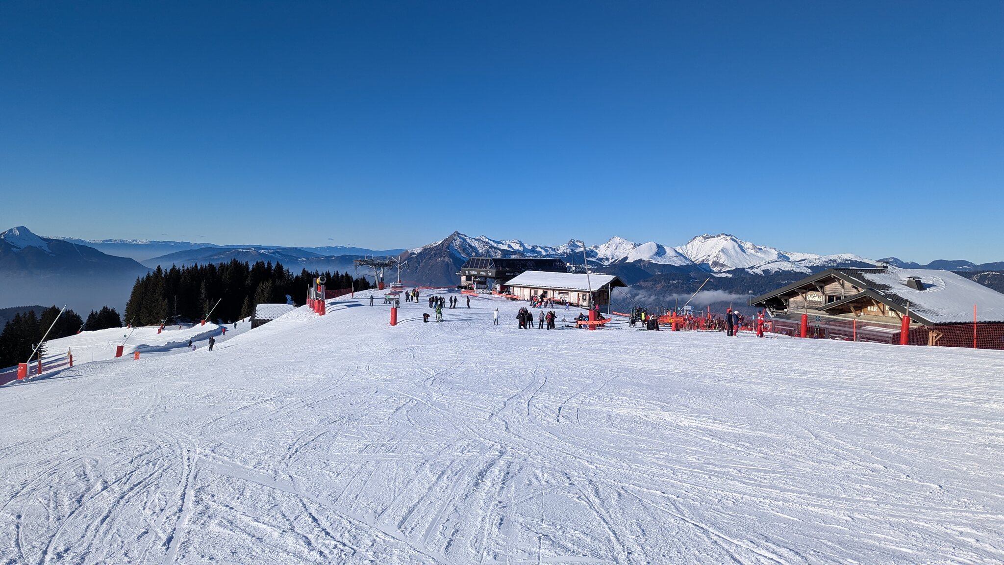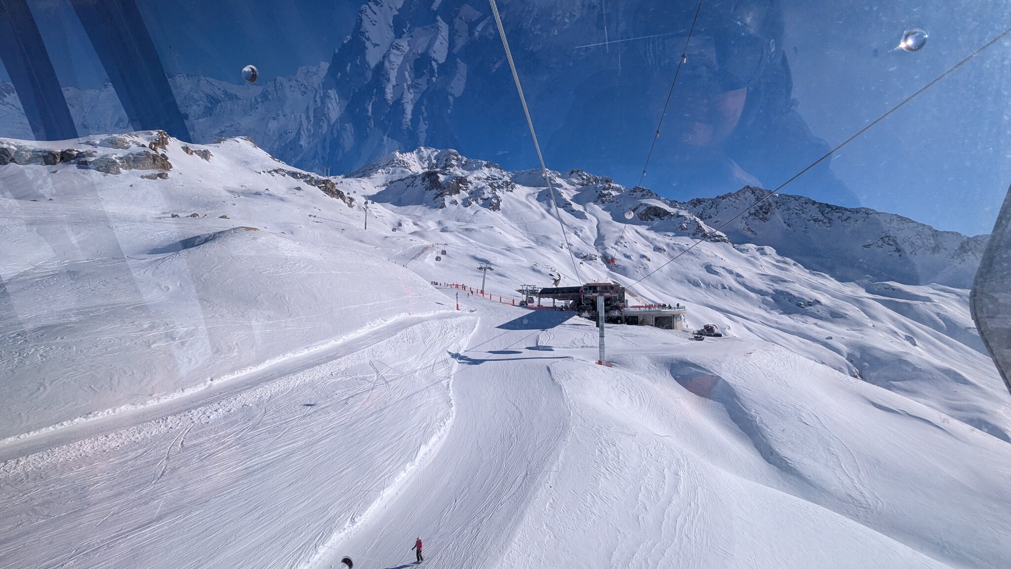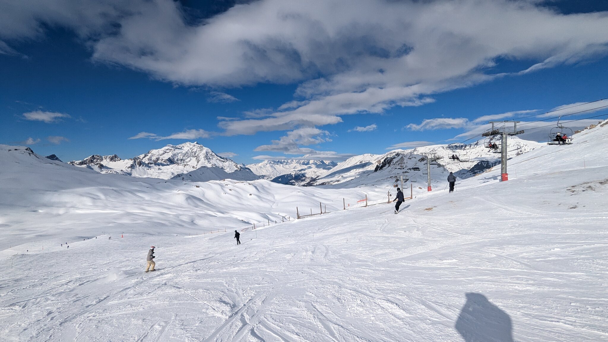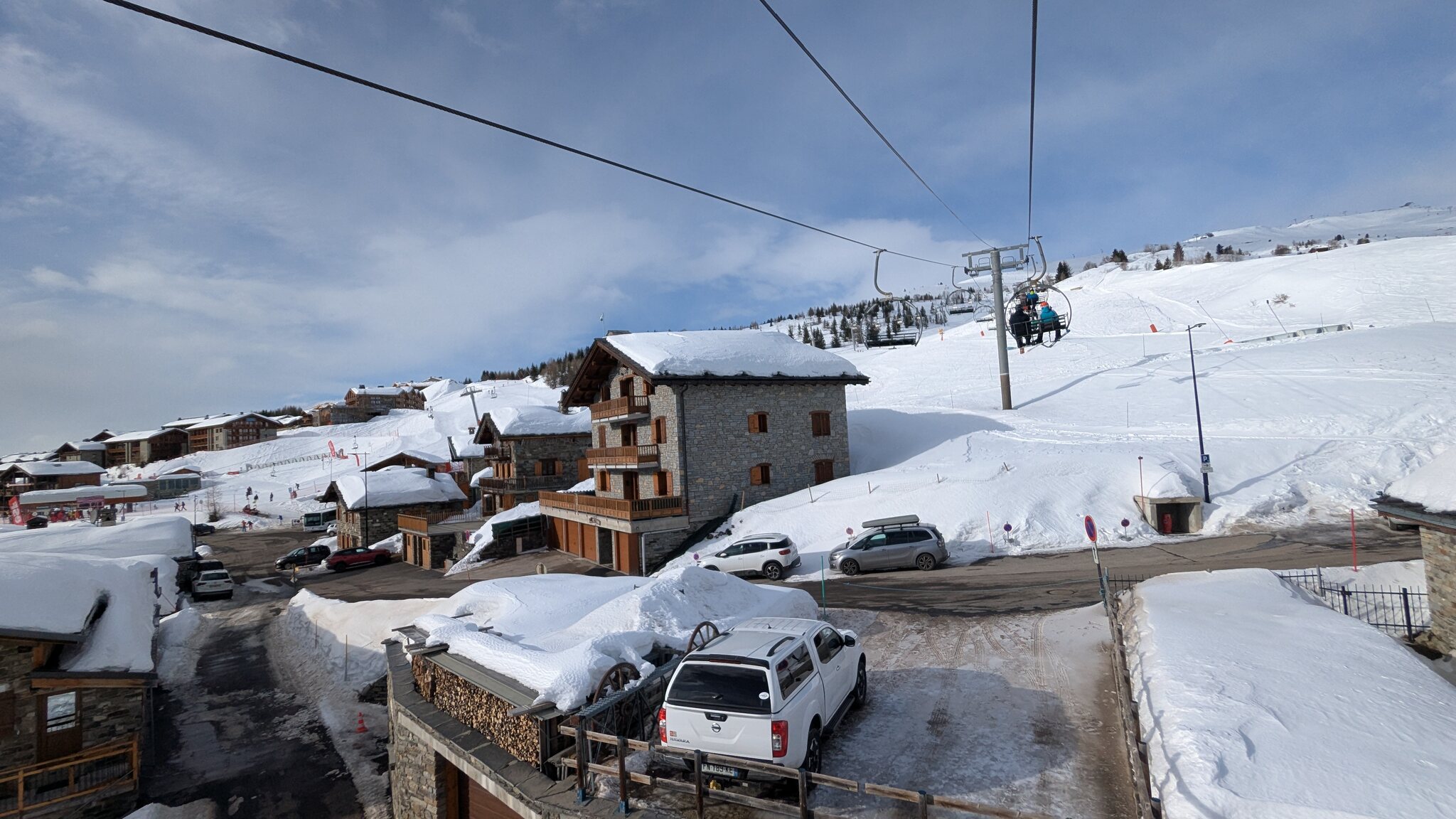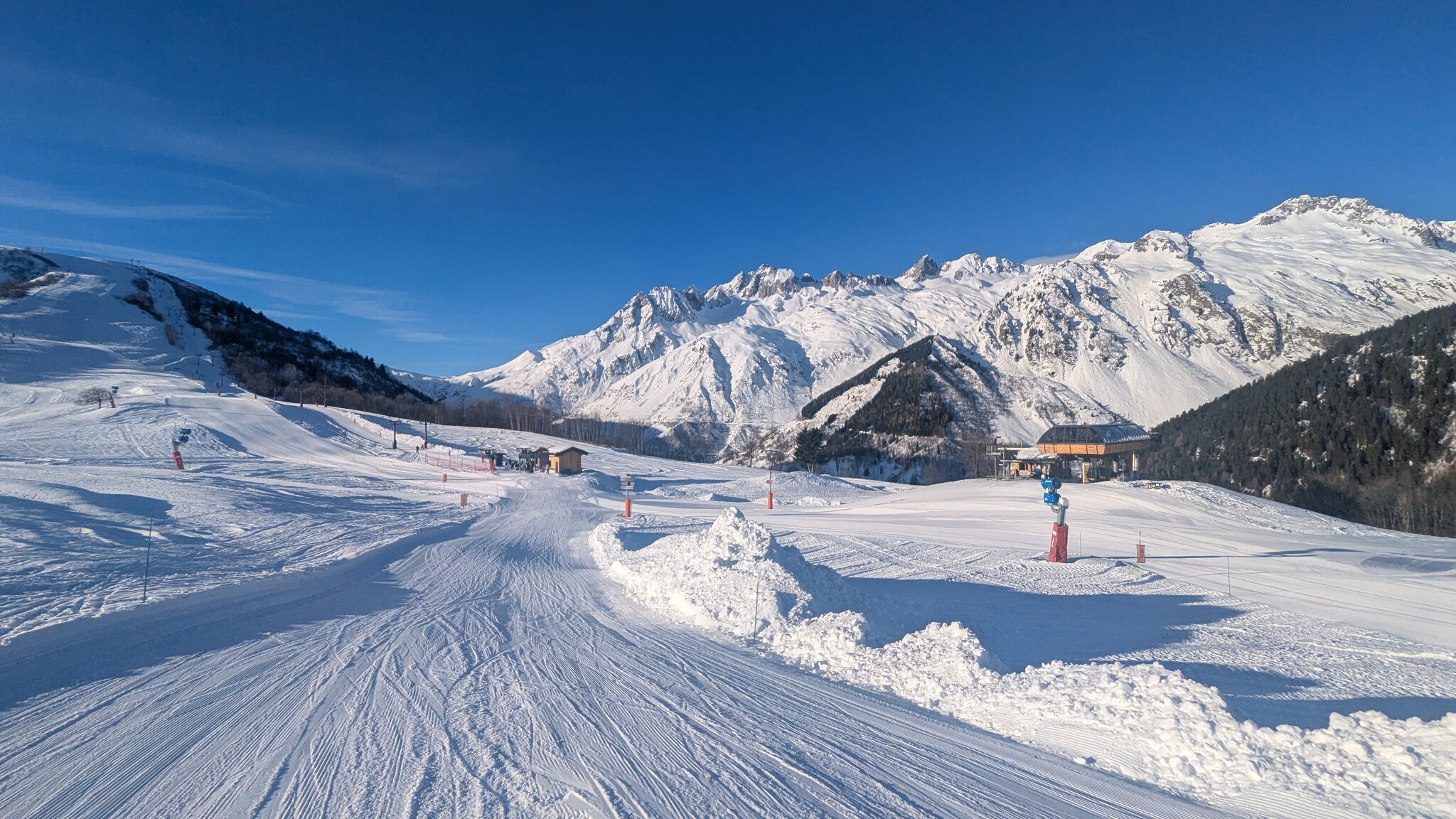 Schnee ist auf den Pisten genug, aber manche Pisten sind auch noch zu. Es gibt ein paar historische Anlagen, aber alles relevante ist top modern kuppelbar. Hauben sind in Frankreich sowieso überall als überflüssig erkannt. Und gefühlt. Alle kuppelbaren Lifte laufen mit ordentlich Speed!